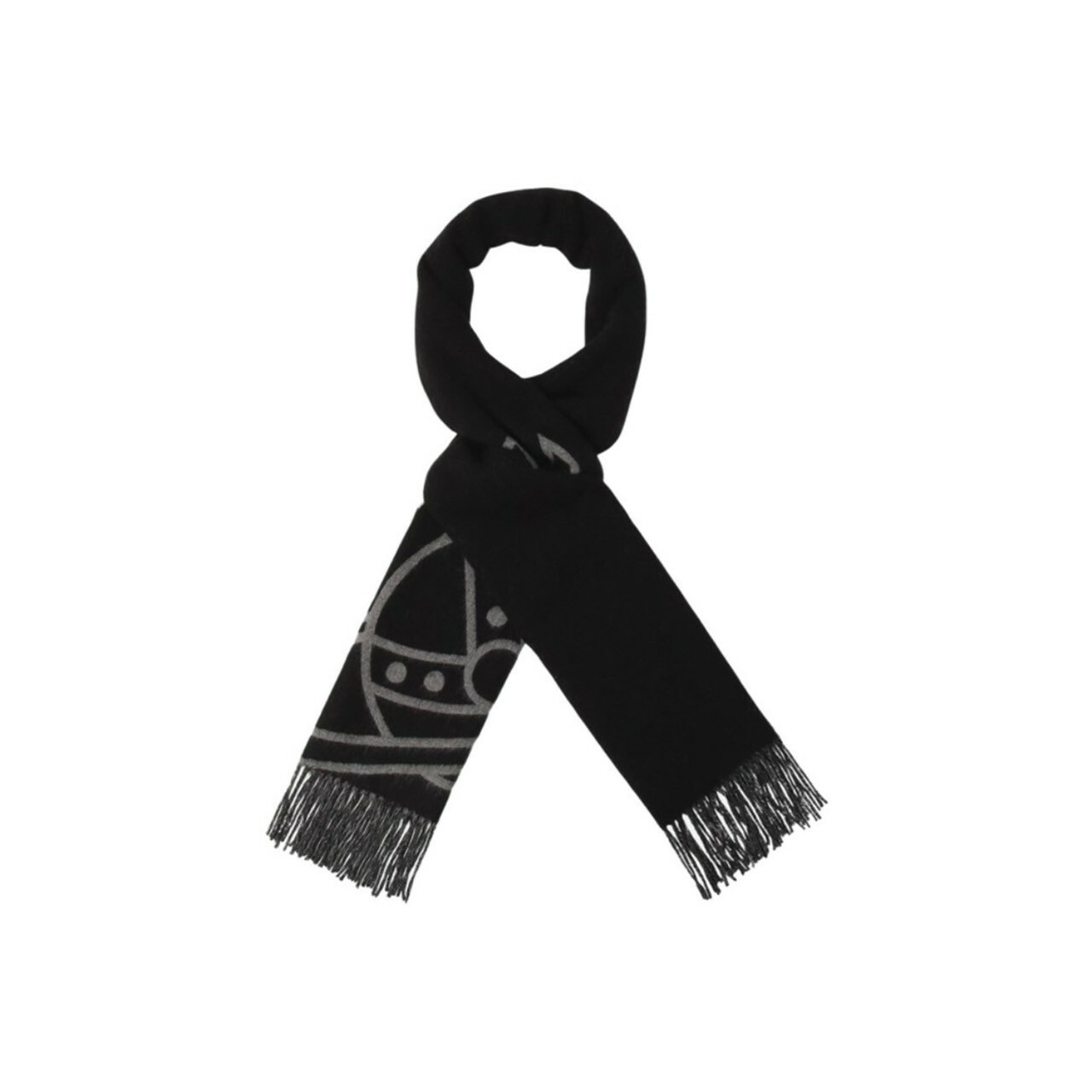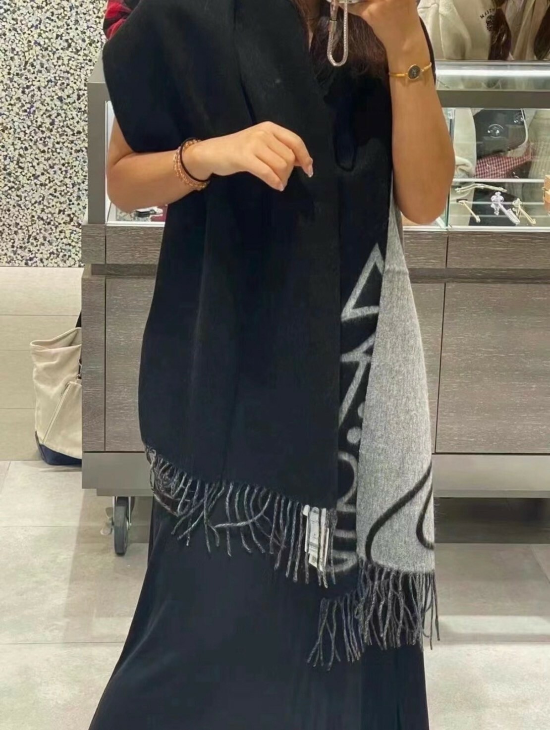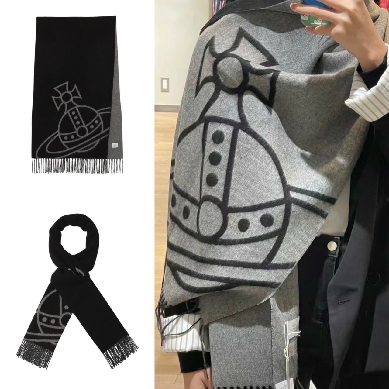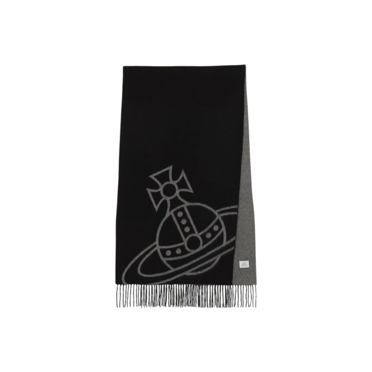 Vivienne Westwood 質感黑灰雙面 土星Logo羊毛圍巾 西太后 男女款