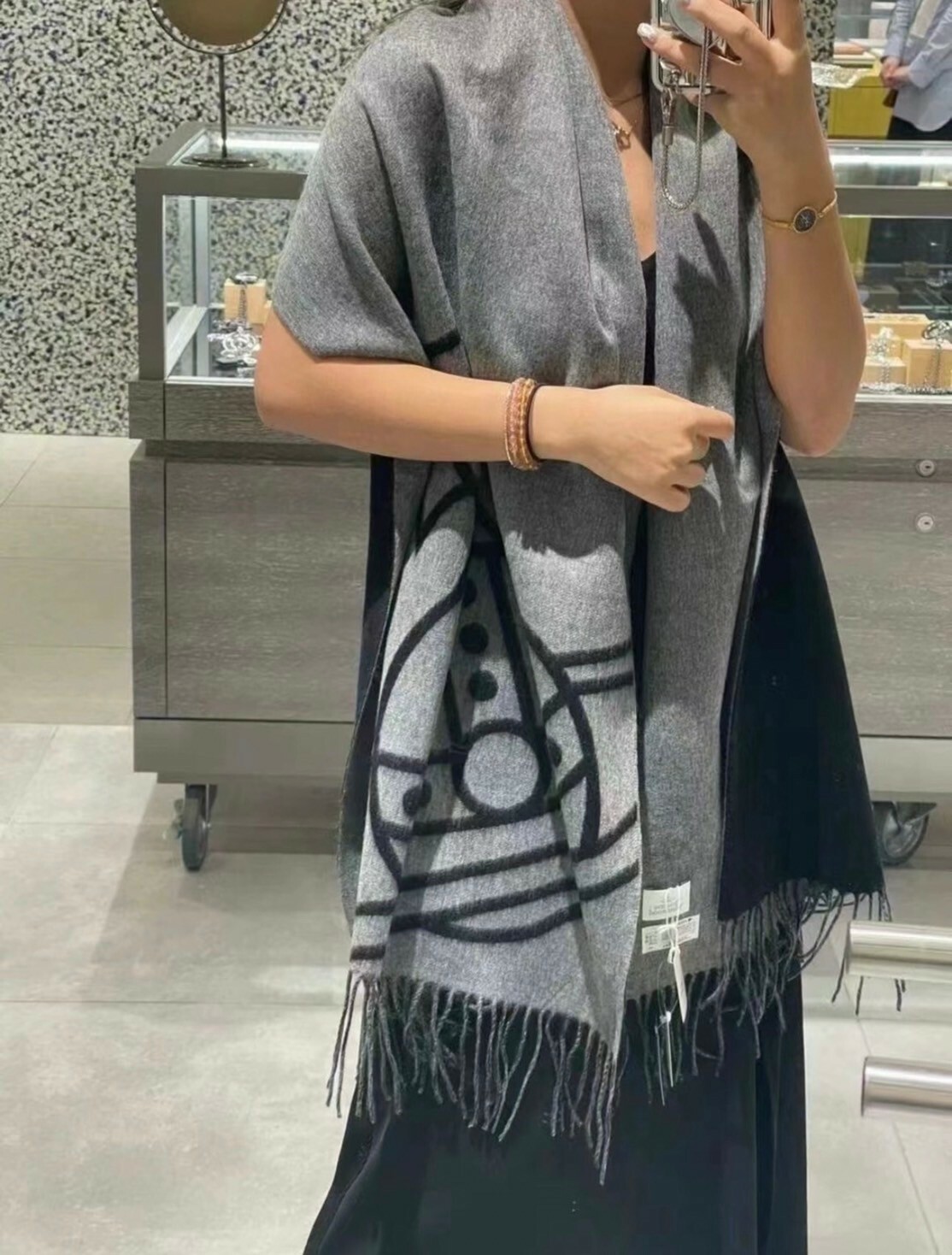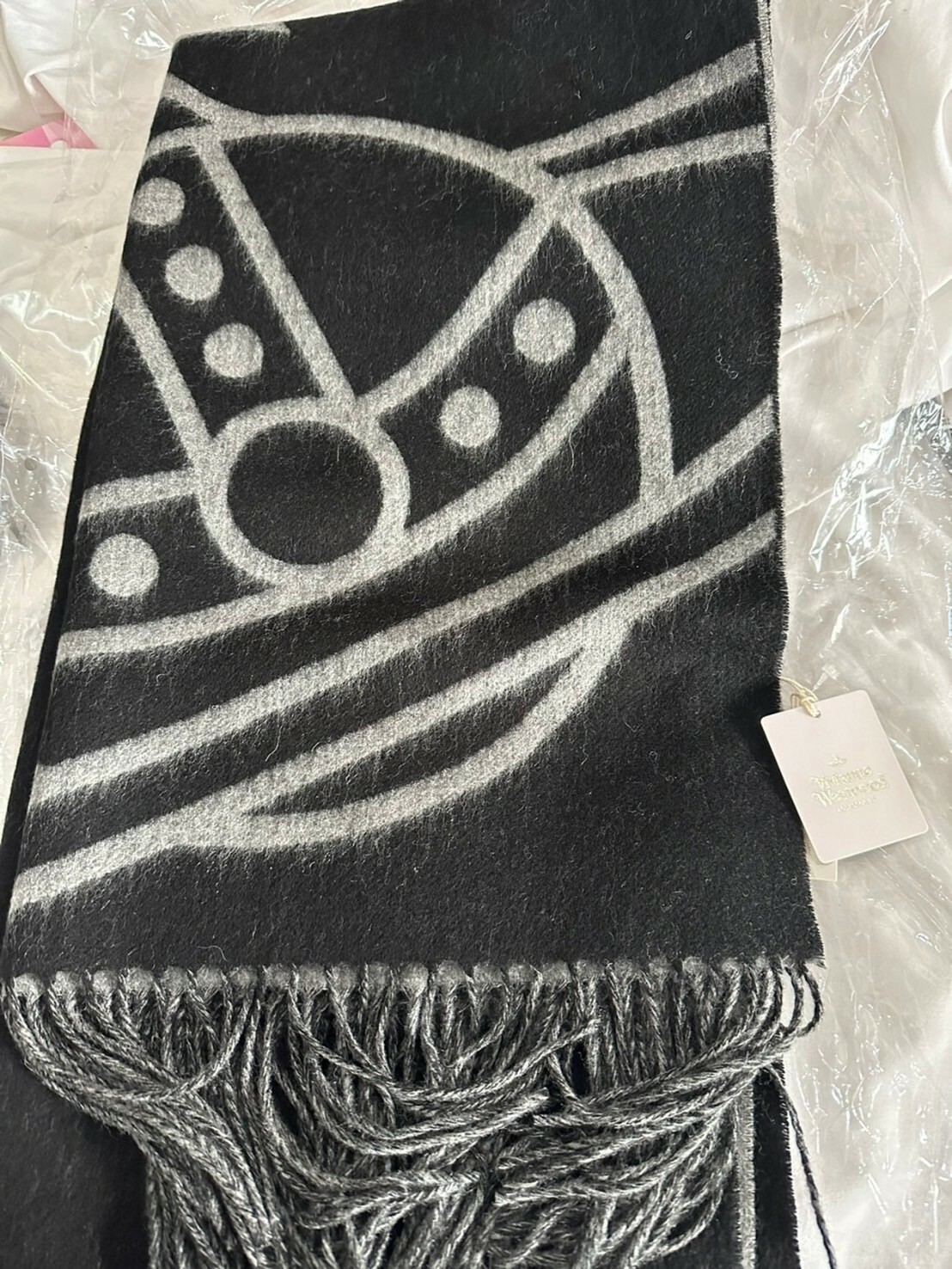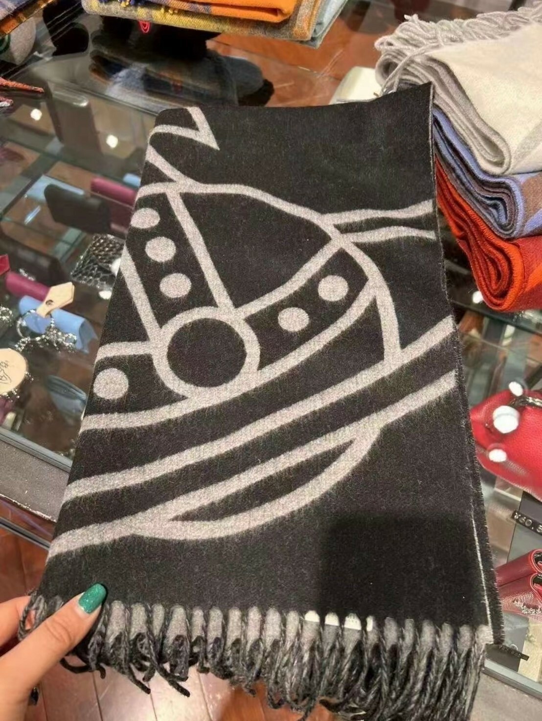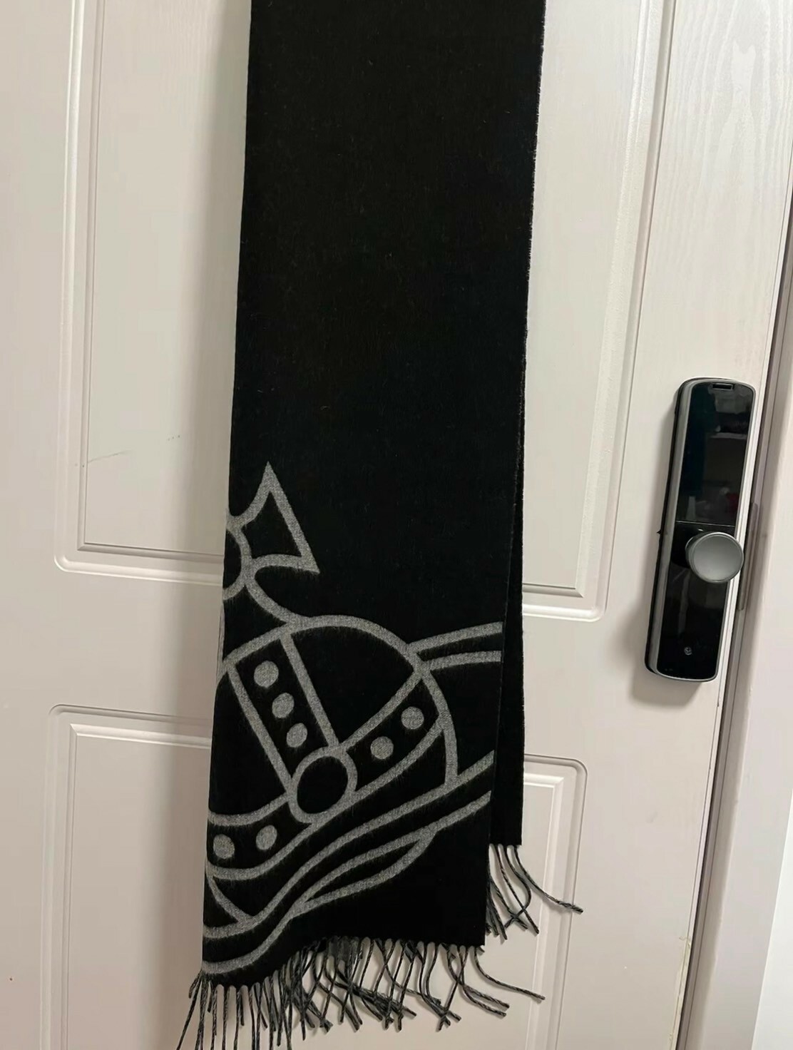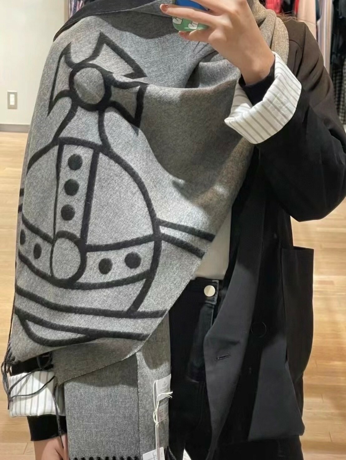 Vivienne Westwood 質感黑灰雙面 土星Logo羊毛圍巾 西太后 男女款
