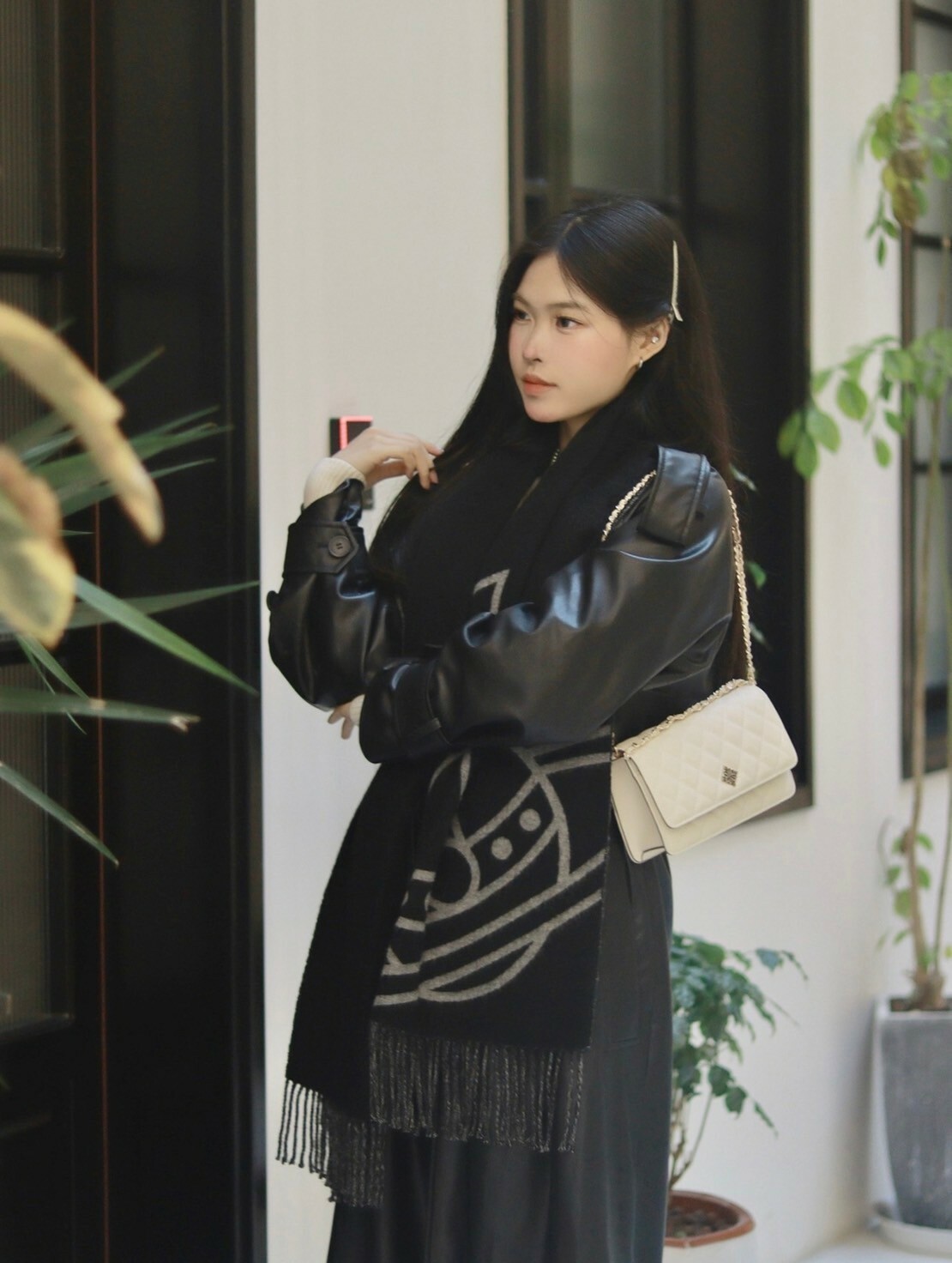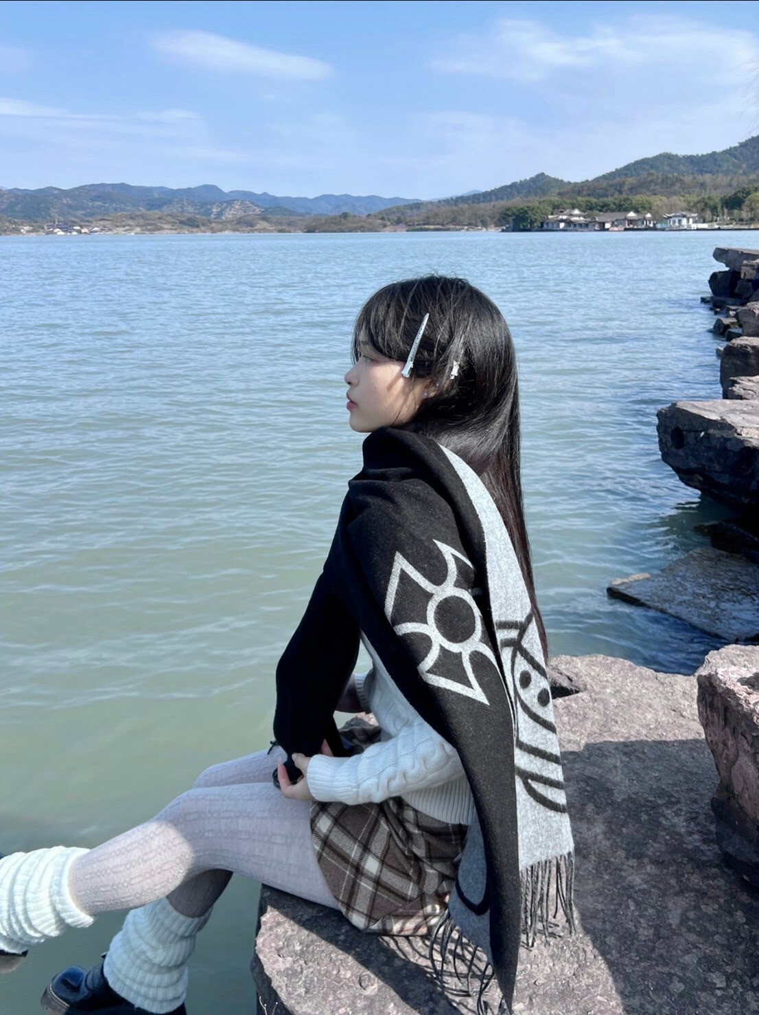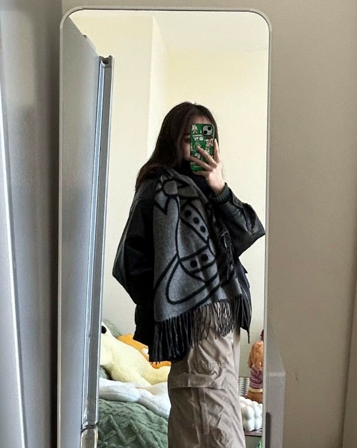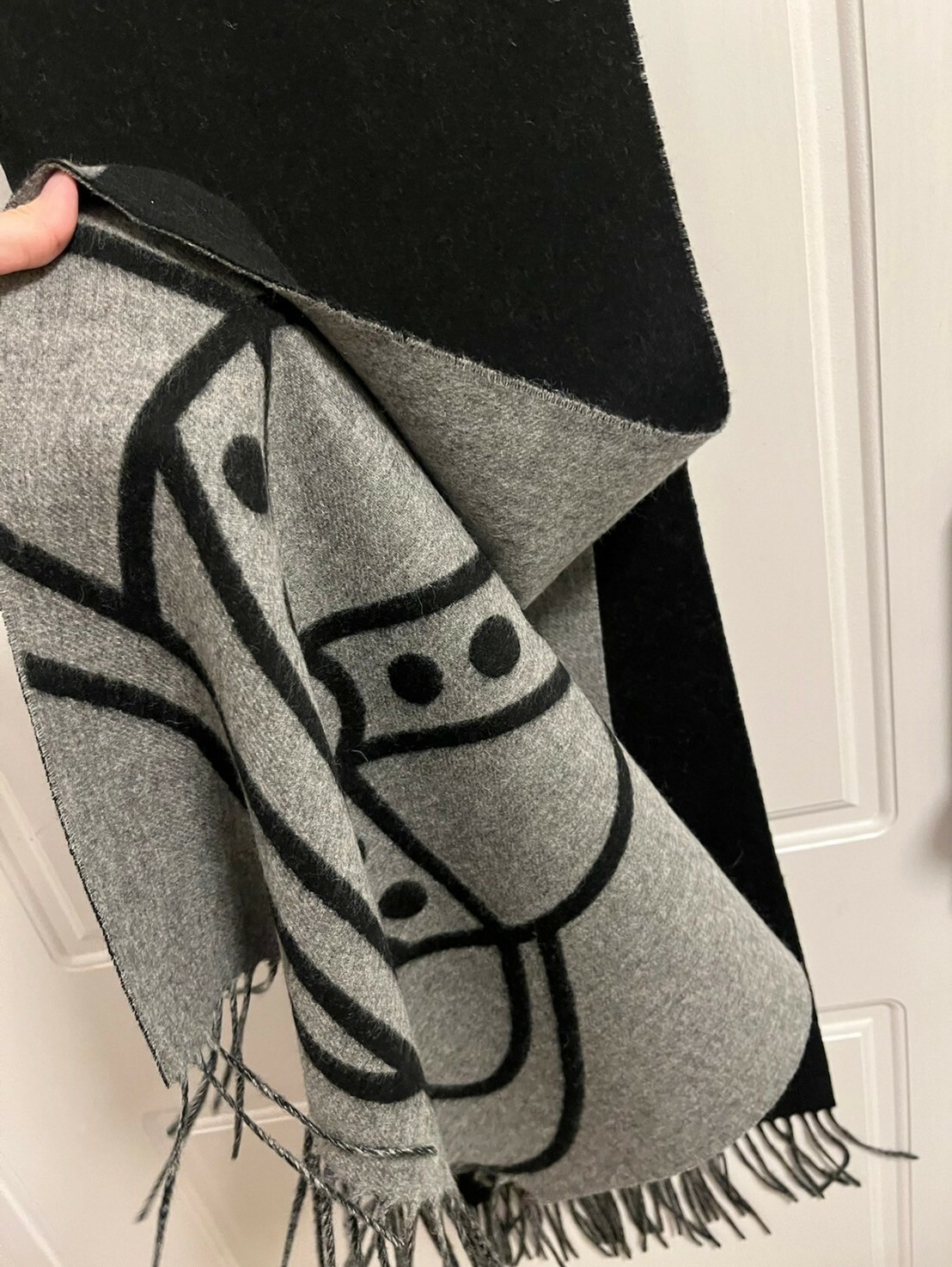 Vivienne Westwood 質感黑灰雙面 土星Logo羊毛圍巾 西太后 男女款