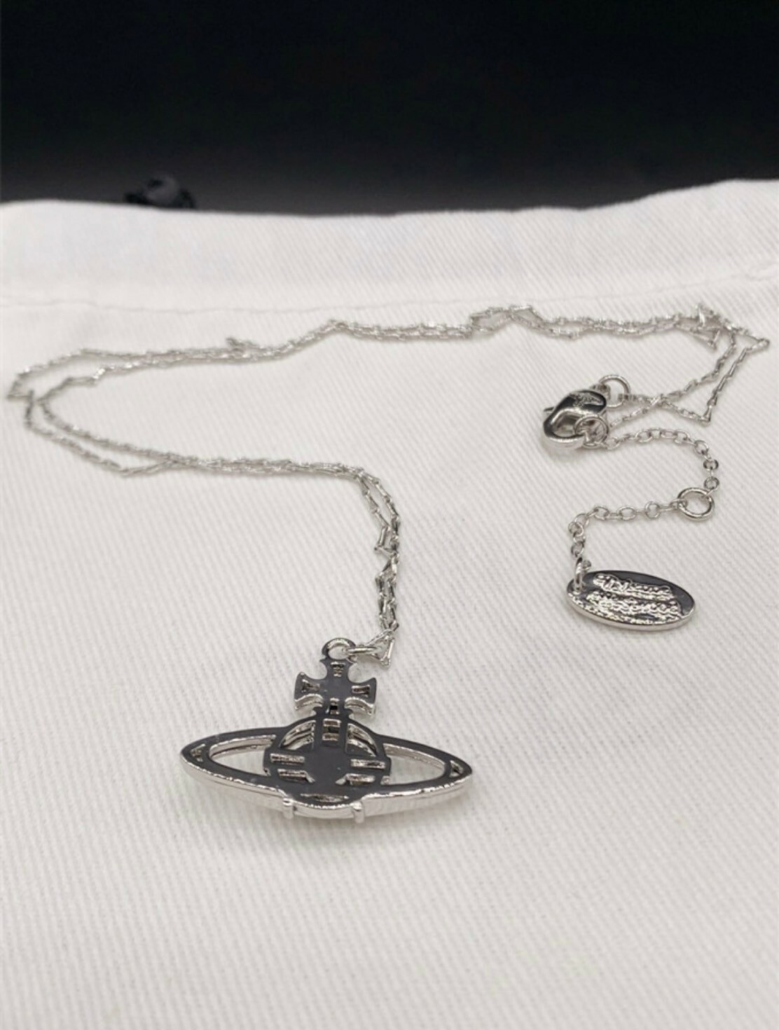 Vivienne Westwood Queen Mother West 3D Saturn Logo Necklace