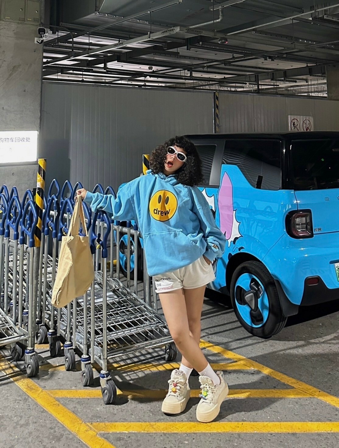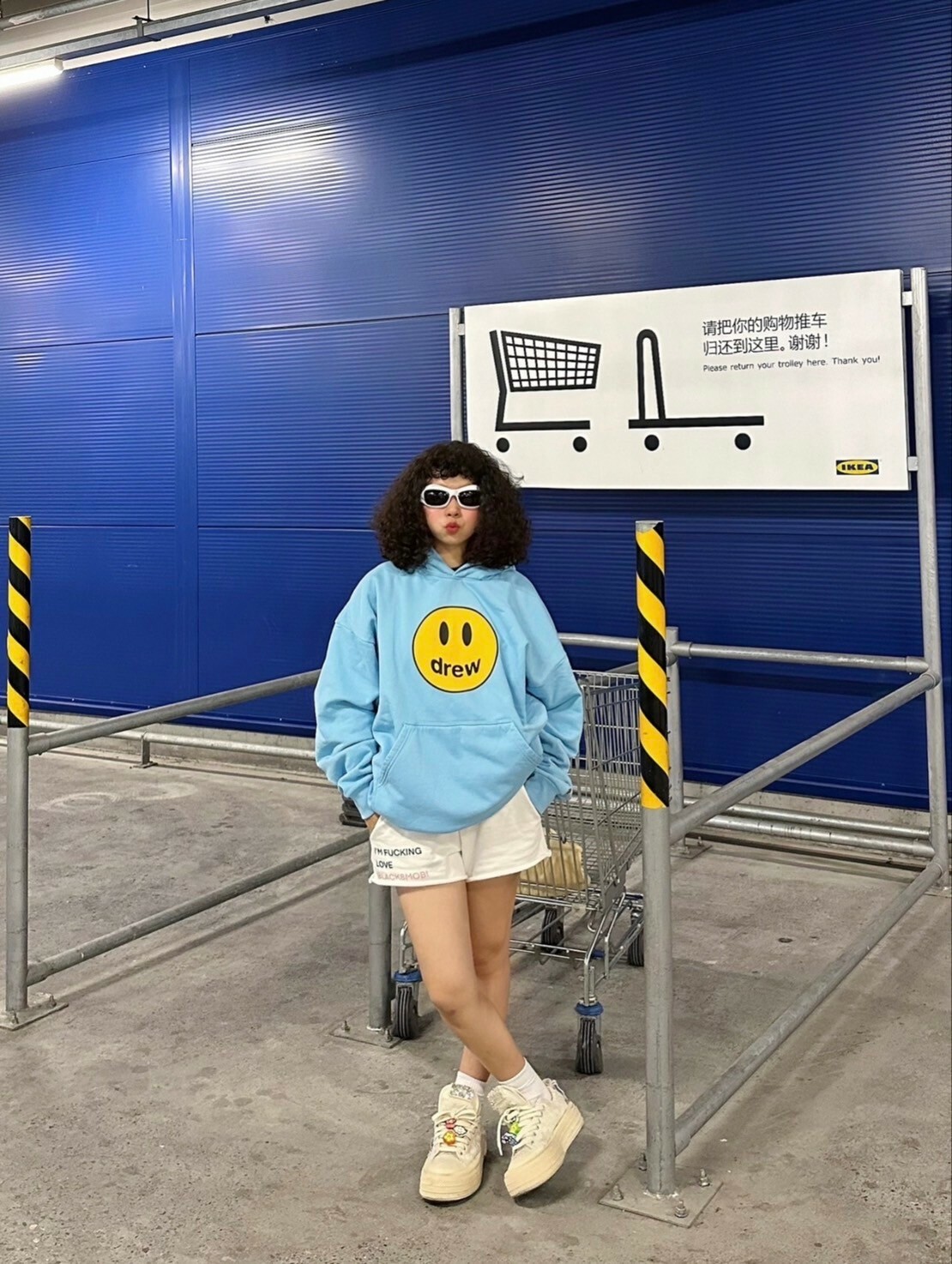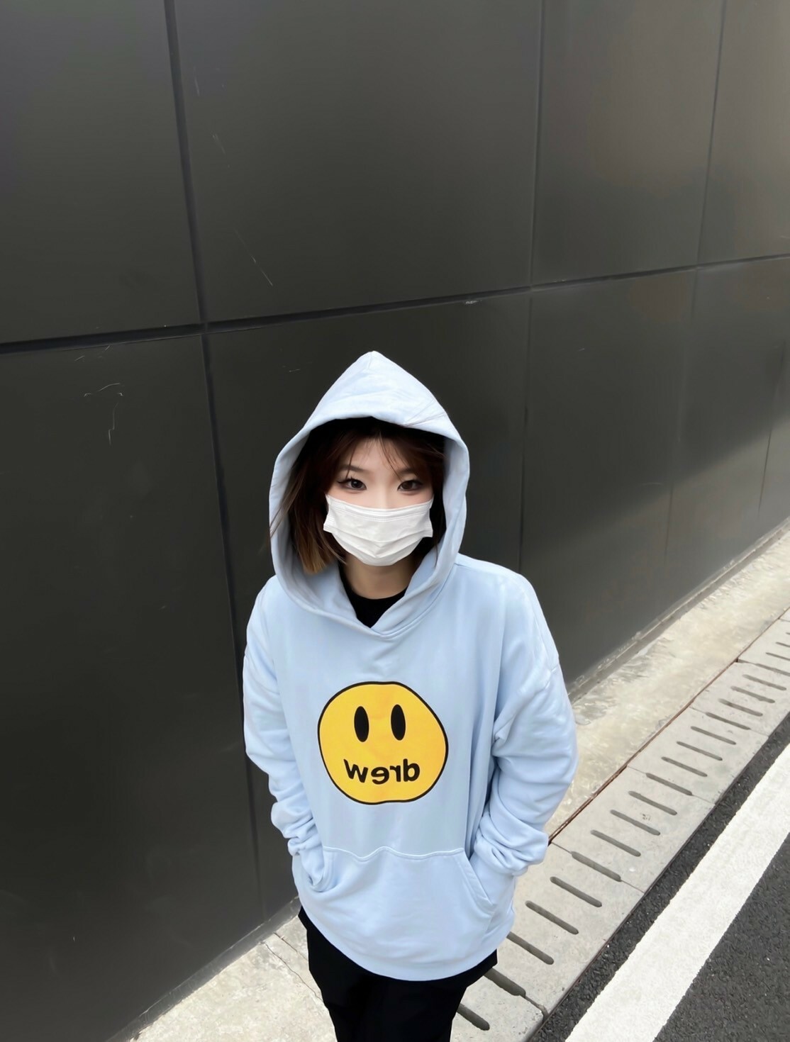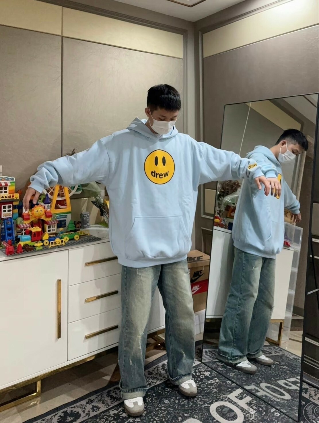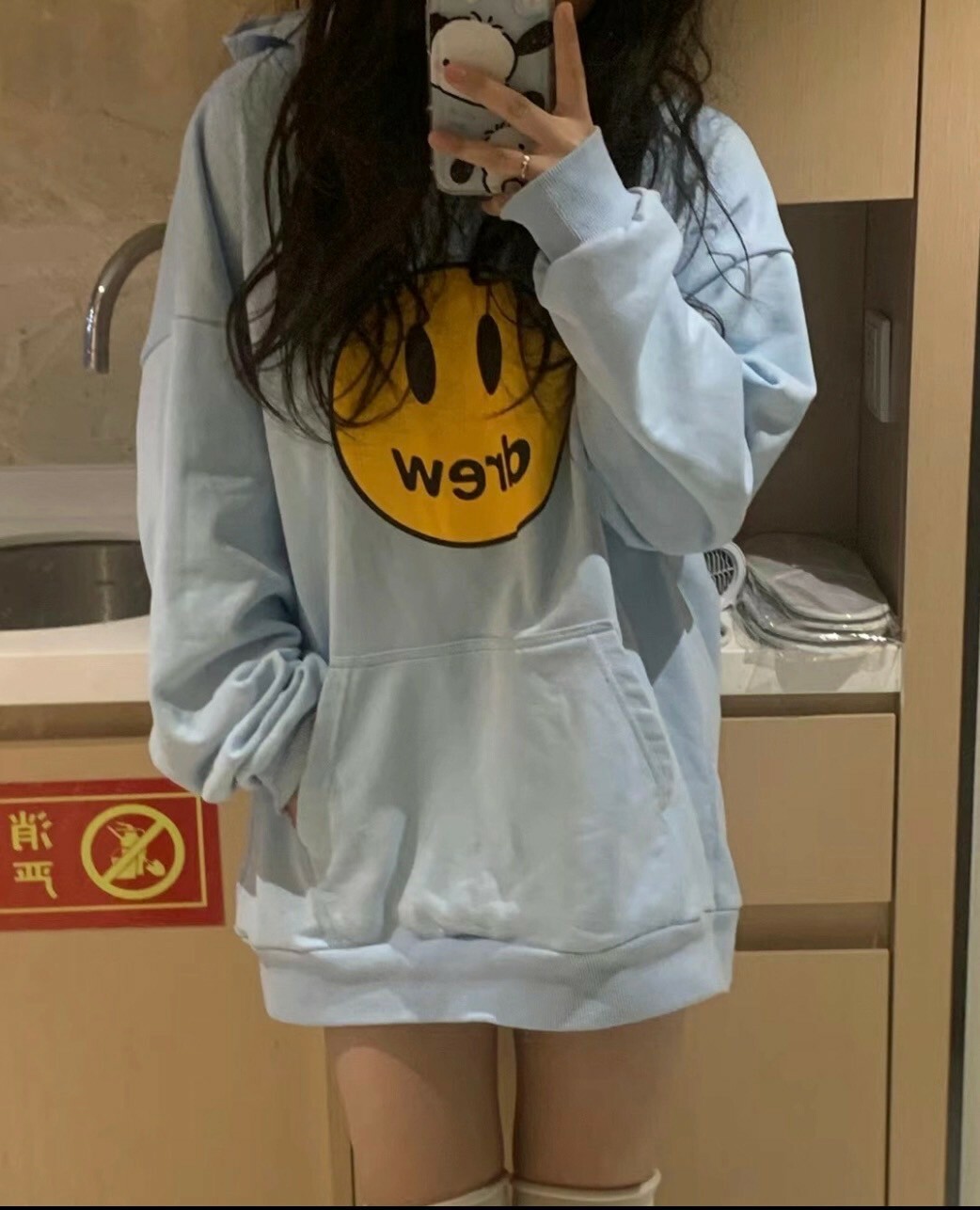 Drew House 笑臉Logo 寶寶藍 帽T