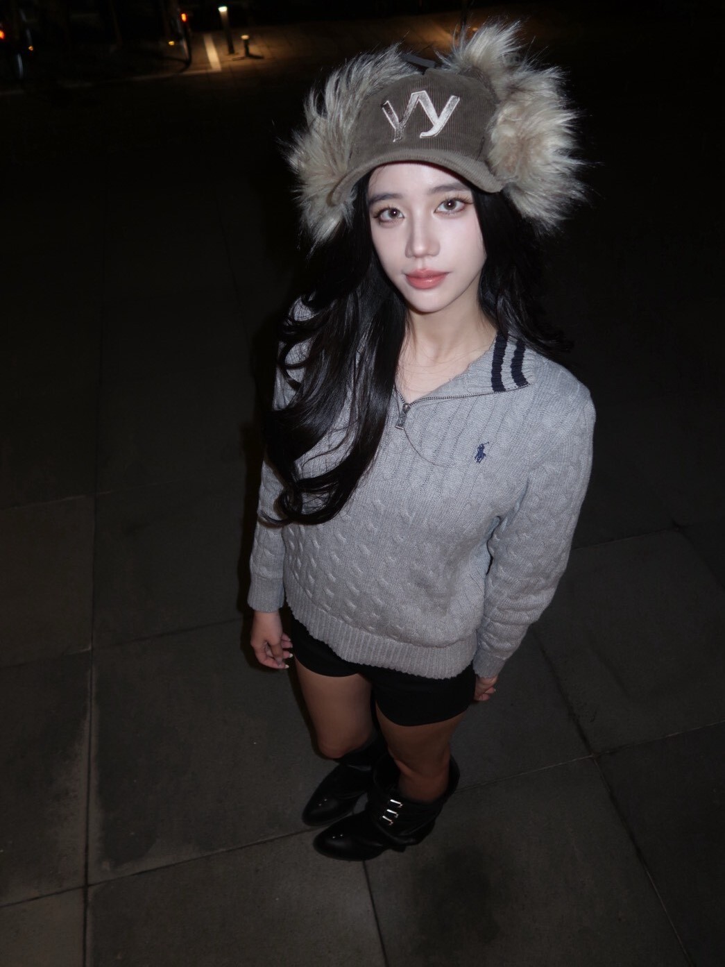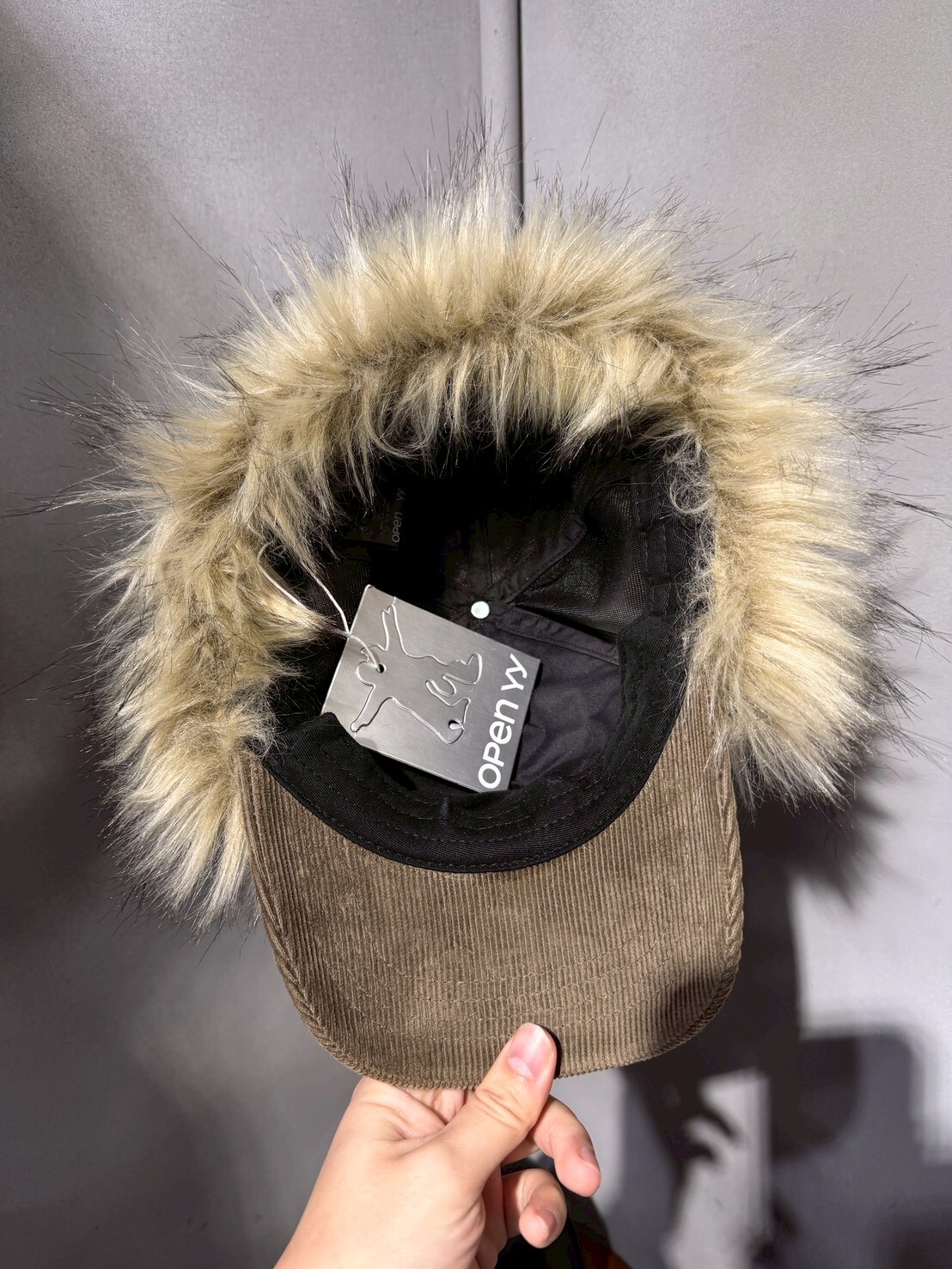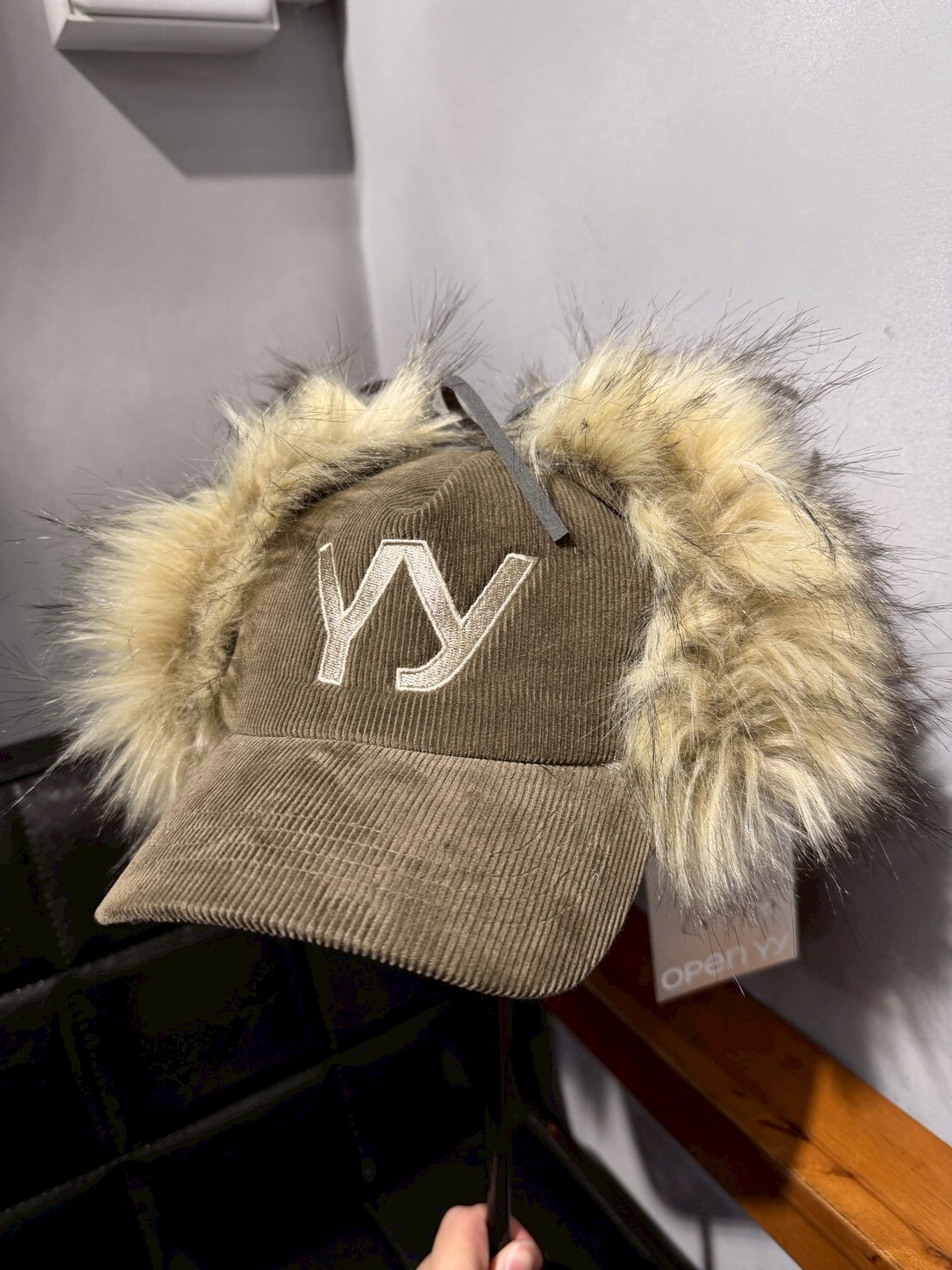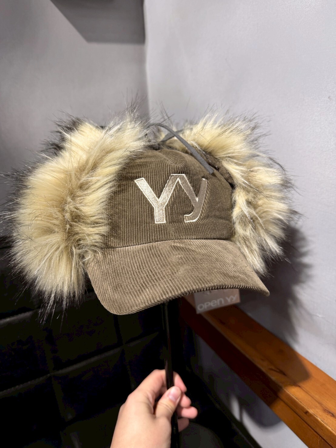 韓國品牌 OPEN YY 缺貨款 毛毛遮耳帽 刺繡Logo