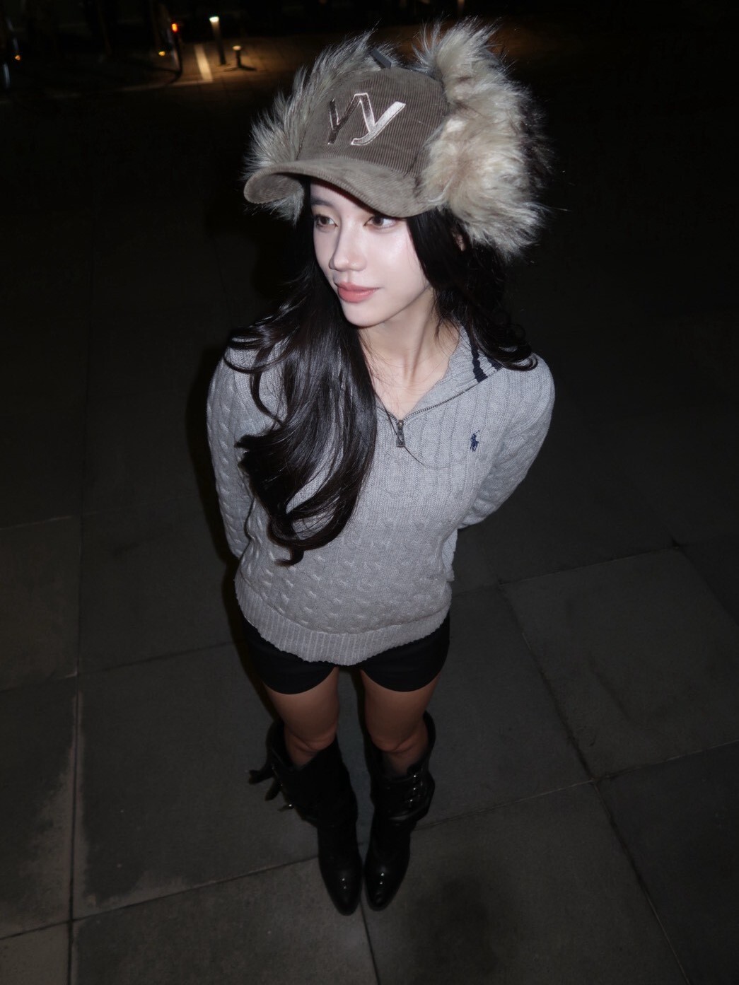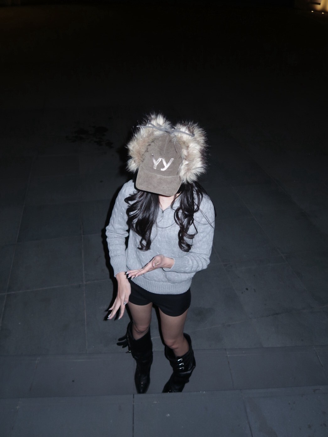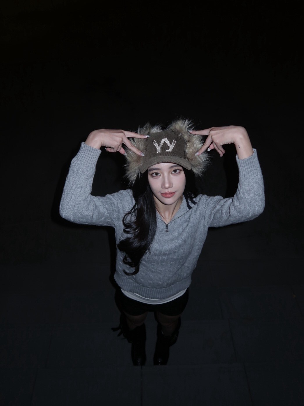 韓國品牌 OPEN YY 缺貨款 毛毛遮耳帽 刺繡Logo