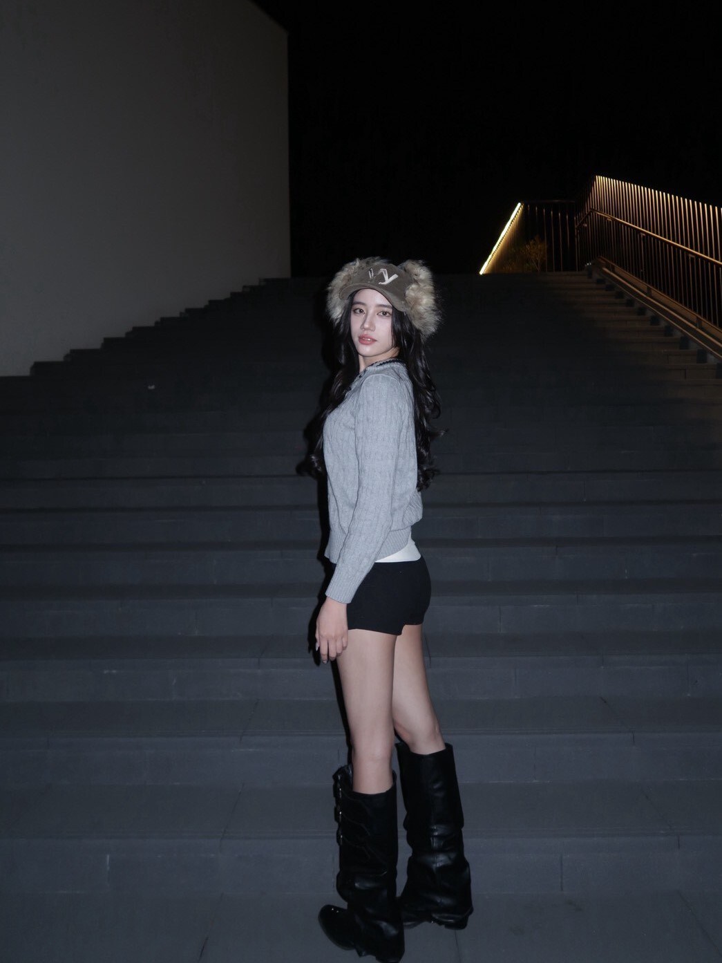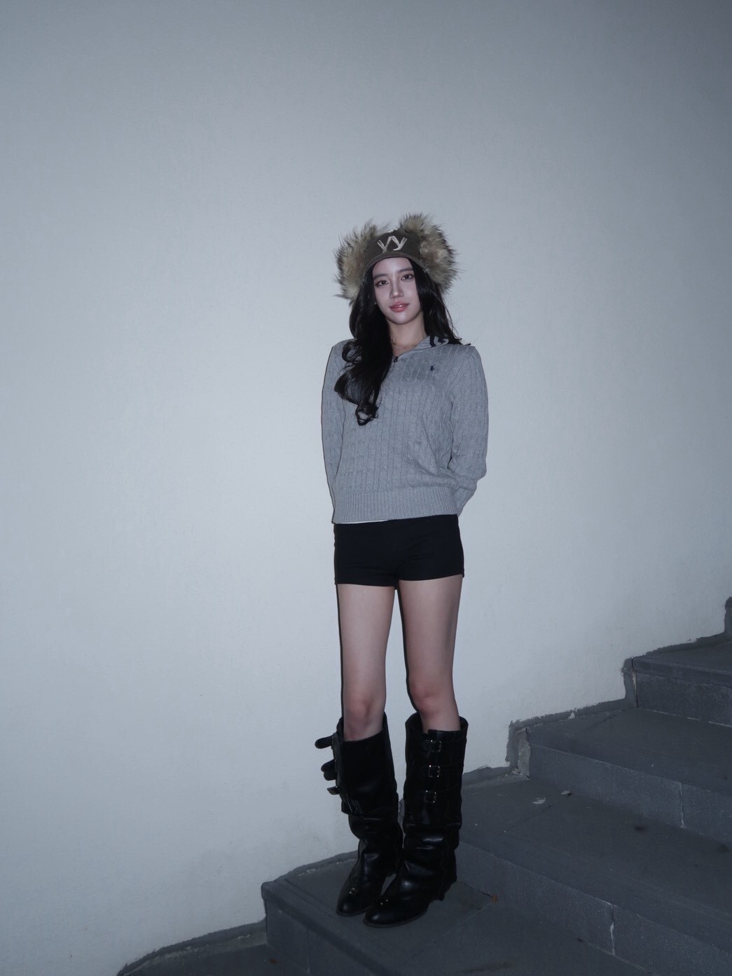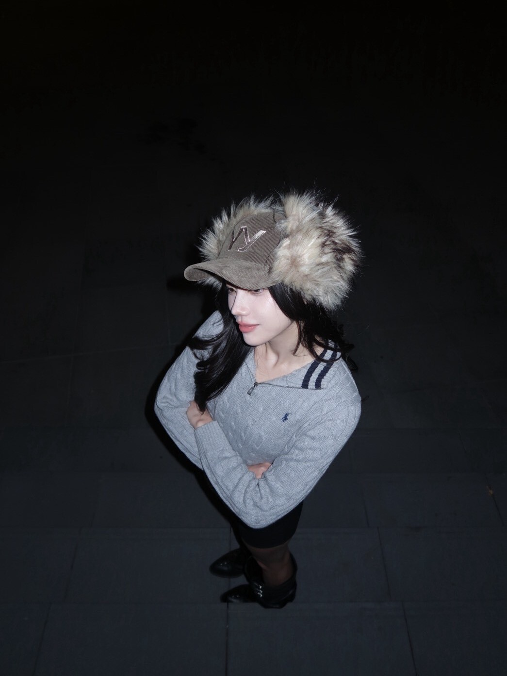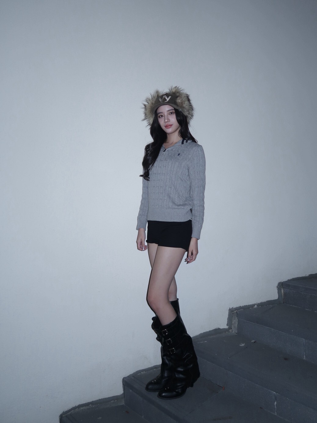 韓國品牌 OPEN YY 缺貨款 毛毛遮耳帽 刺繡Logo