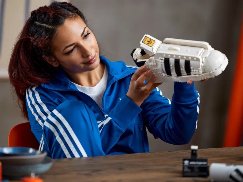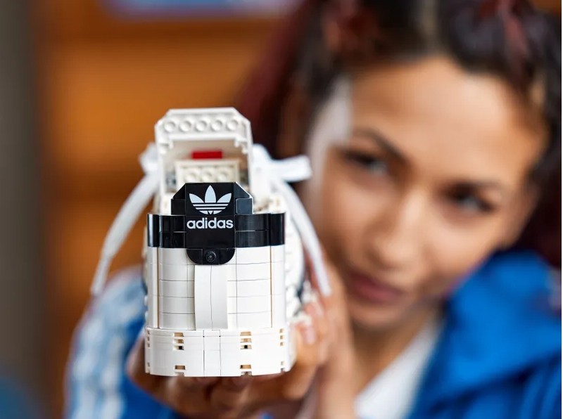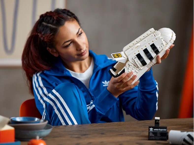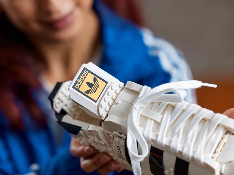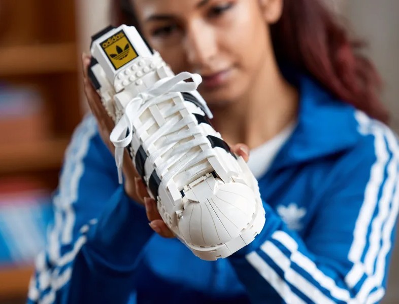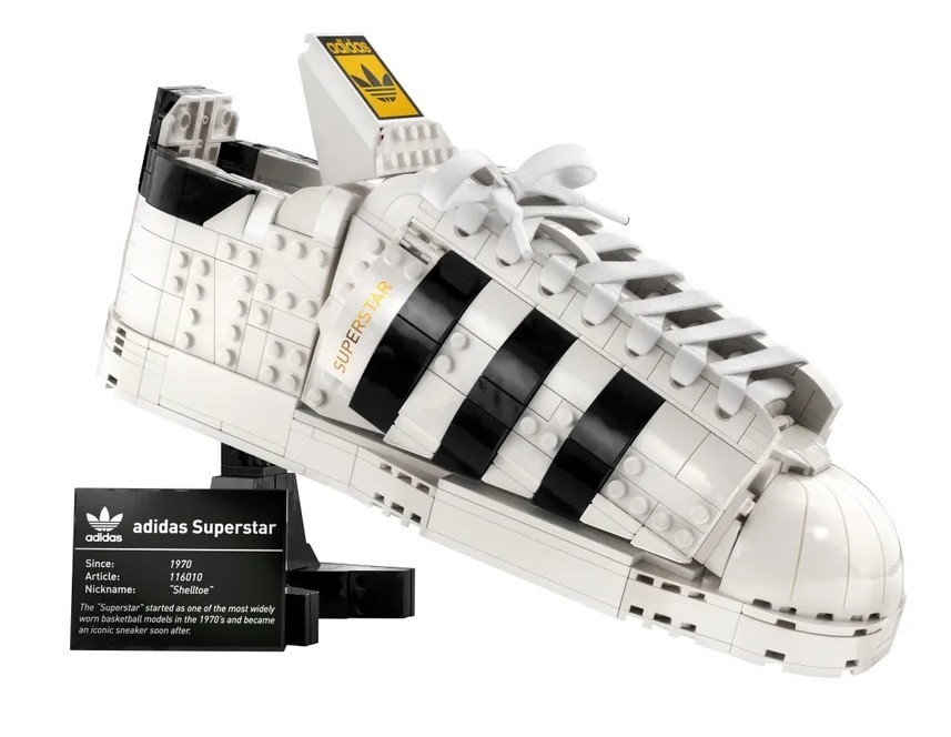 正宗的 Superstar 細節這款樂高版本包括標誌性的 adidas Originals Superstar 運動鞋圖形