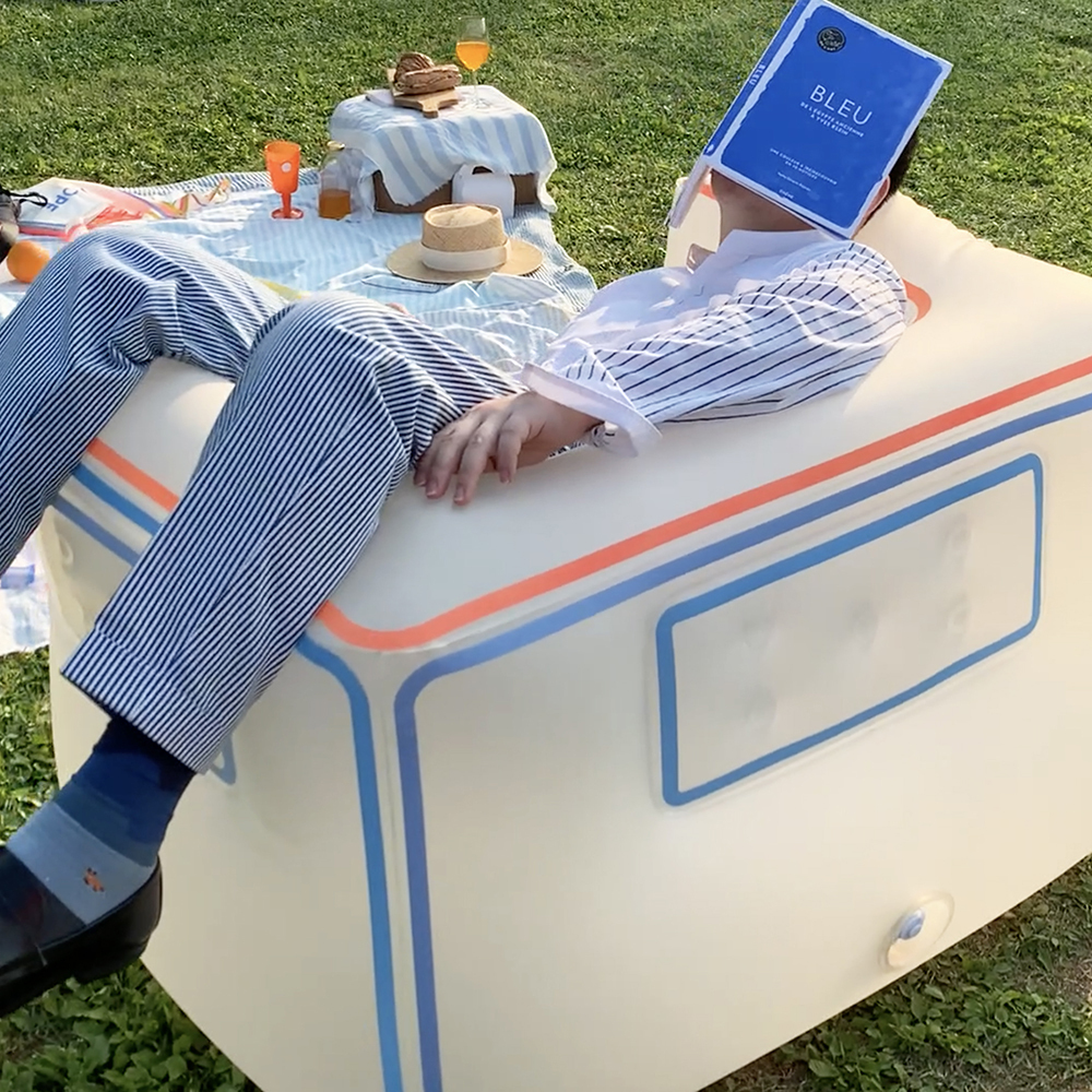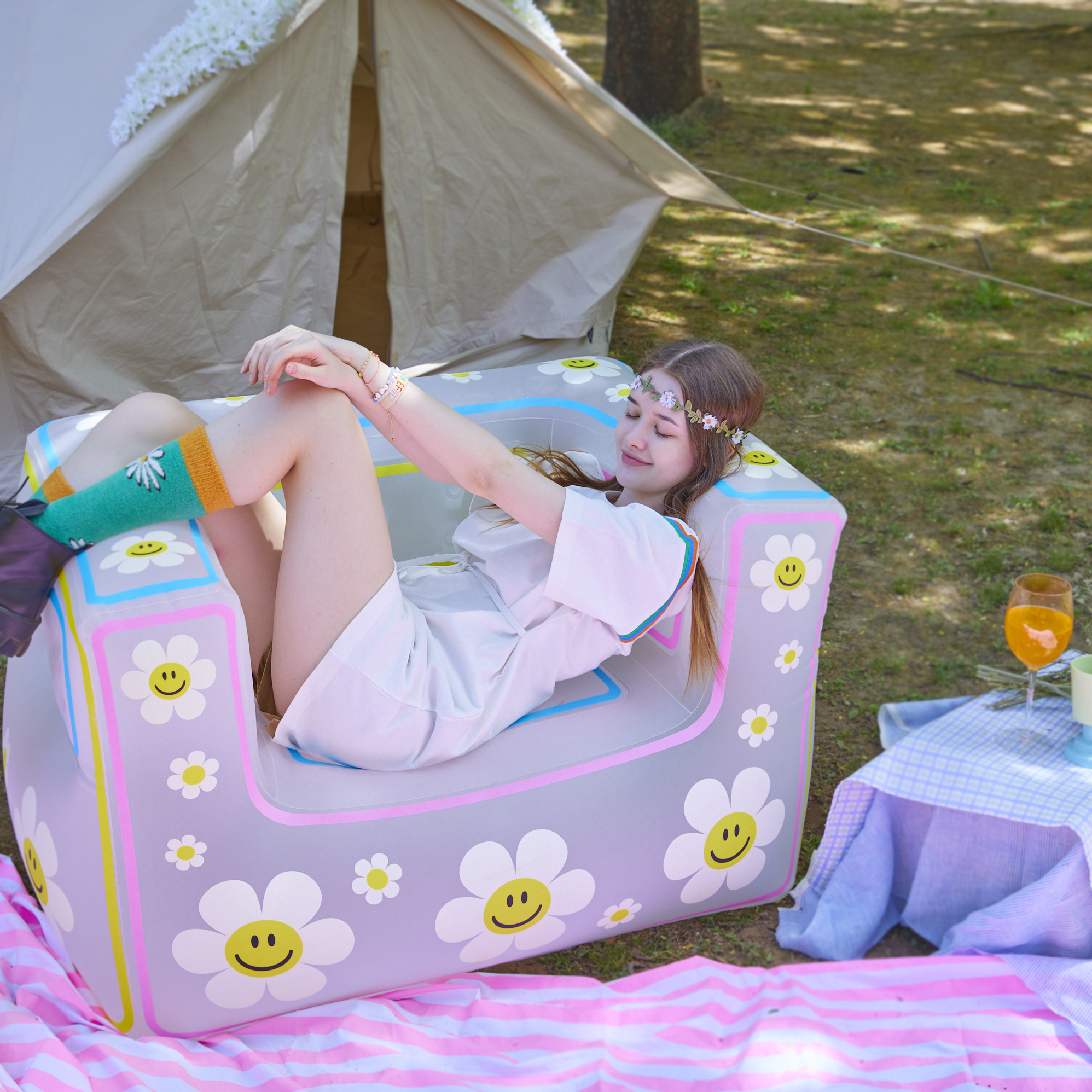 這裡值得一提的是,他們的夢幻空氣沙發椅採用比PVC更耐用的TPU材料製成,輕便、防水、易於攜帶,在戶外活動中非常方便實用。