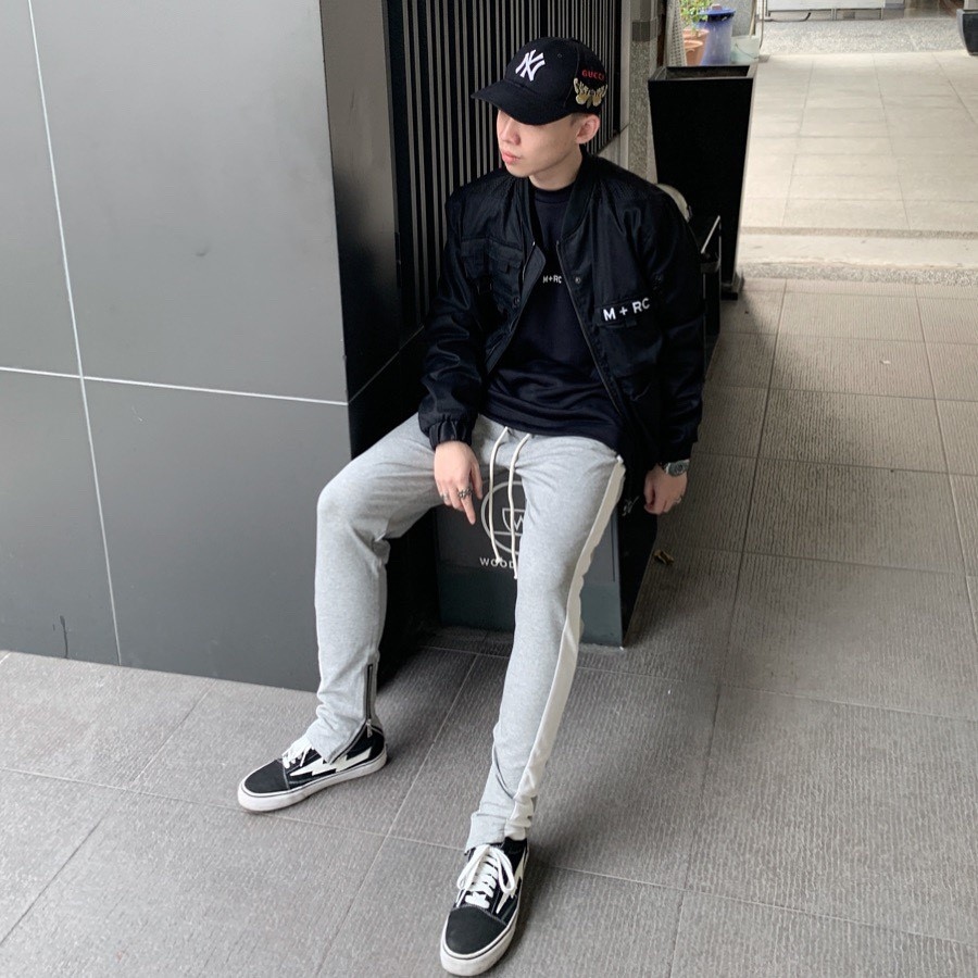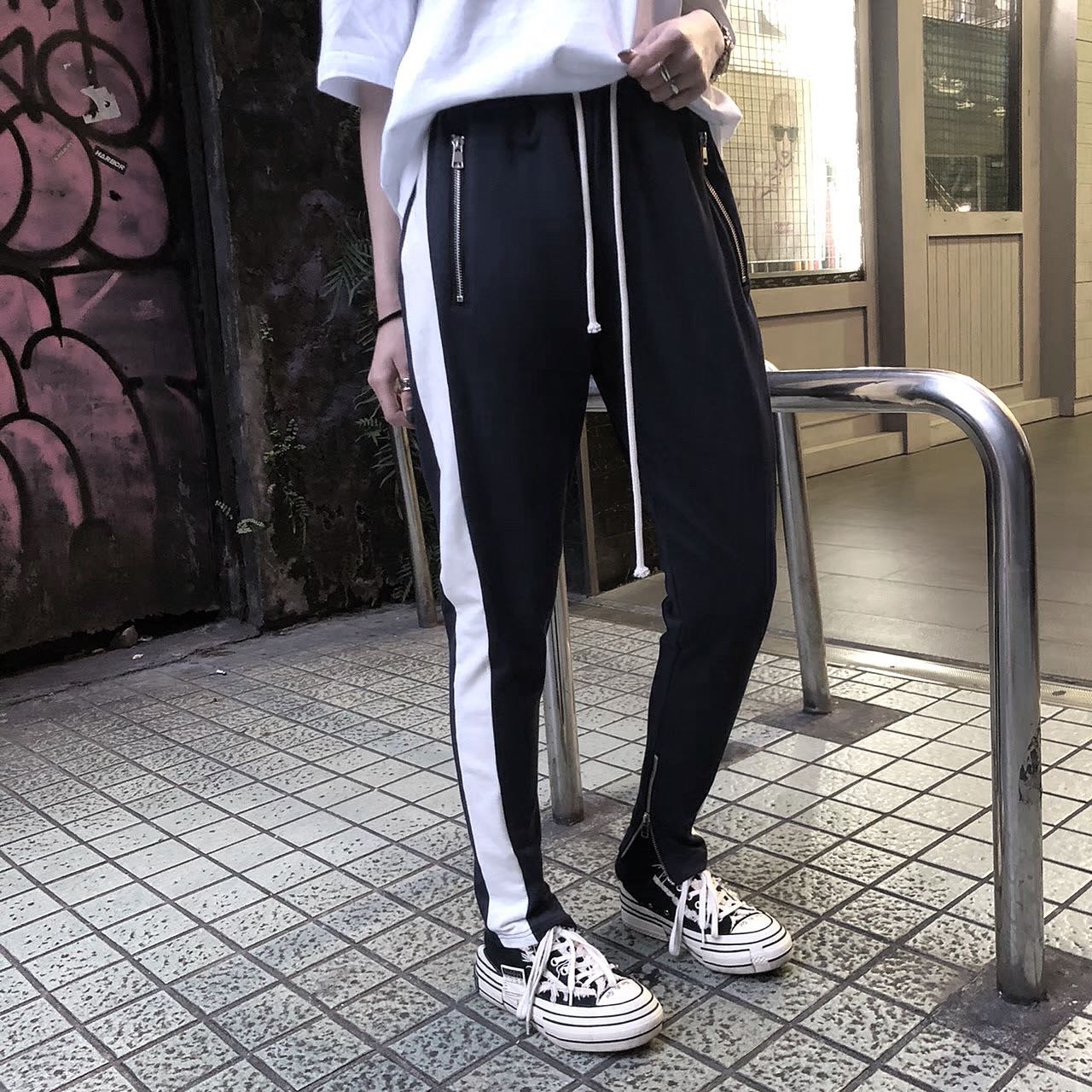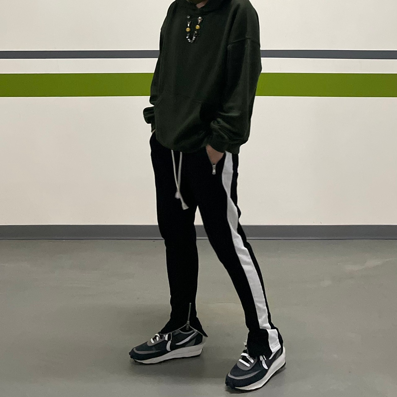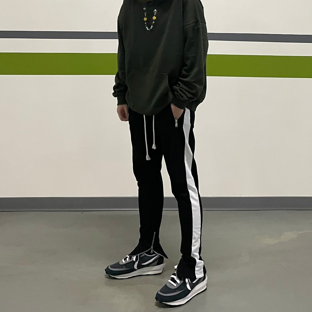 白線抽繩拉鍊 運動褲 Fog風格 褲腳拉鍊