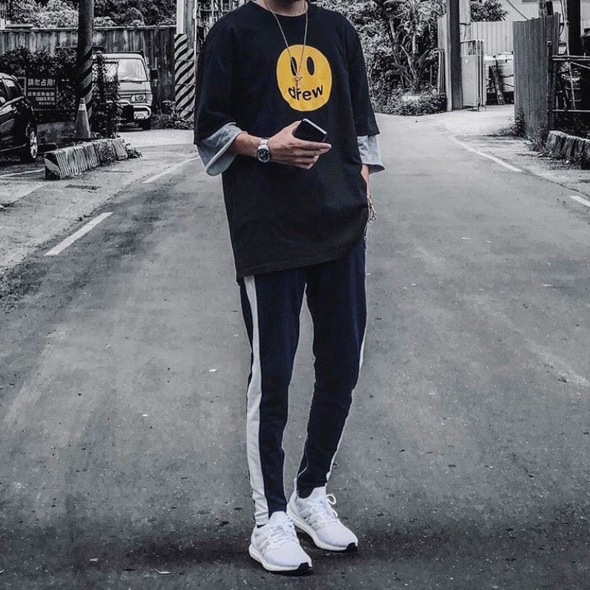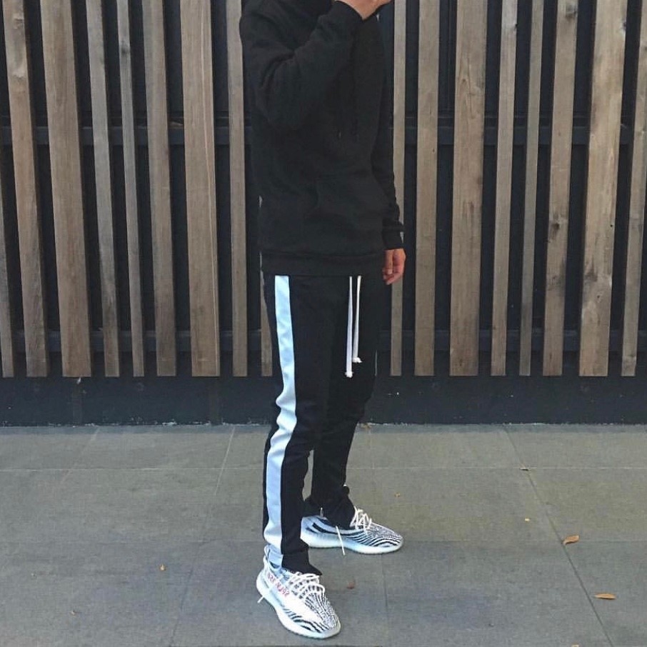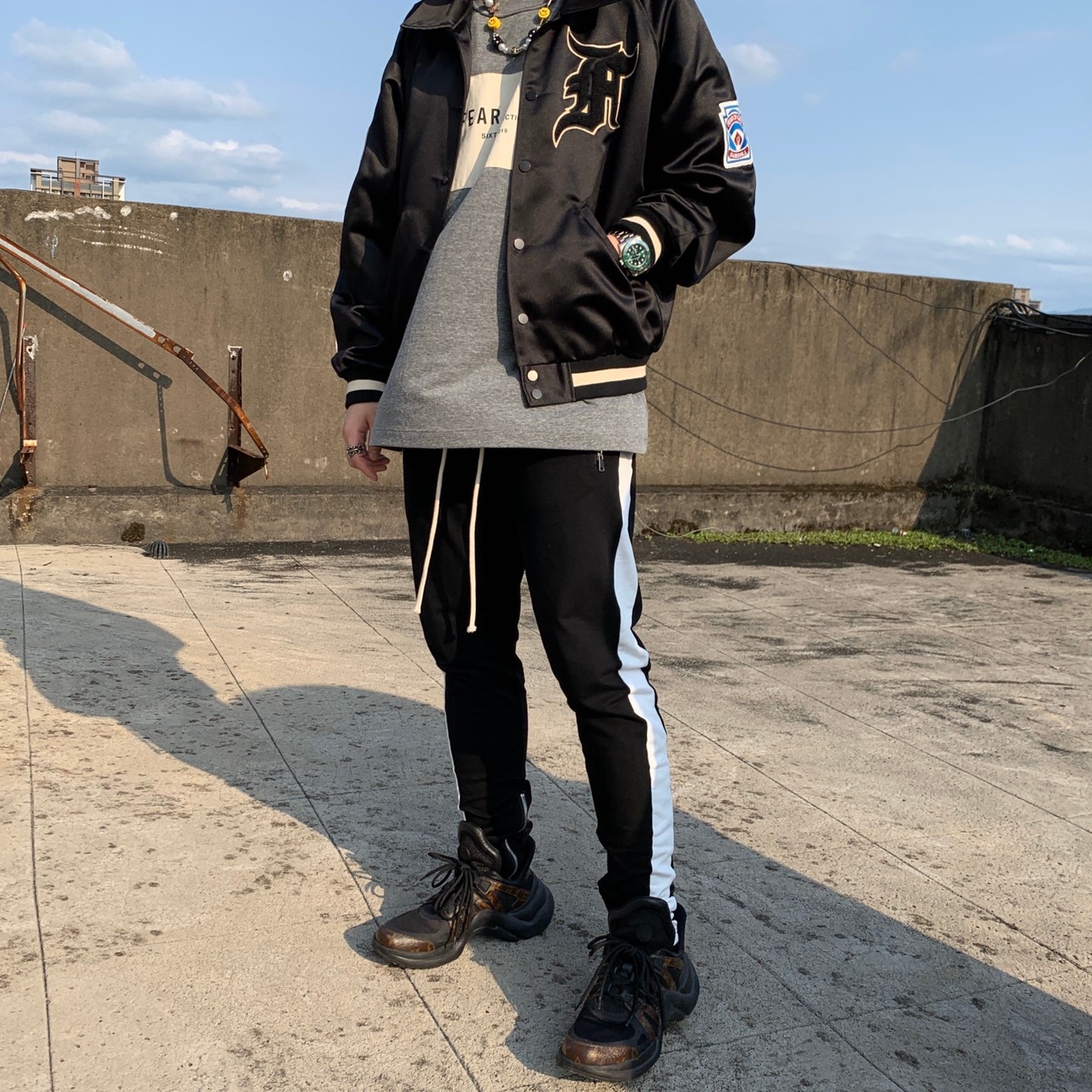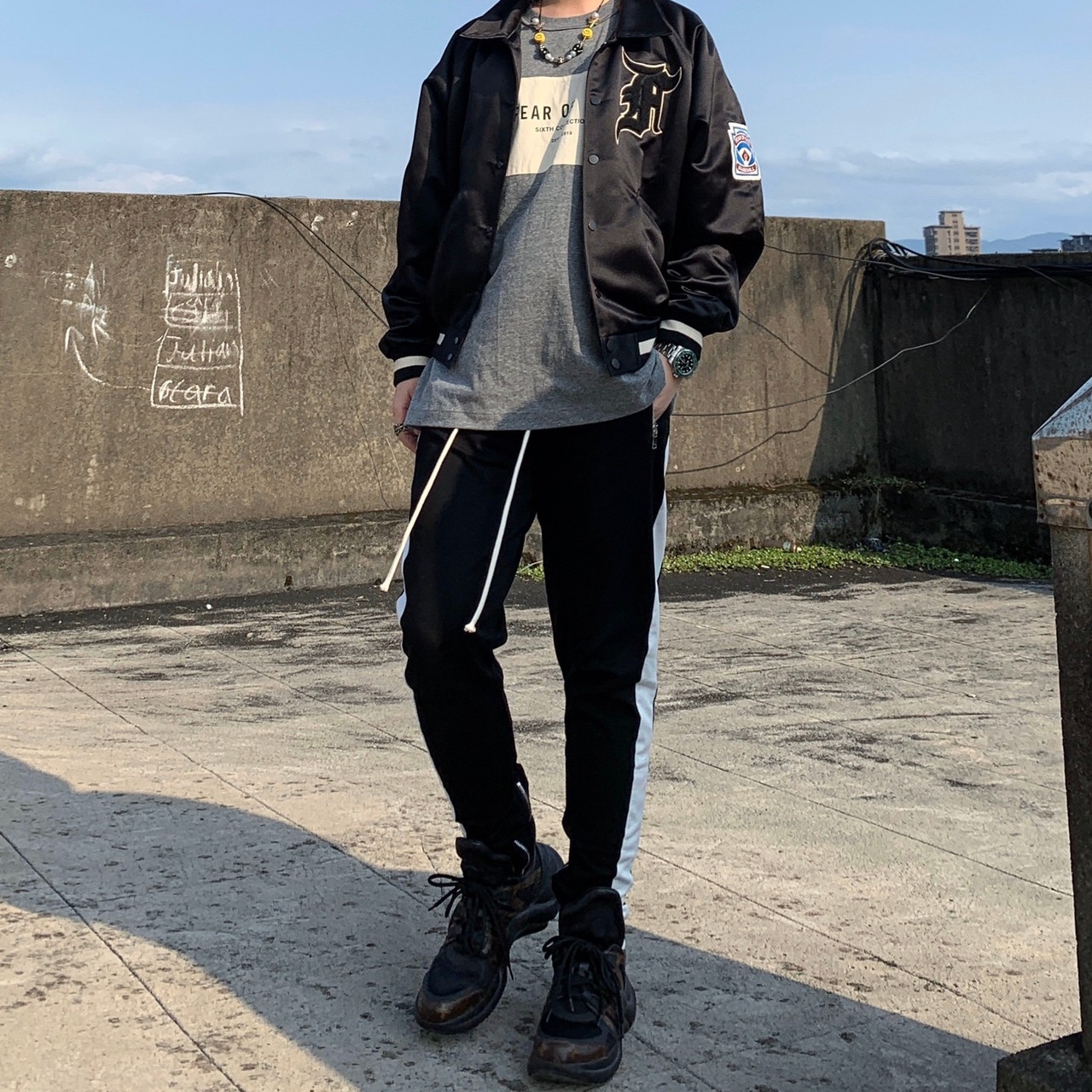 白線抽繩拉鍊 運動褲 Fog風格 褲腳拉鍊