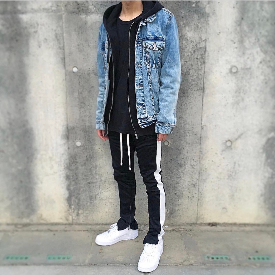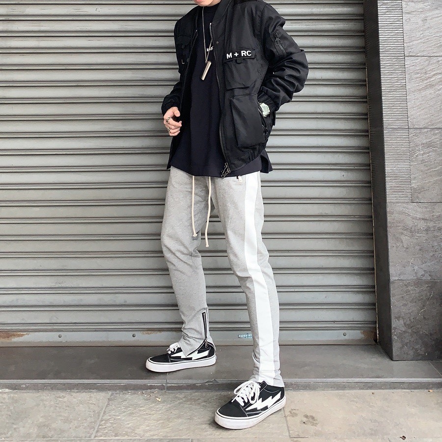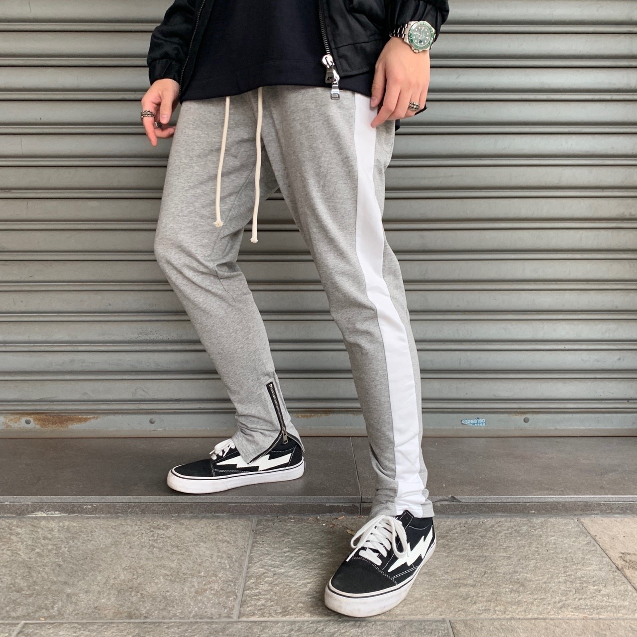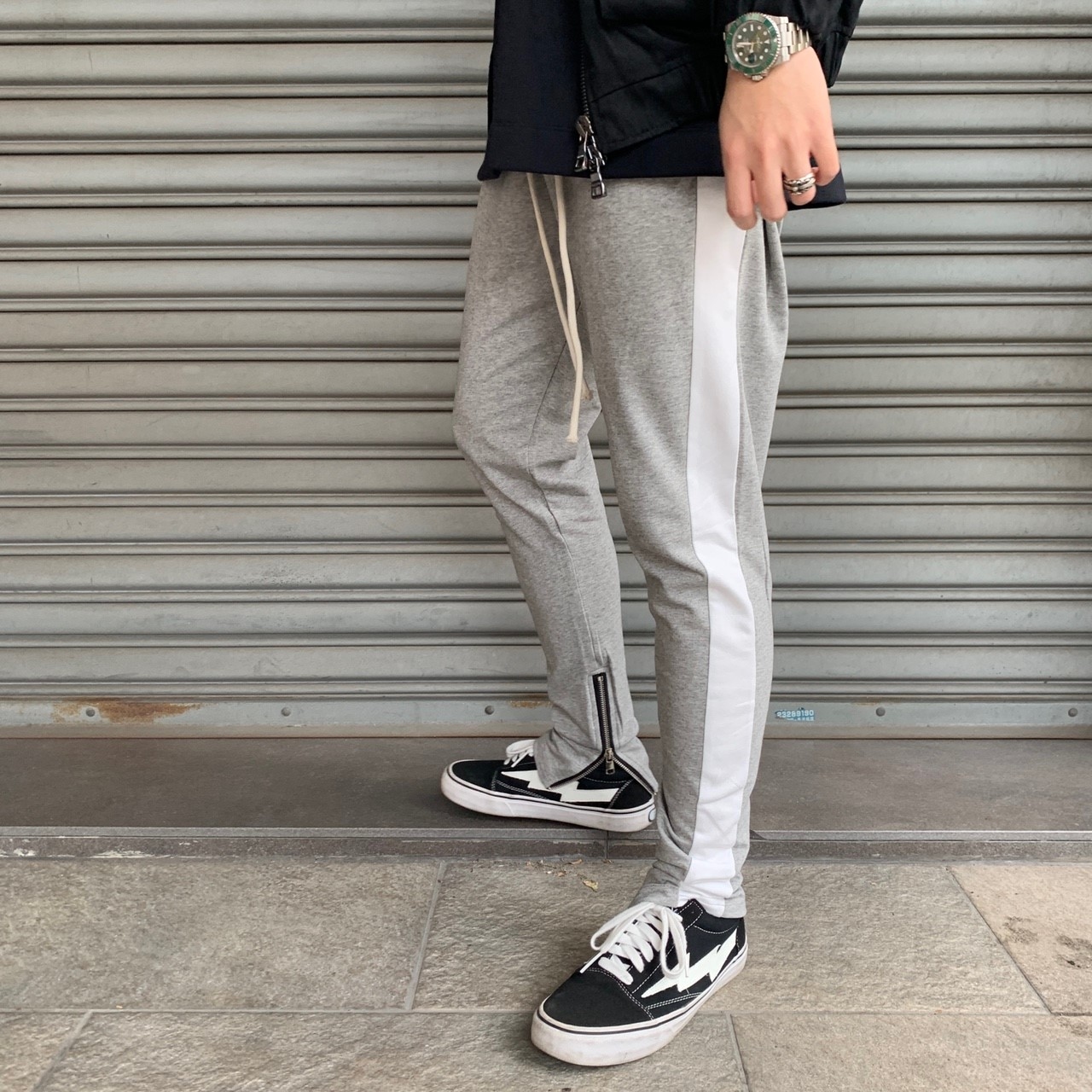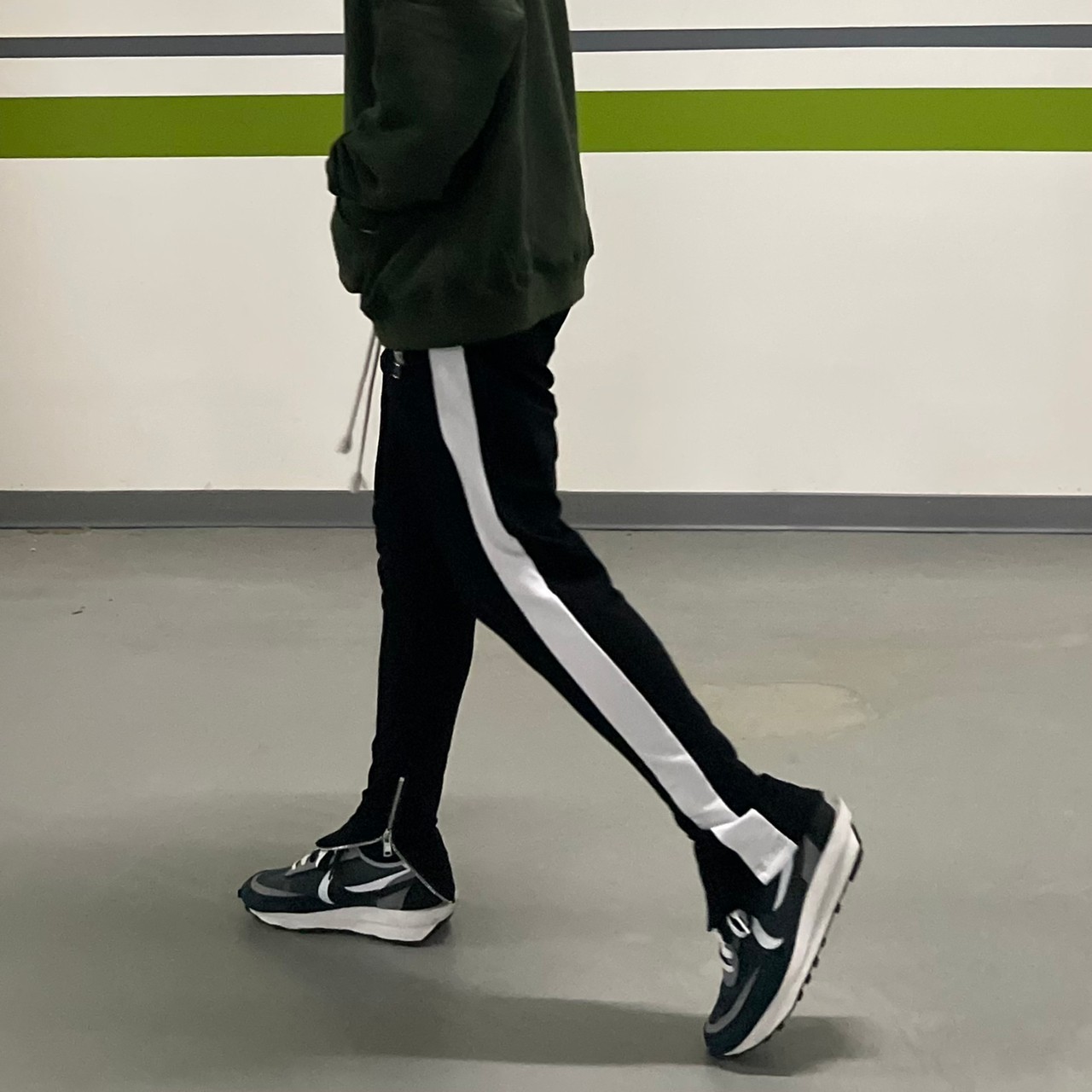 全部商品 / 白線抽繩拉鍊 運動褲 Fog風格 褲腳拉鍊