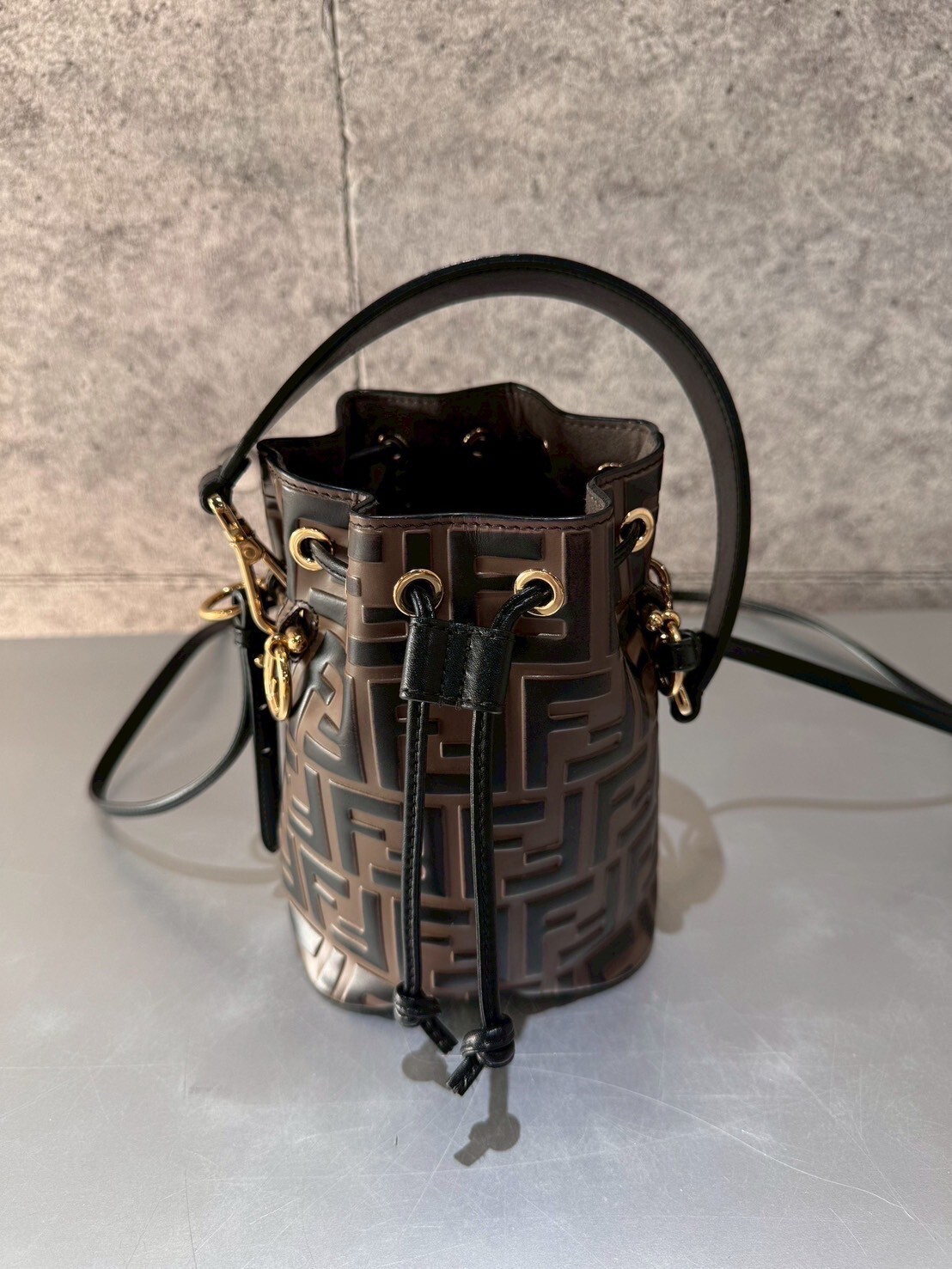 二手美品 6折 FENDI 經典老花水桶包