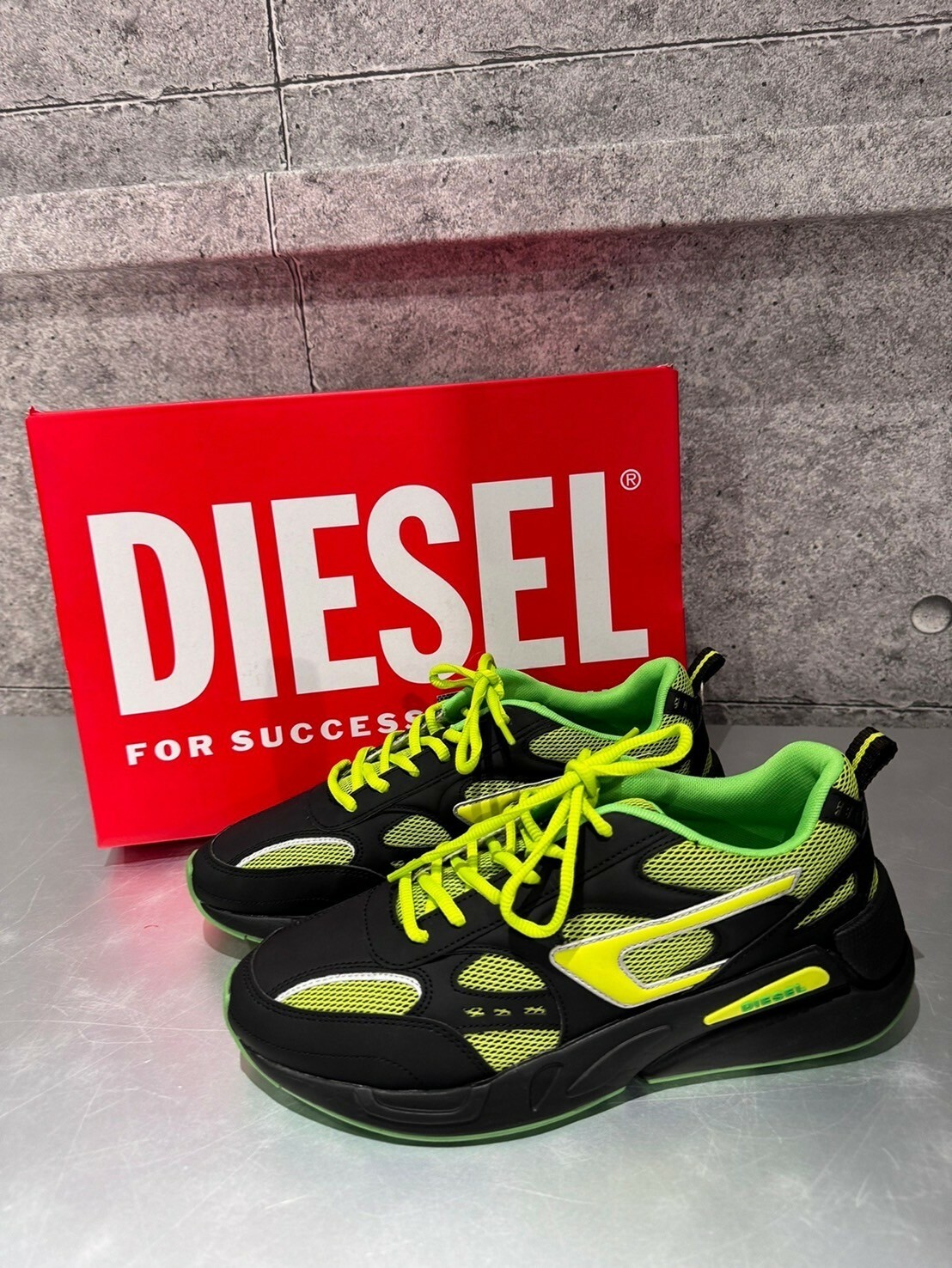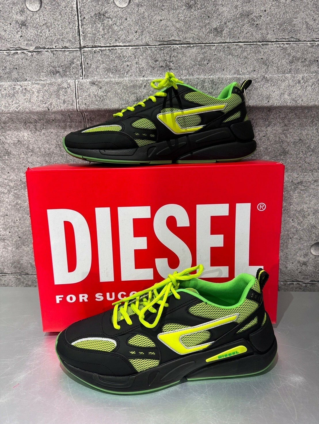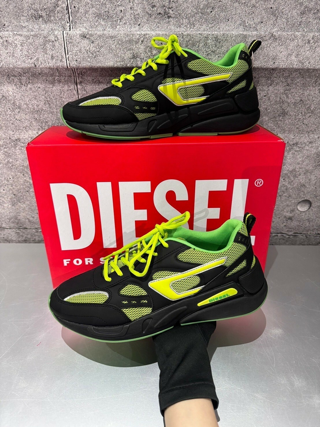 現貨4折 DIESEL 限定款 黑綠配色Logo 厚底跑鞋