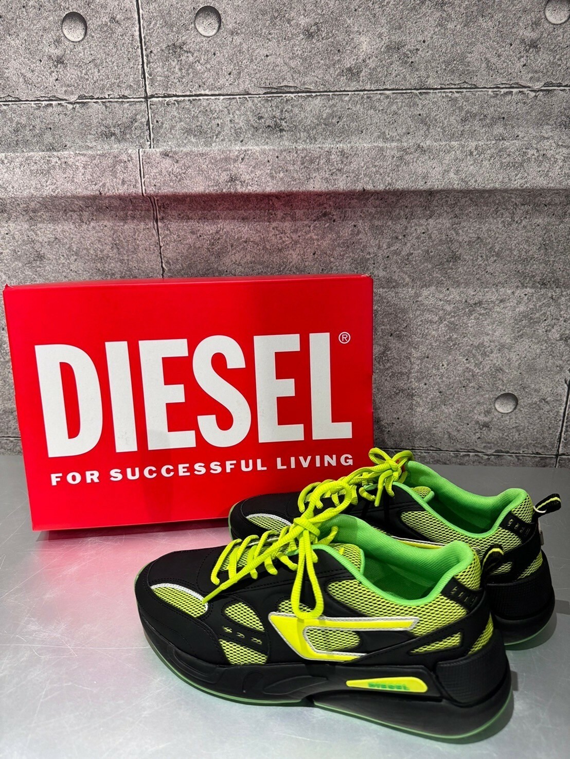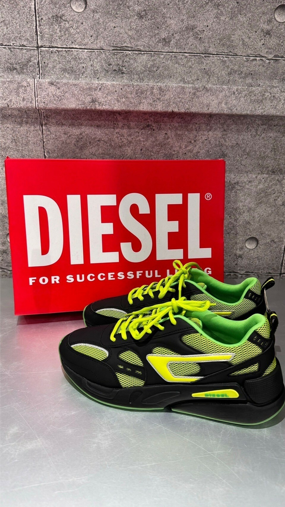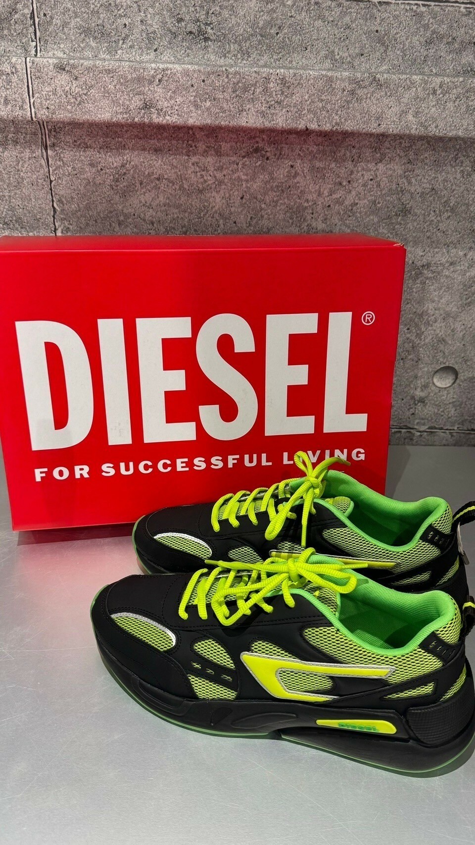 現貨4折 DIESEL 限定款 黑綠配色Logo 厚底跑鞋