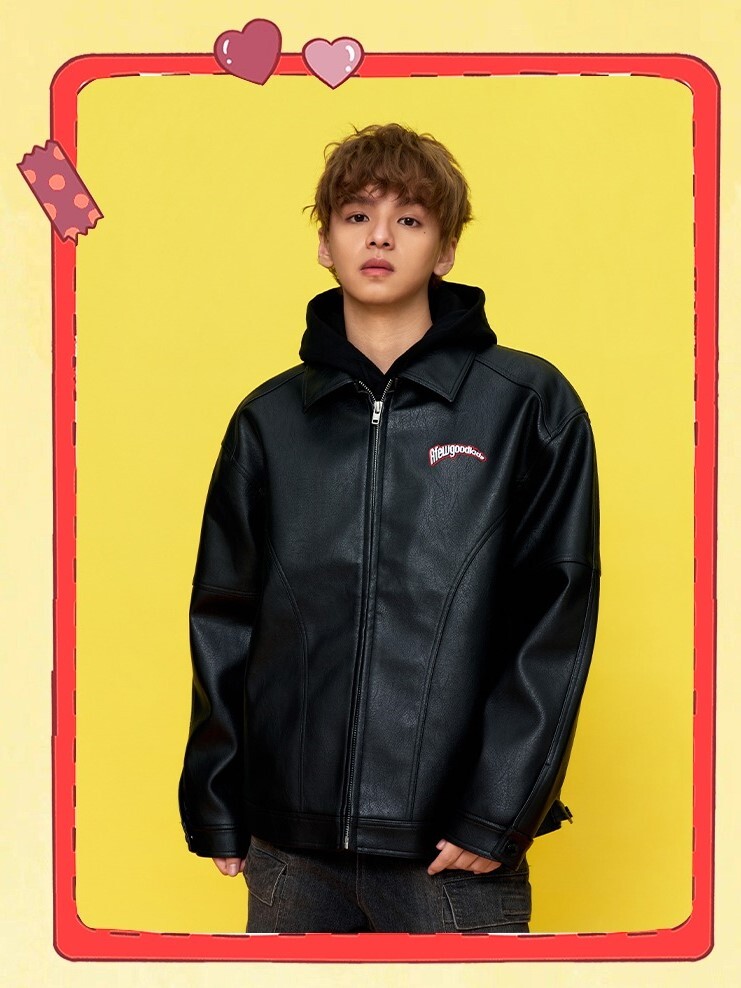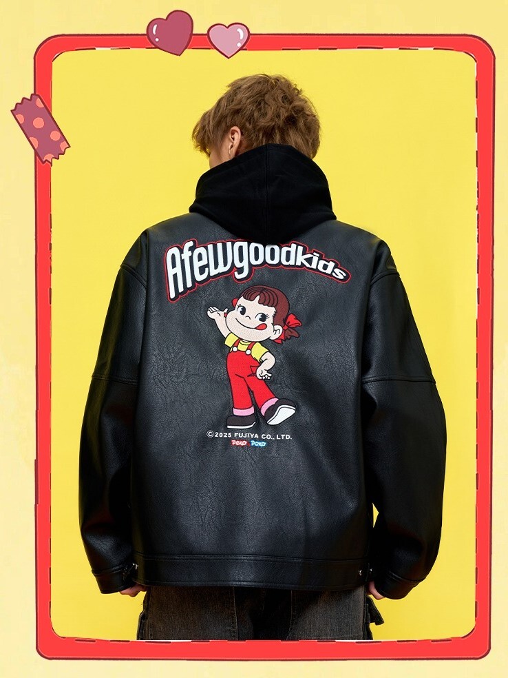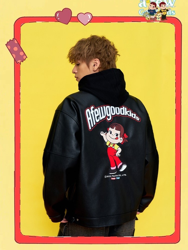 AFGK x 不二家 背後人物刺繡印花 翻領皮衣 夾克 外套 A FEW GOOD KIDS