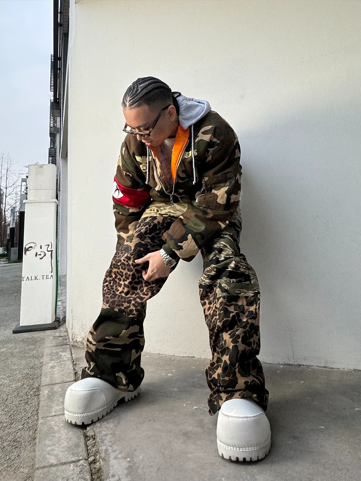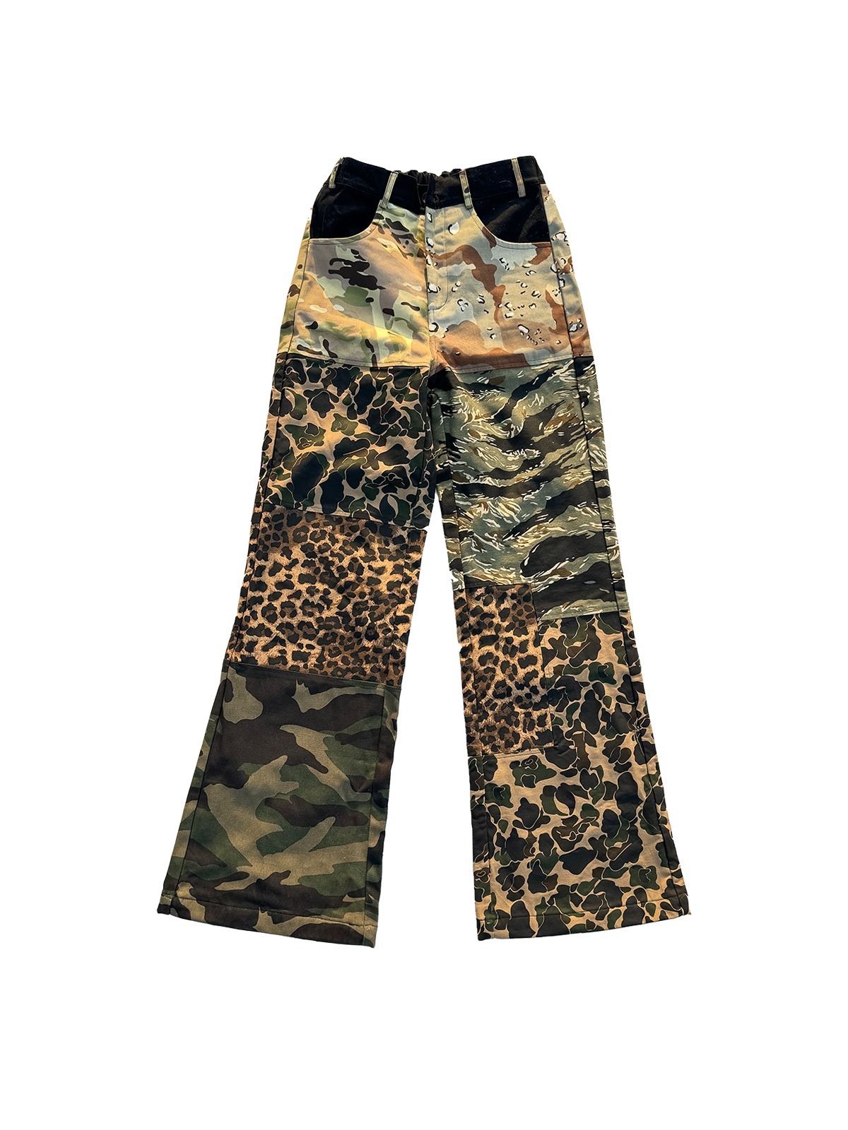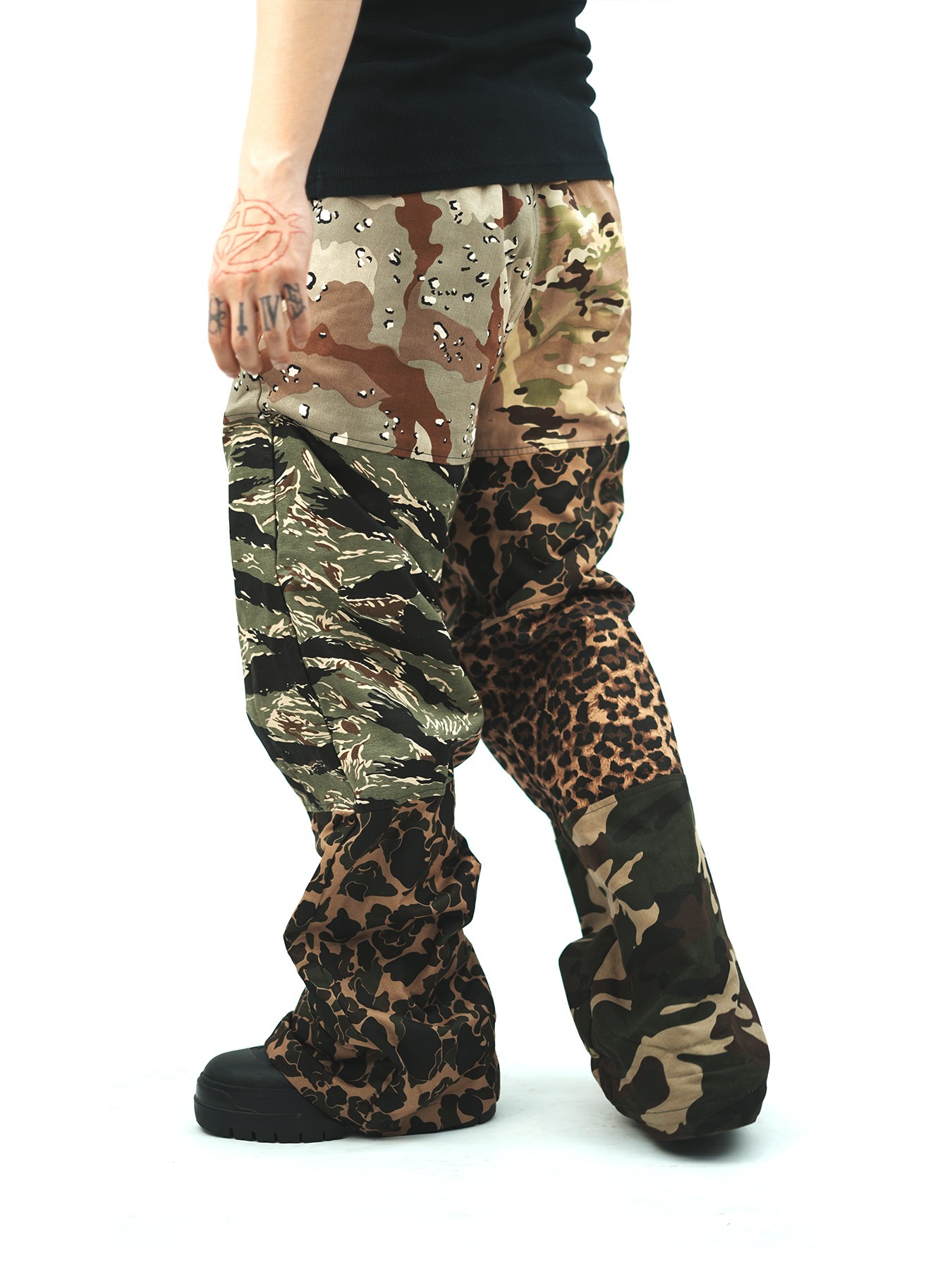 Aone4sure 迷彩豹紋 拼接 工裝長褲