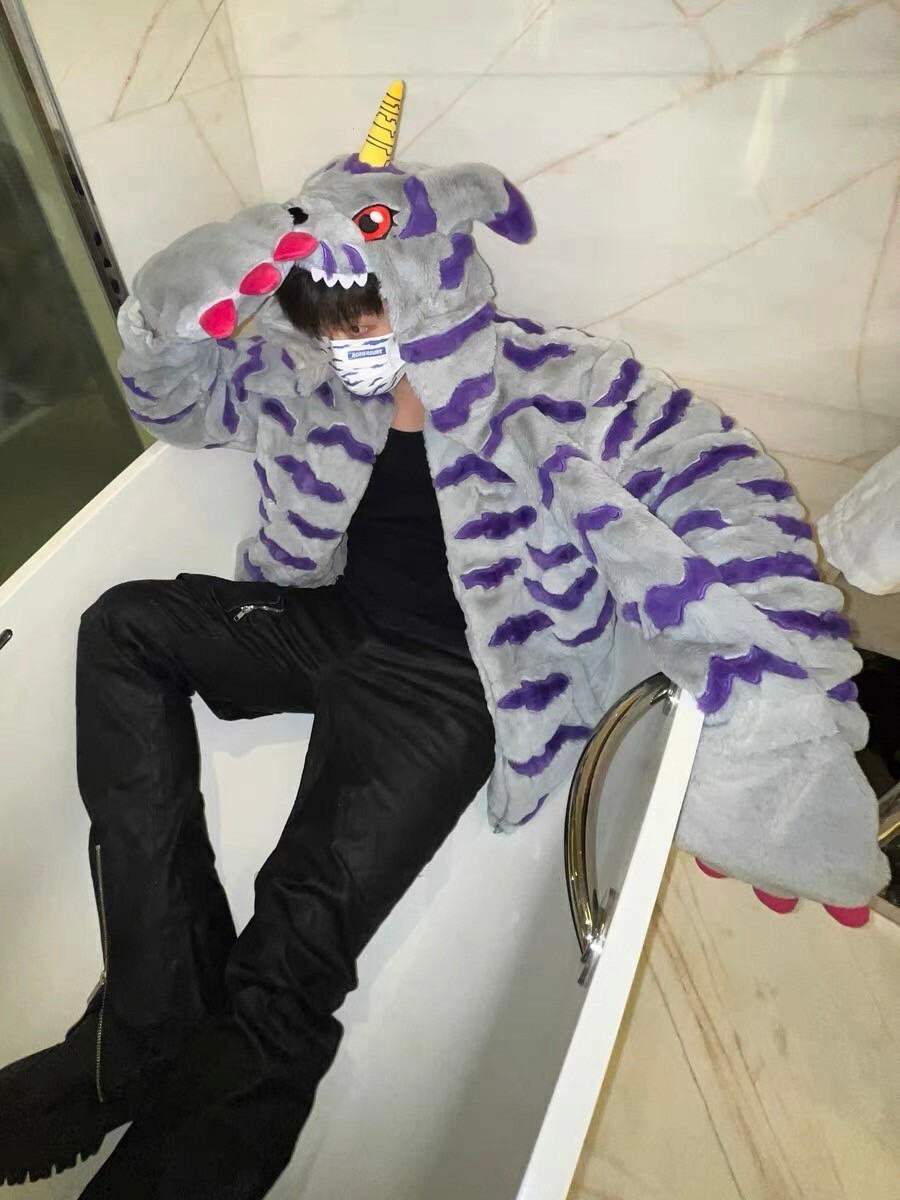 Aone4sure 數碼寶貝 加布獸 毛絨連帽外套 Post Malone 馬龍著用系列 Gabumon