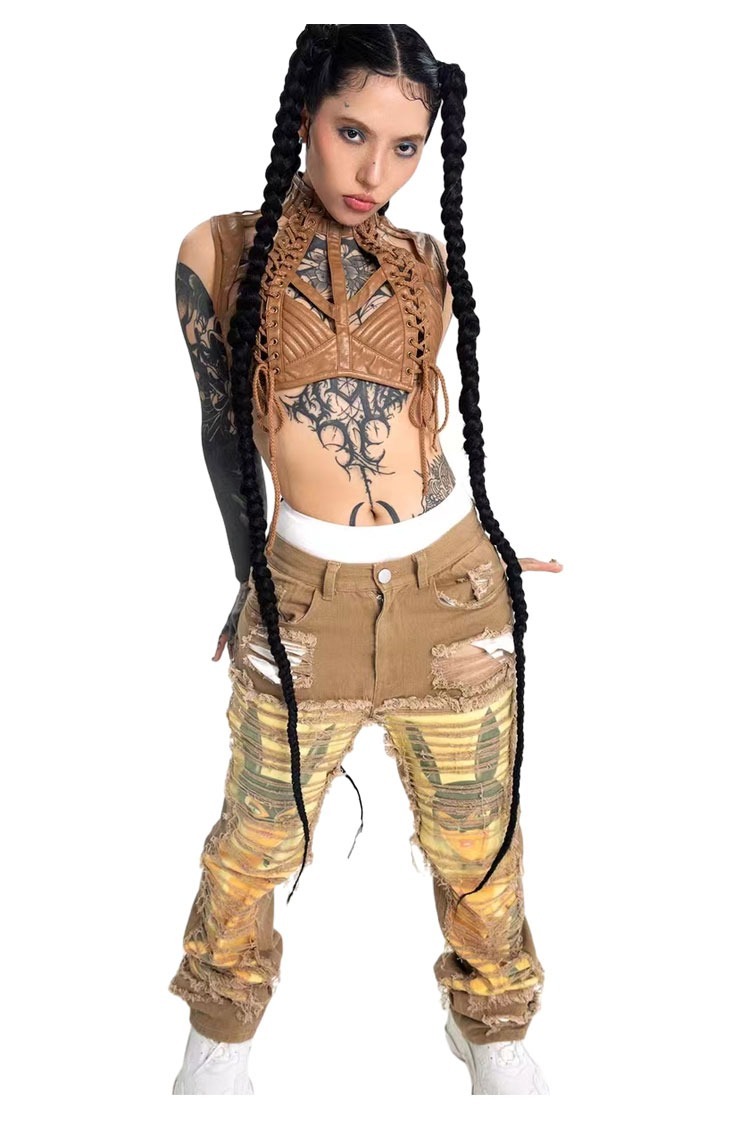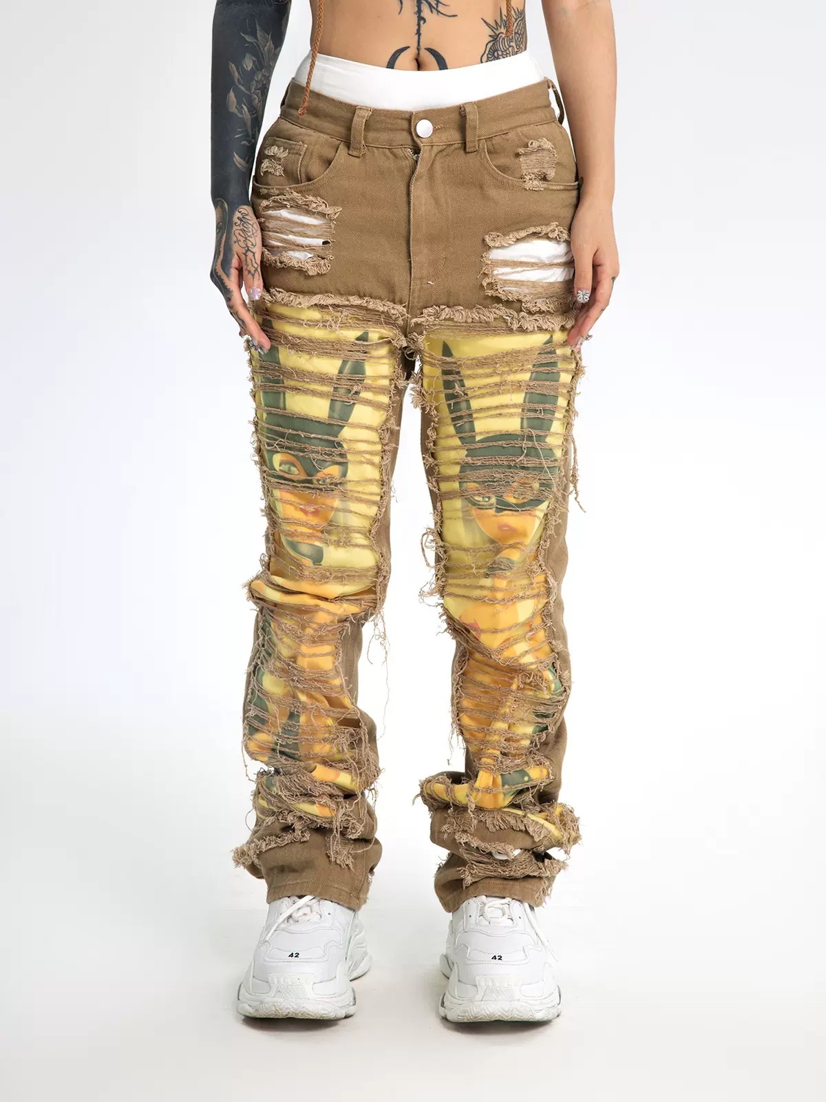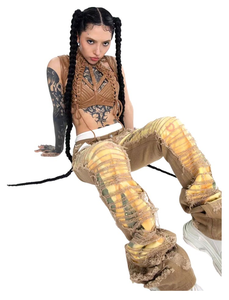 AONE4SURE x ILOVEUIHATEU 動漫 兔女郎 刷破 牛仔長裤