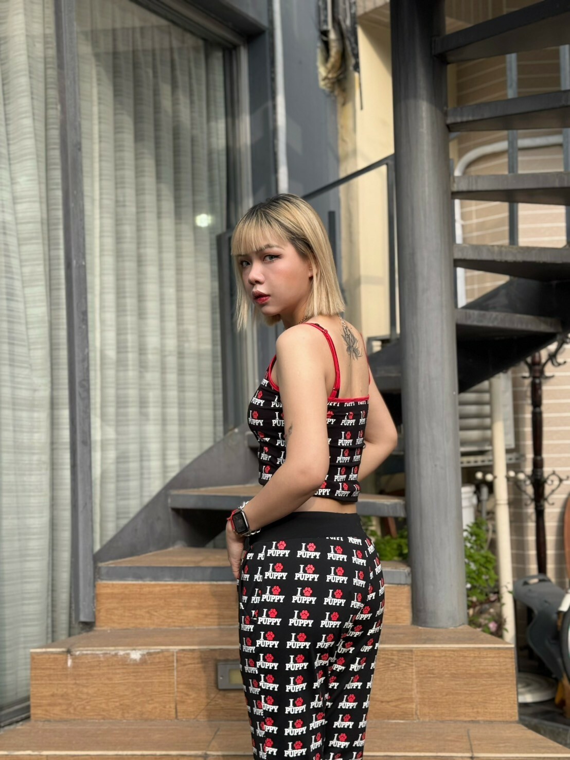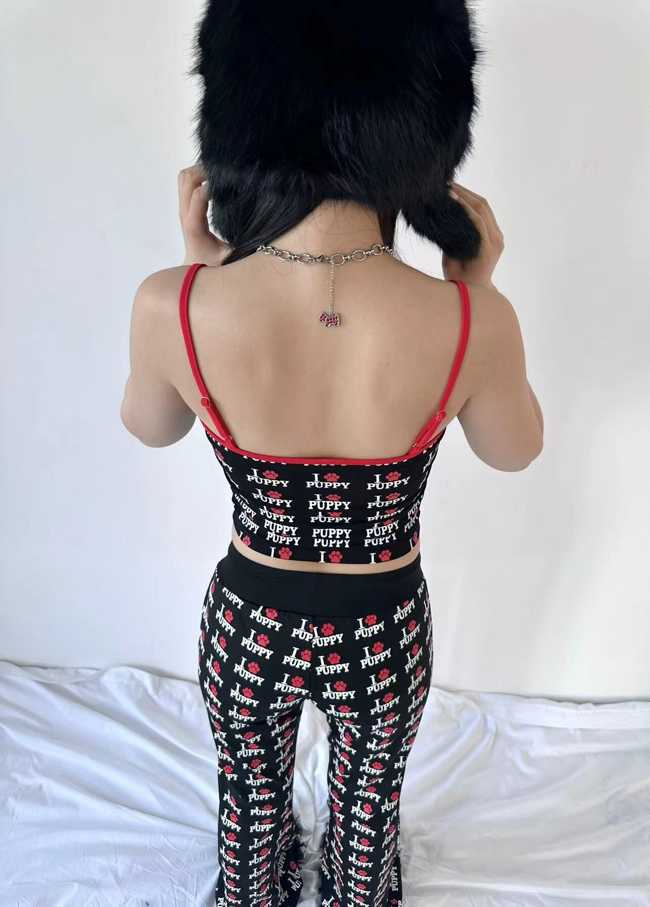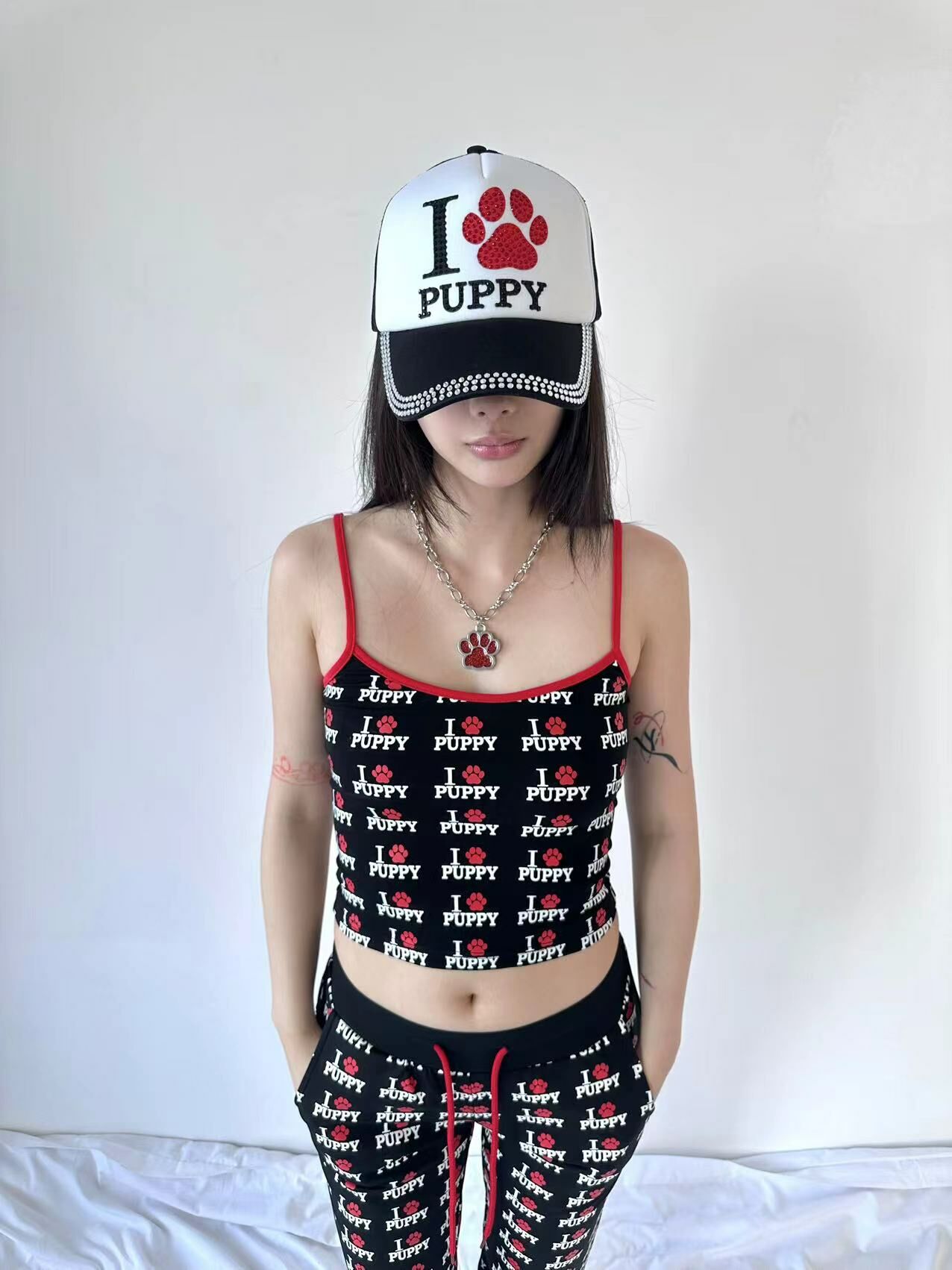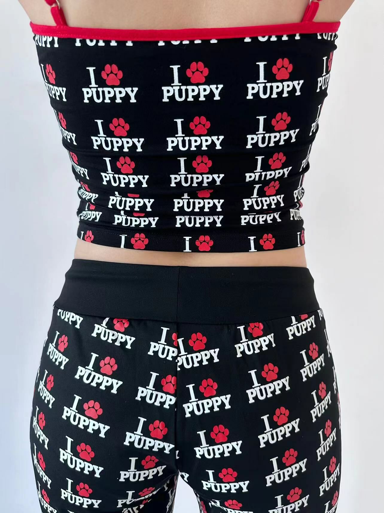 ArtByTastybabe 滿版我愛小狗 辣妹款 修身細肩背心 黑色
