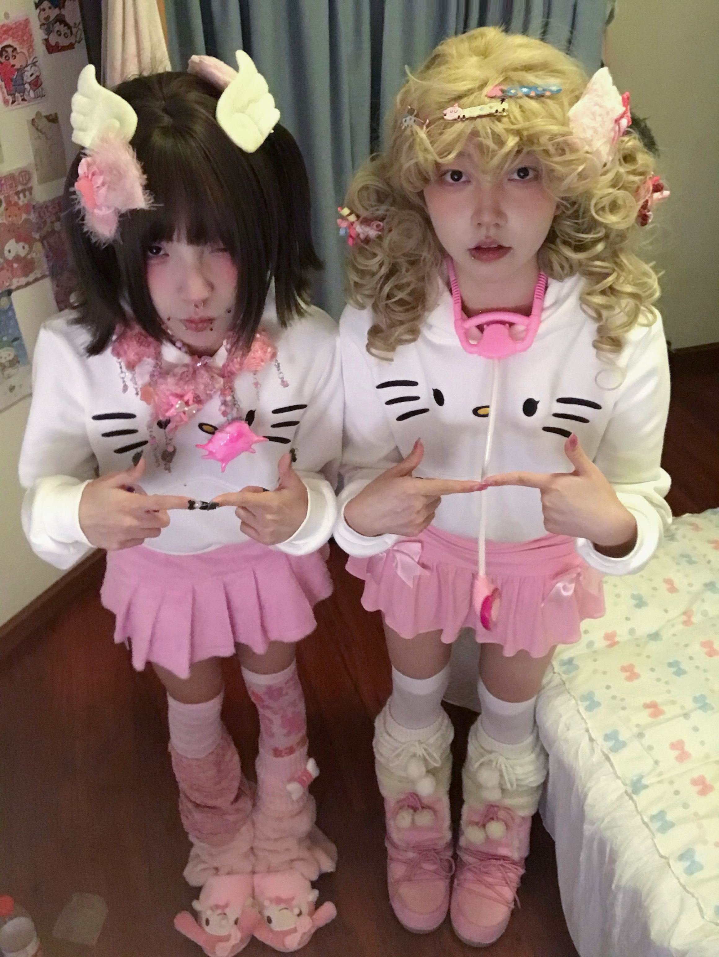 ArtByTastybabe 凱蒂貓 蝴蝶結 短版帽T 套裝