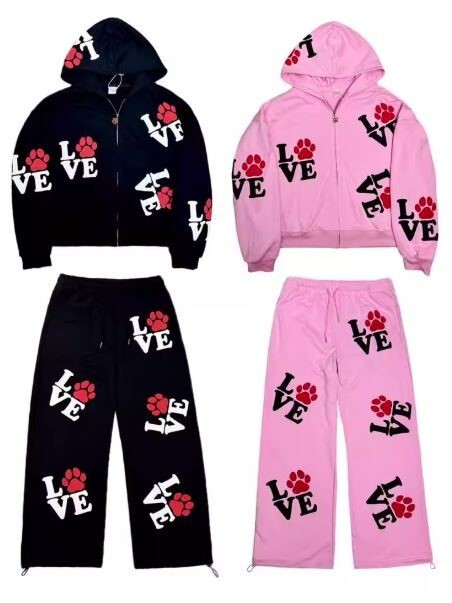 ArtByTastybabe LOVE 狗腳印 發泡印花 連帽外套 棉褲 套裝