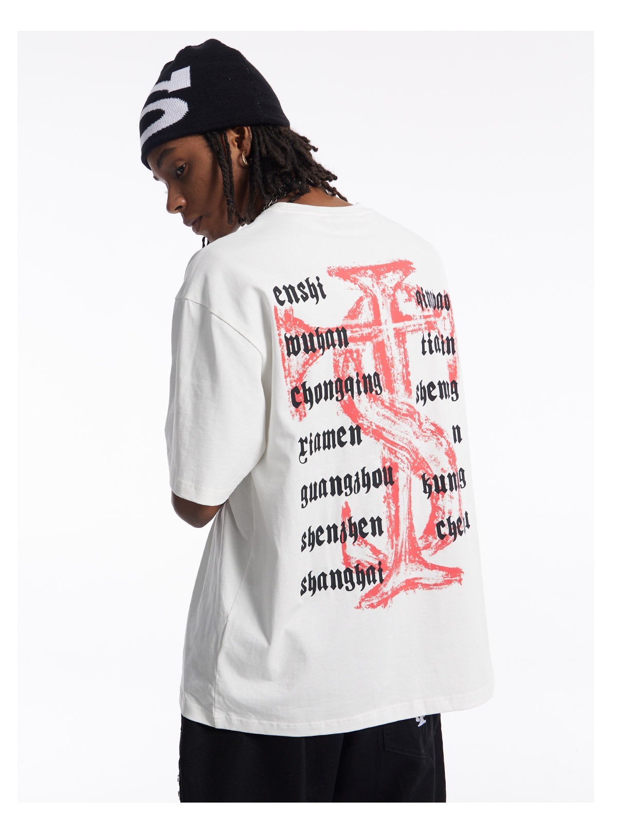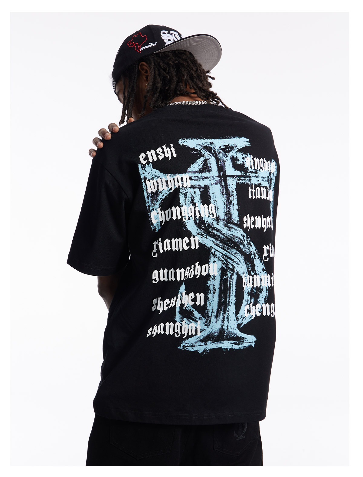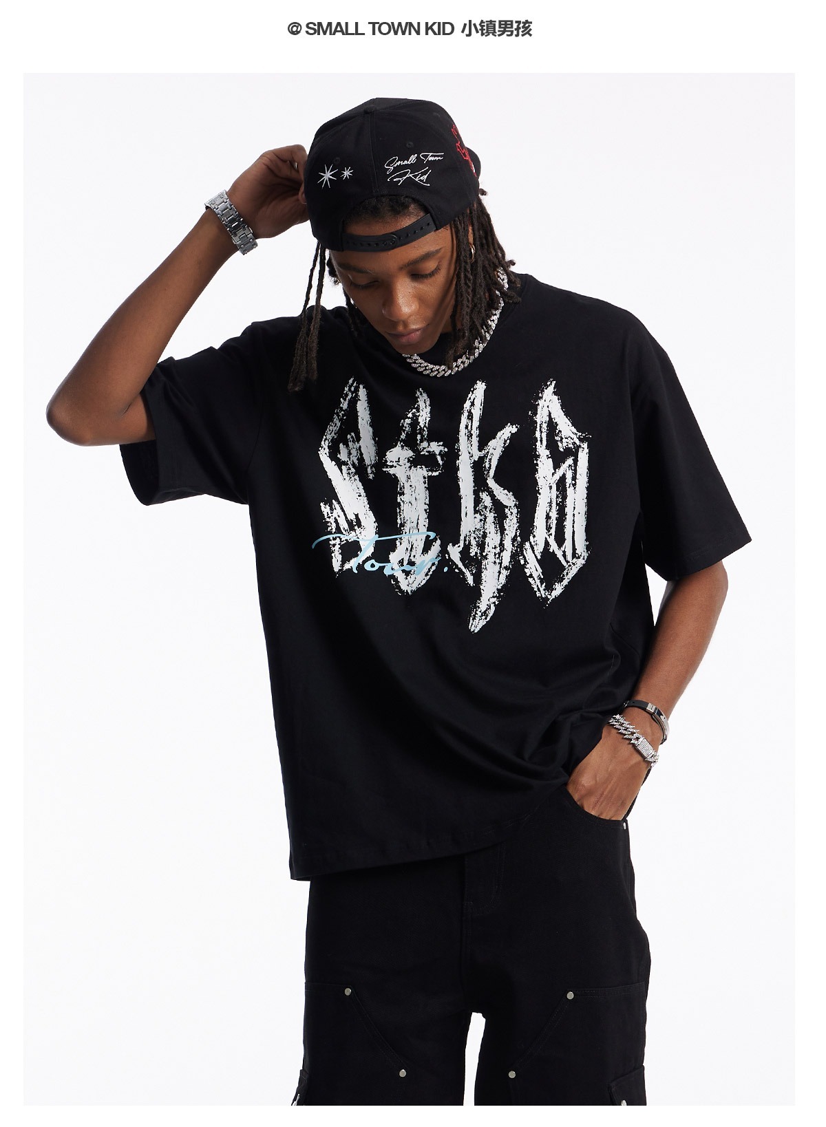 ASEN同款 STK SmallTownKid 美式復古字體 背後十字印花 T恤