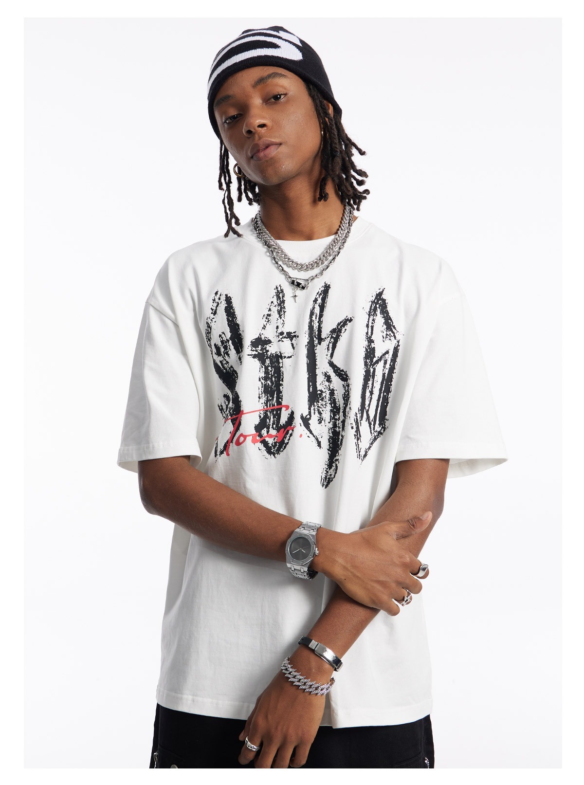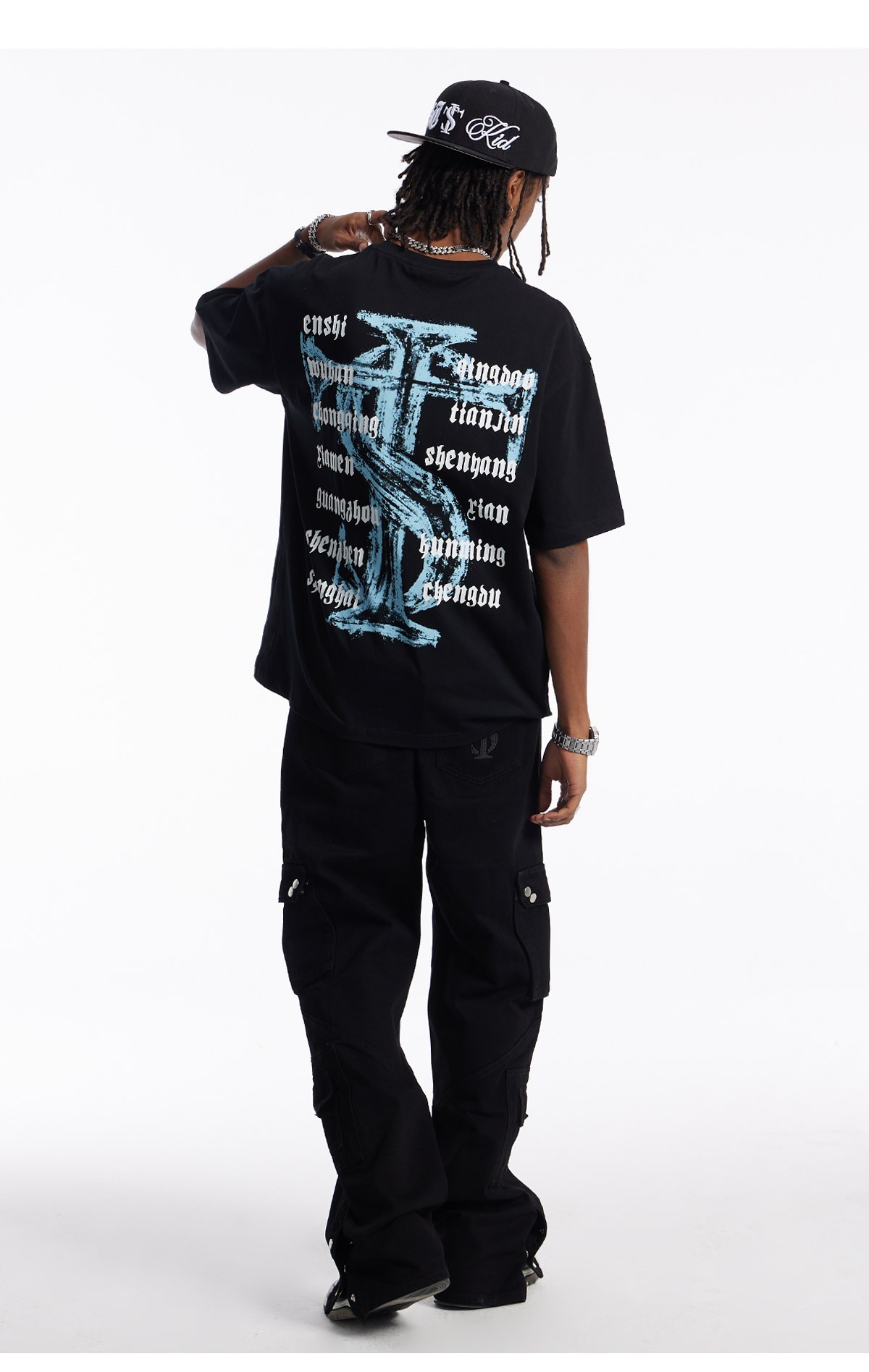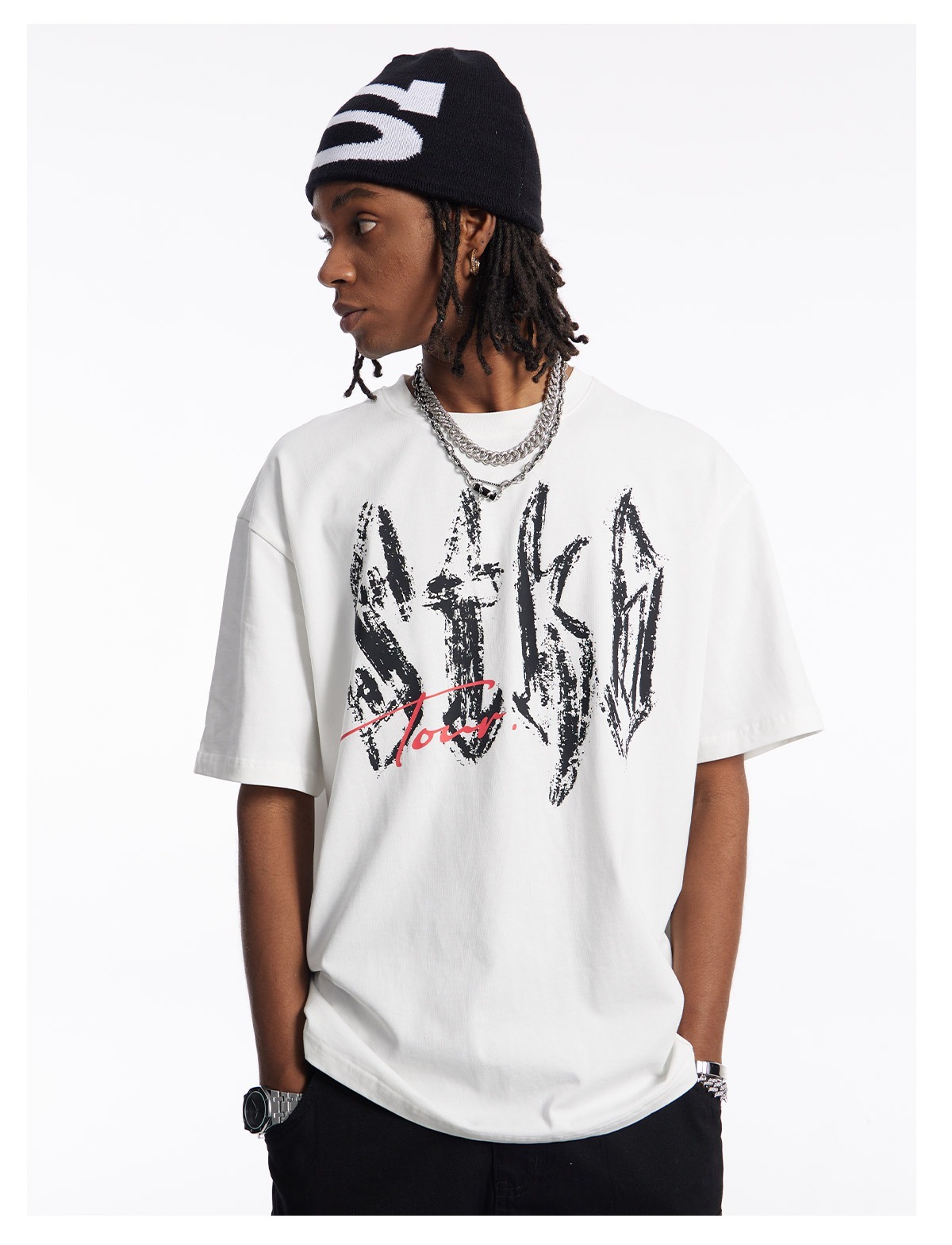 ASEN同款 STK SmallTownKid 美式復古字體 背後十字印花 T恤