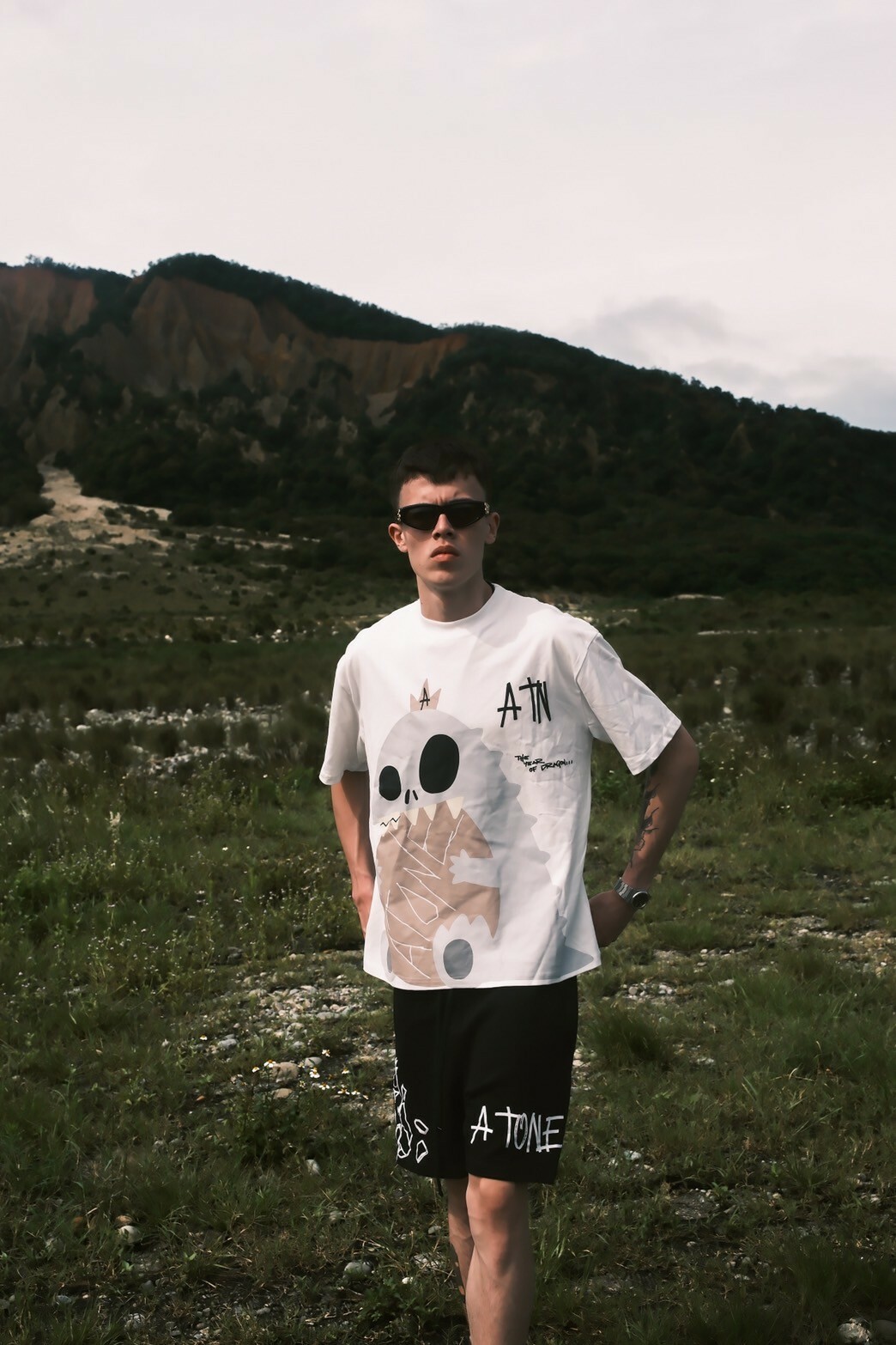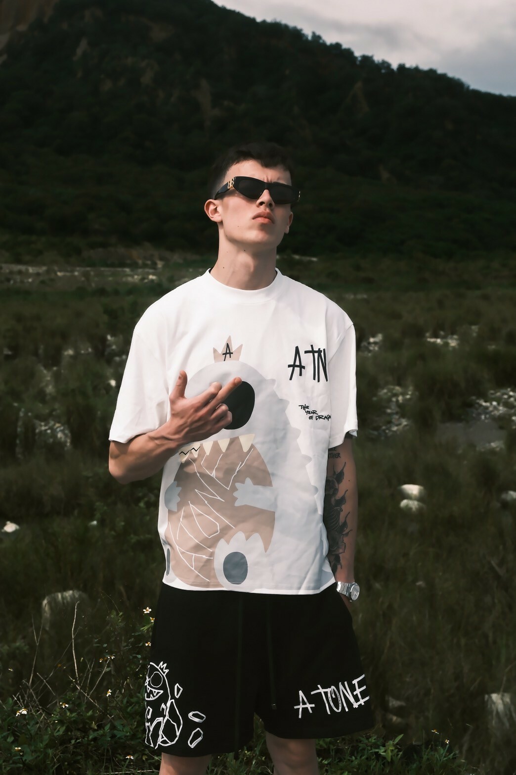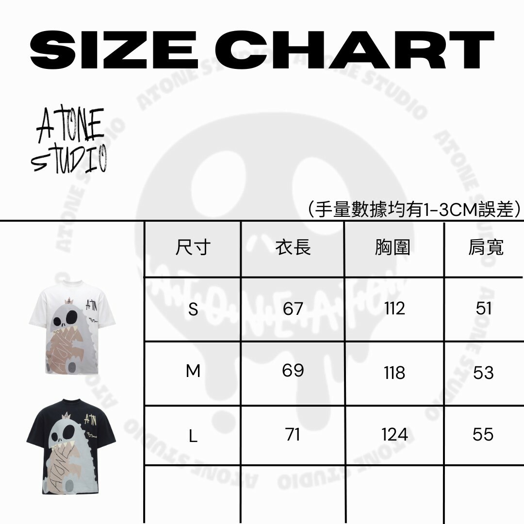 ATONE STUDIO 限定款 手繪色塊恐龍發泡短袖 T 哥吉拉