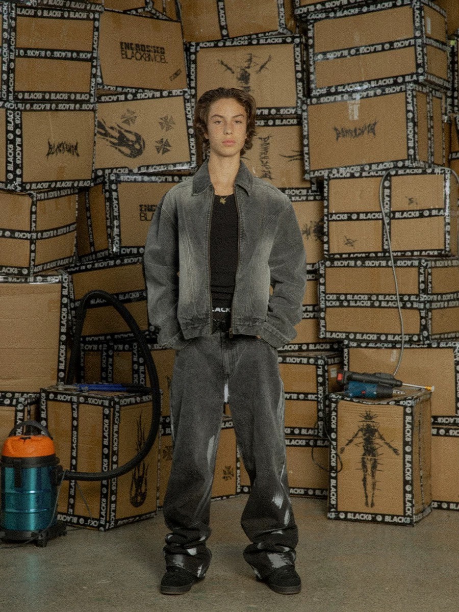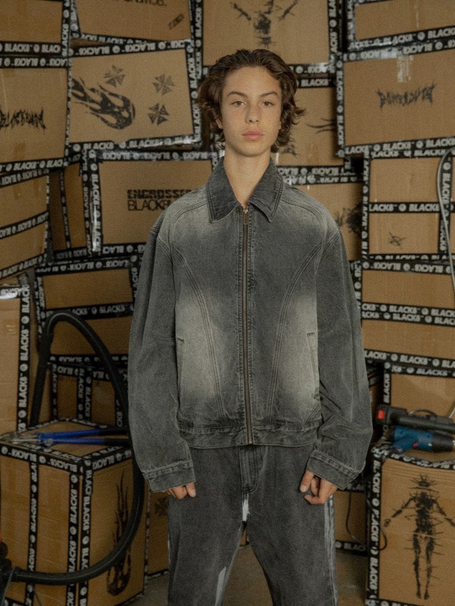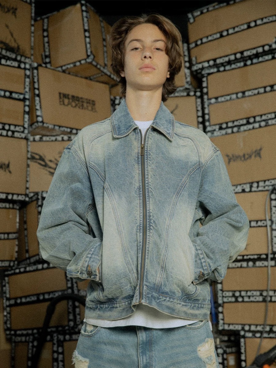 BLACK8MOB 水洗解構 復古做舊 寬短版 牛仔夾克