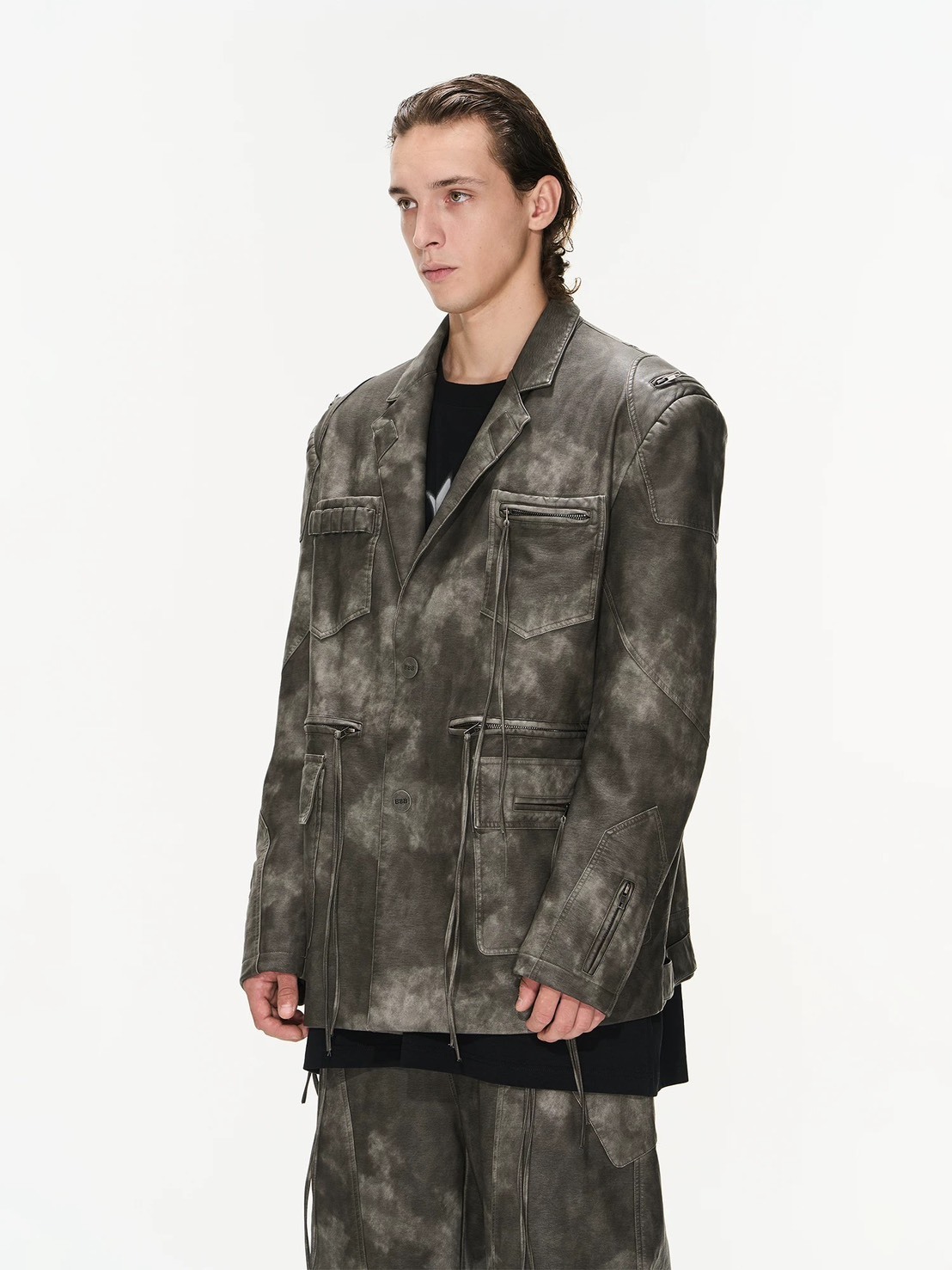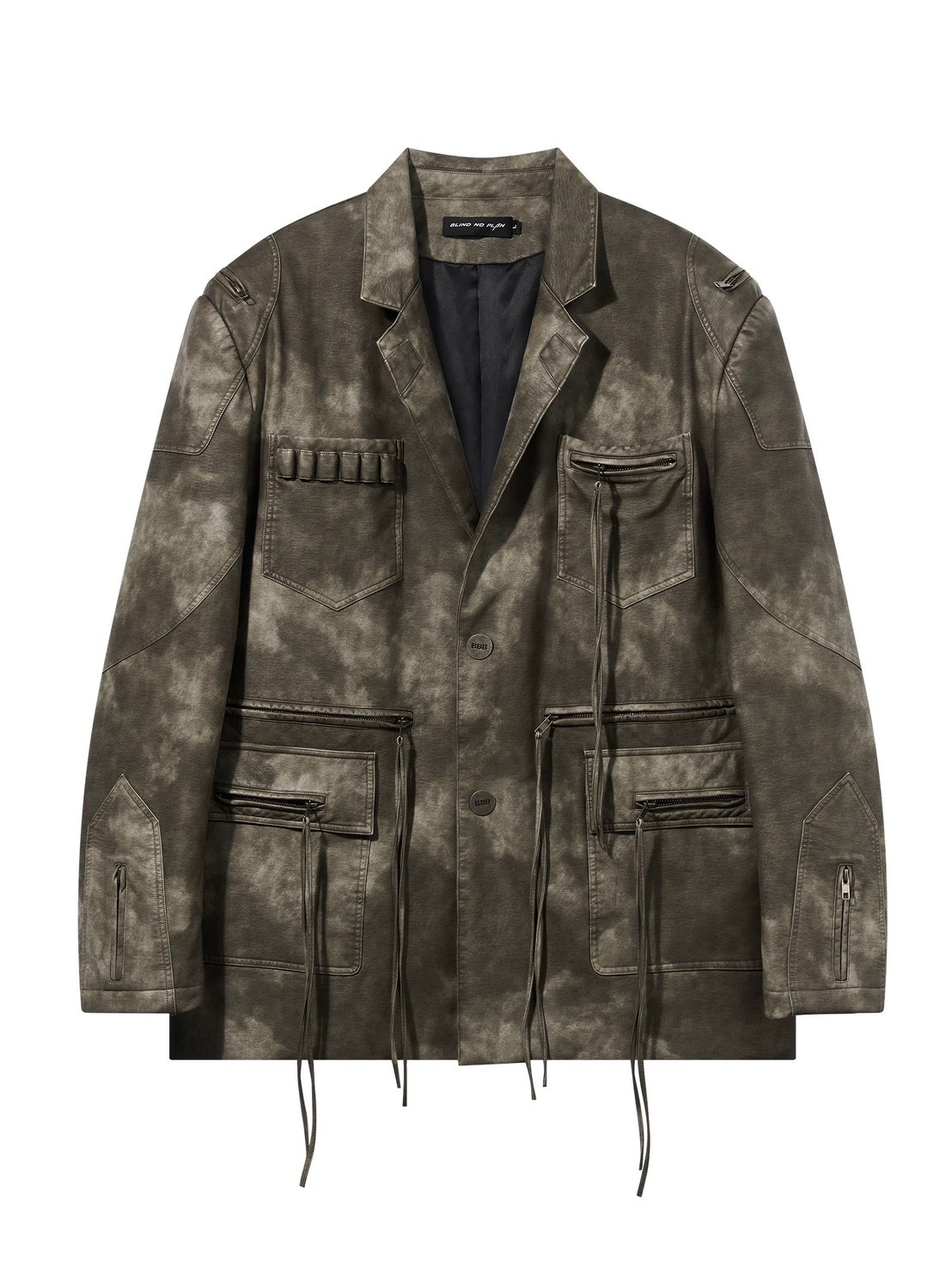 BLINDNOPLAN 水洗做舊拉鍊皮質寬鬆廊形西裝外套