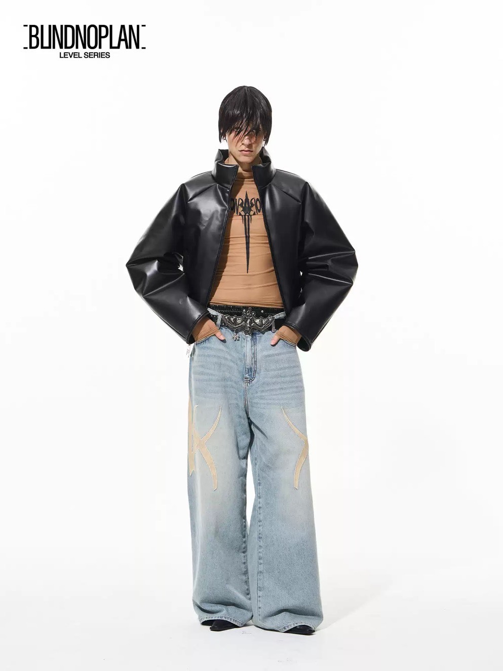 BLINDNOPLAN 貼皮LOGO 水洗BAGGY牛仔褲