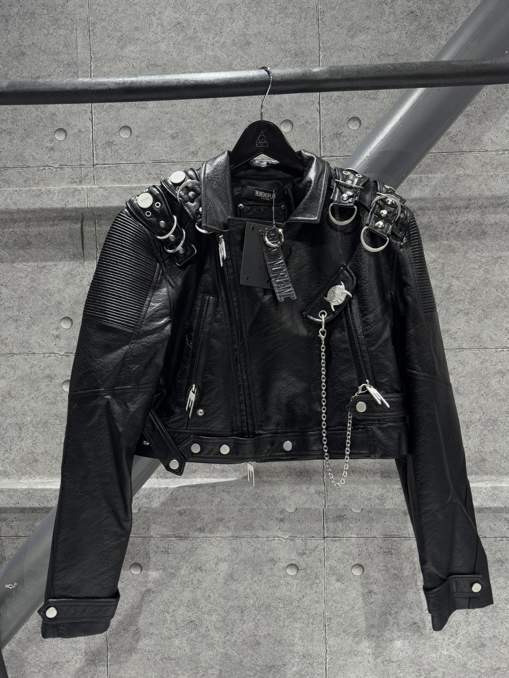 BLINDNOPLAN 金屬鍊條 短款機車皮夾克