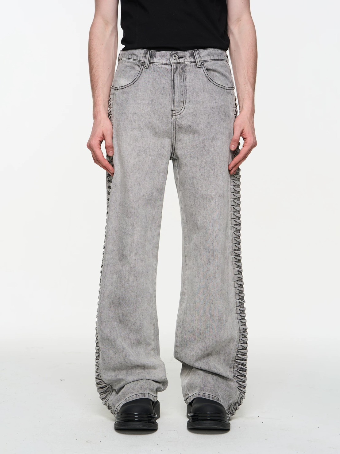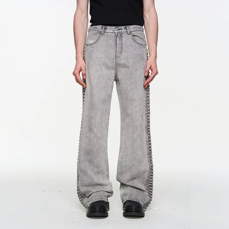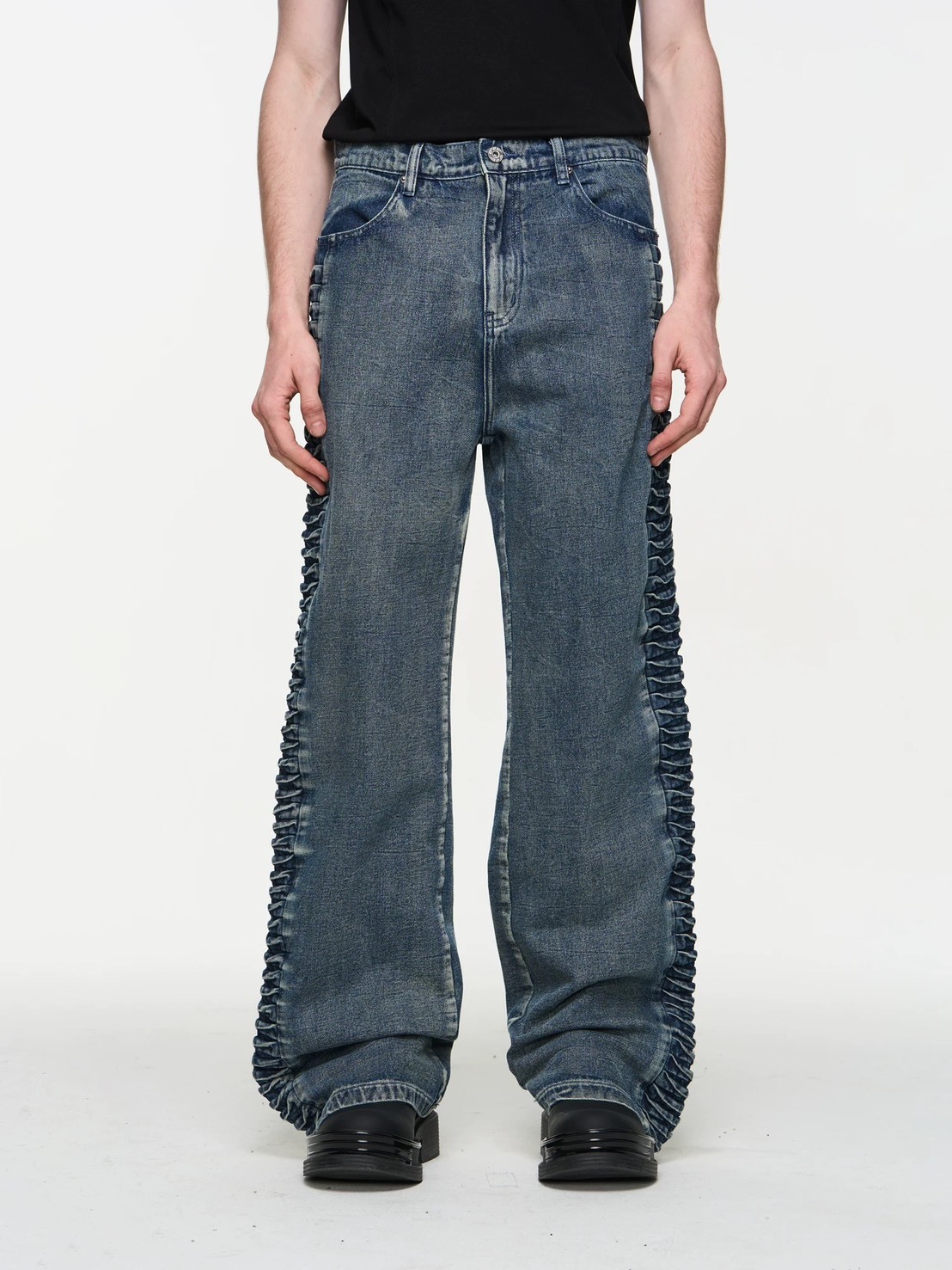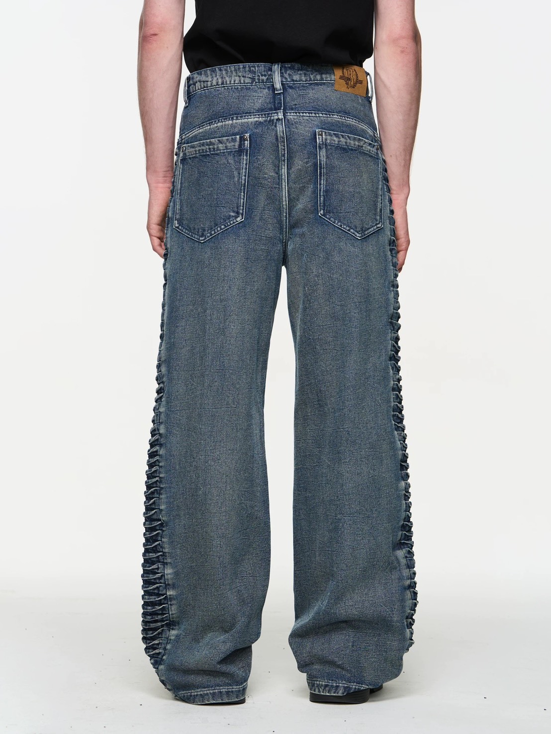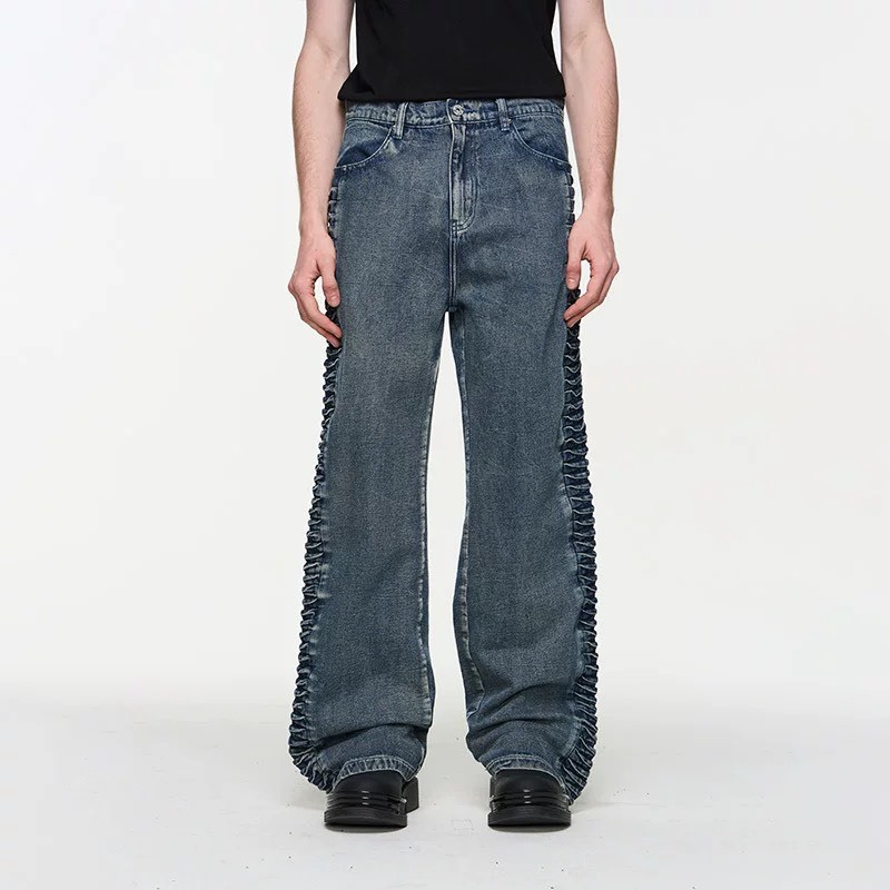 BLINDNOPLAN 水洗做舊 側面捏褶 牛仔褲