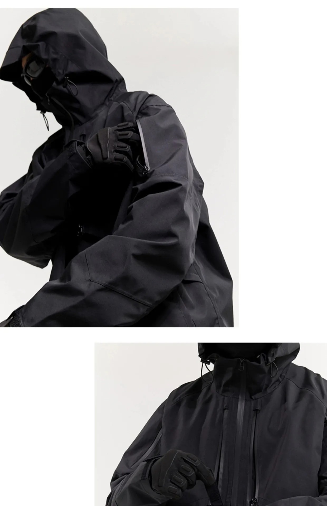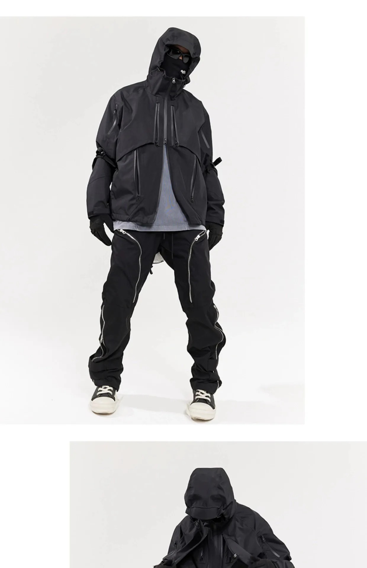 作為二代防曬衣系列,此次我們定織更為輕薄透氣20D高密尼龍布料進口機織,微皺肌理,高密+透氣+不透光+防水+防紫外線50+涼感紗線作為在春夏城市通勤不可或缺的產品,我們兼顧多重功能特性配置可拆卸遮陽風帽系統,兩側可調節豬鼻扣,半高領的領口搭配雙開拉鍊門襟,穿脫便捷,在正面配置對稱四拉鍊口袋倉位具有豐富的收納功能屬性,後備採用兩片式設計中間半透式銜接固定更為透氣,下擺的豬鼻扣可以調節維度是對身材包容性出色的單品。