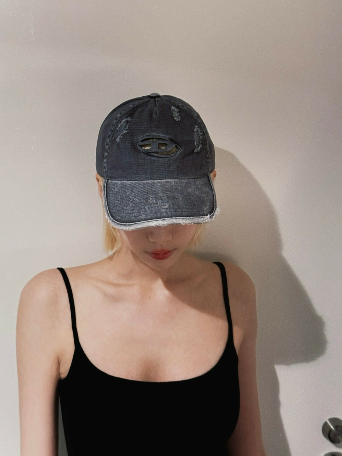 DIESEL 新款鏤空D Logo破壞水洗老帽