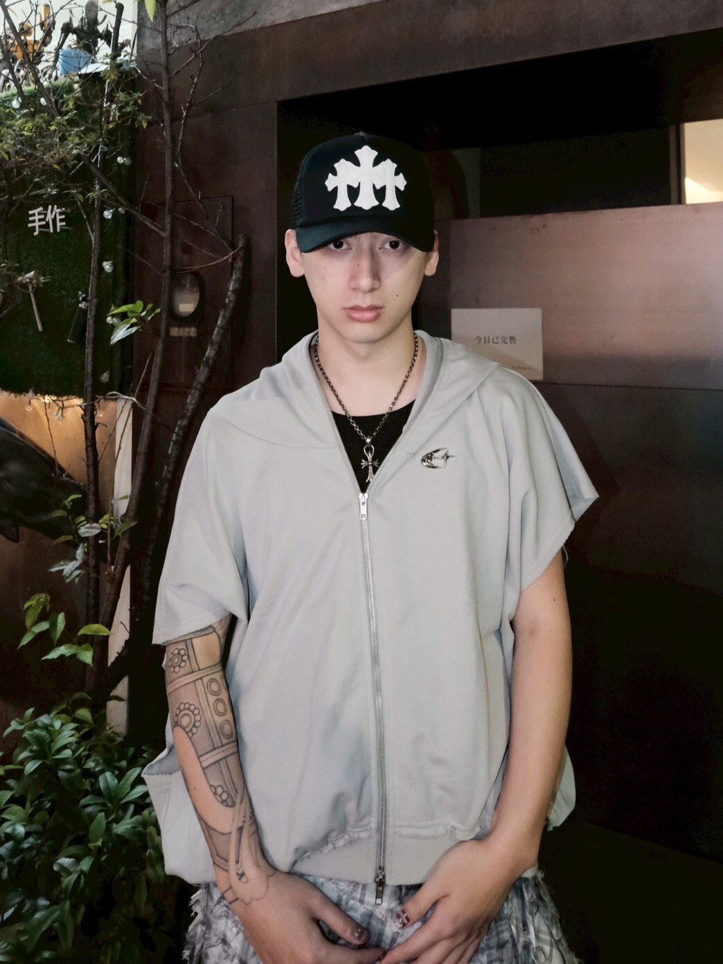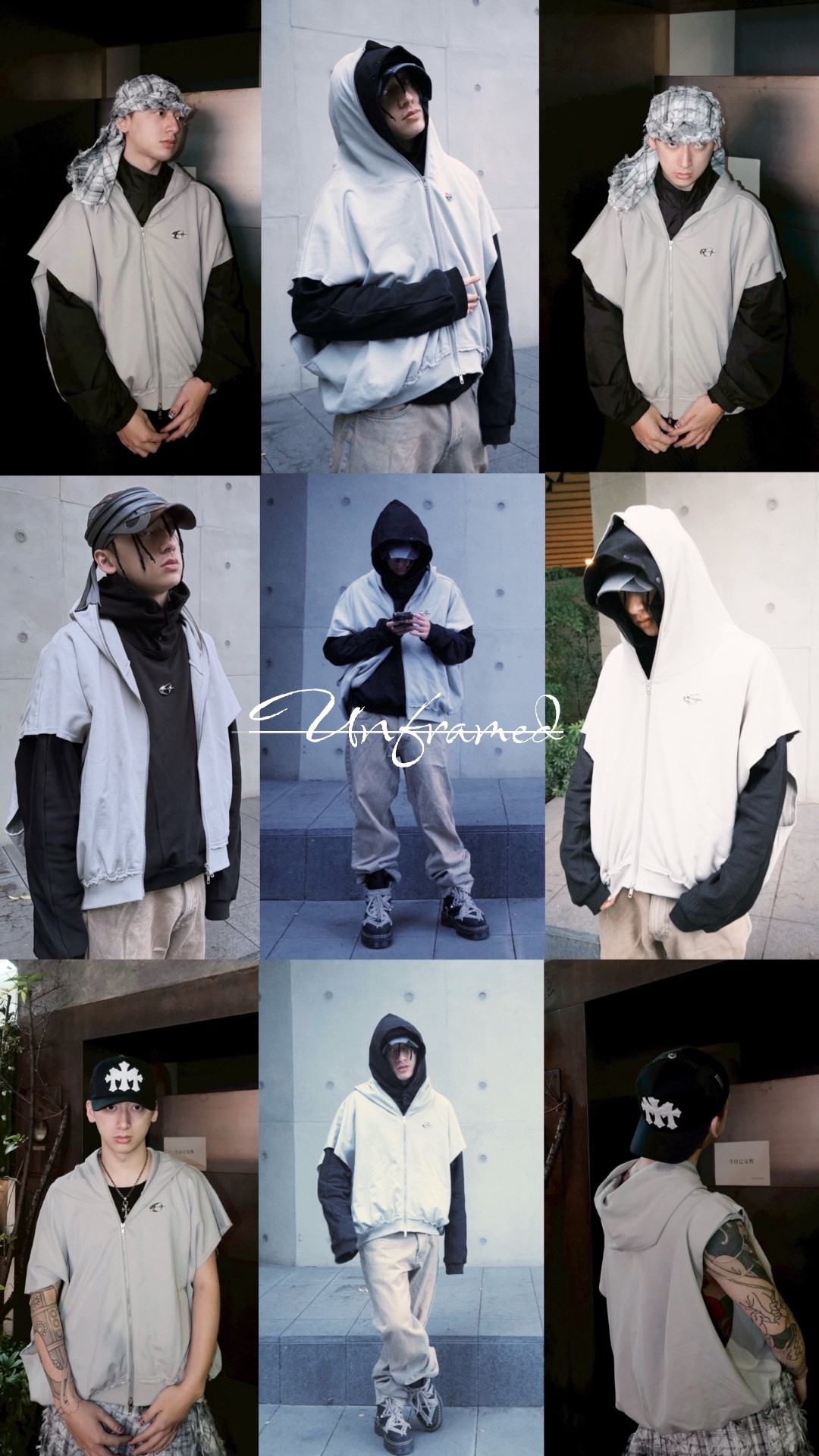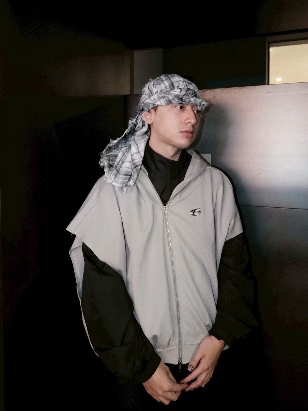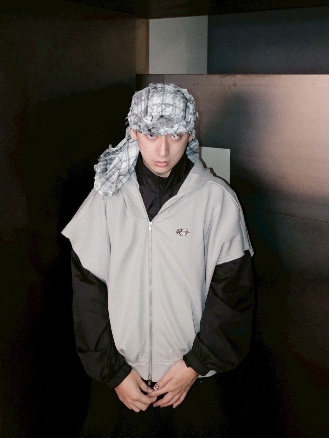 ETERNAL 解構蝙蝠袖 金屬Logo水泥灰 連帽雙拉鏈背心外套