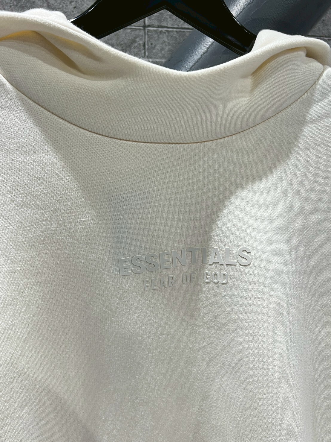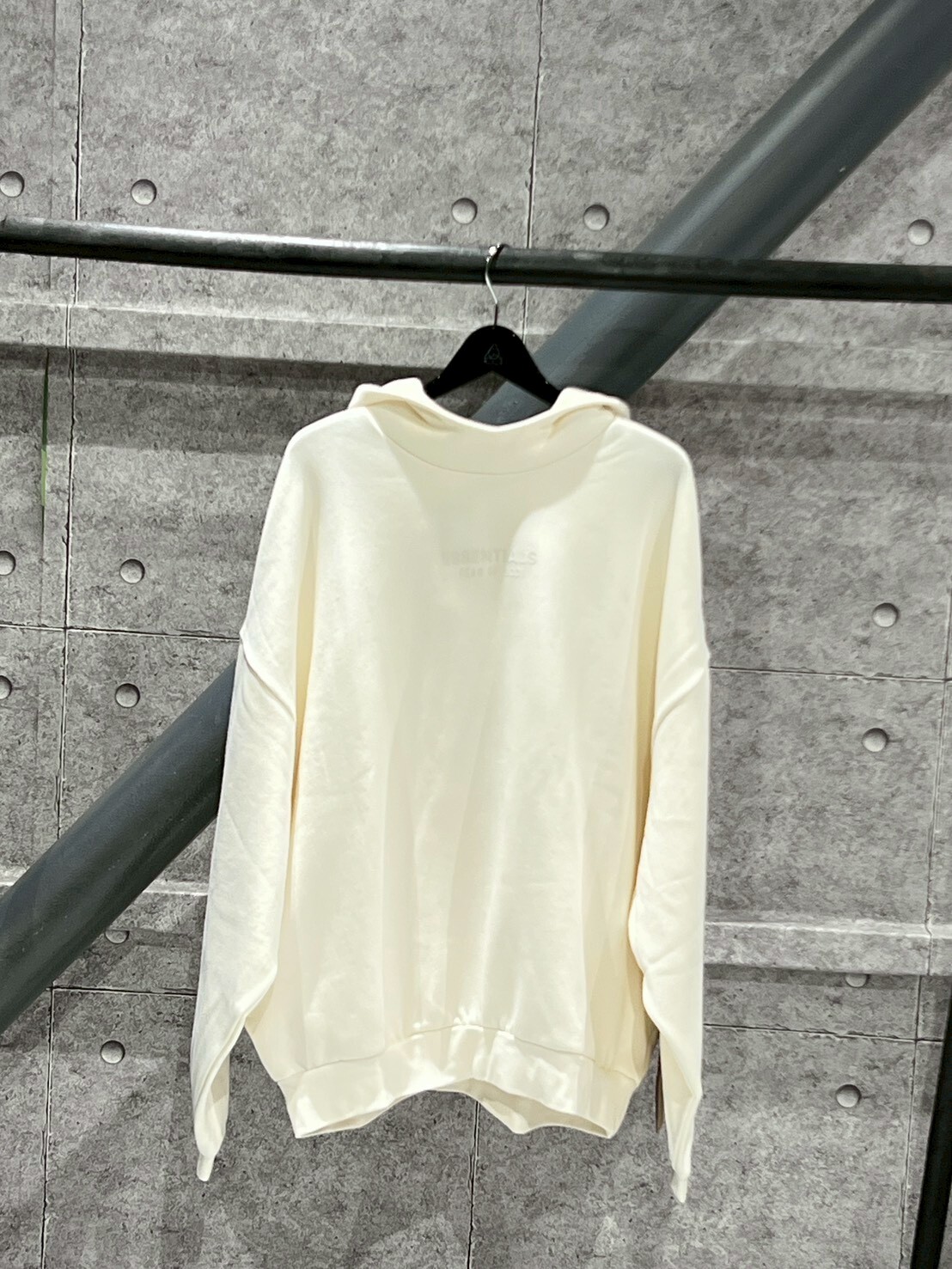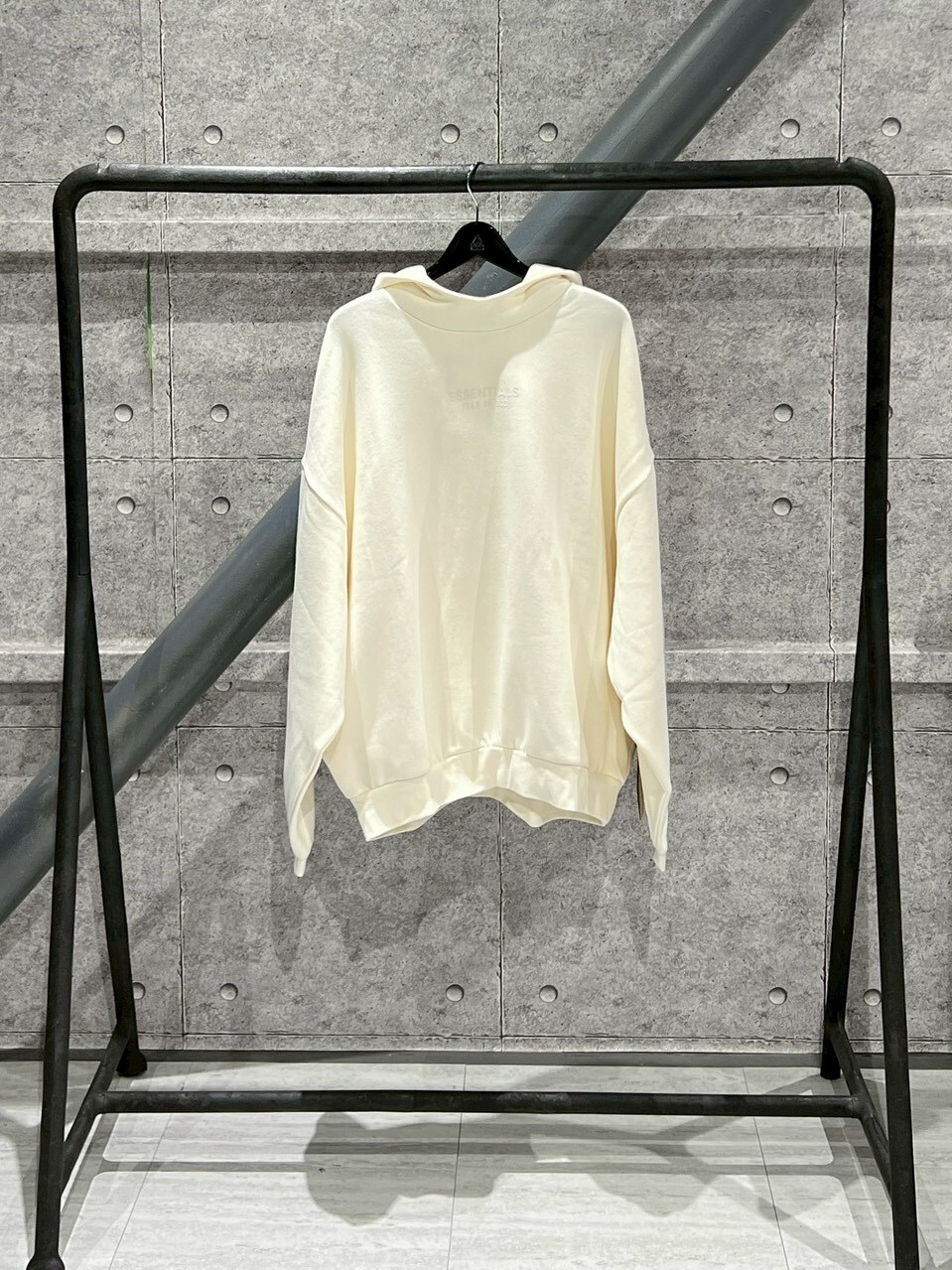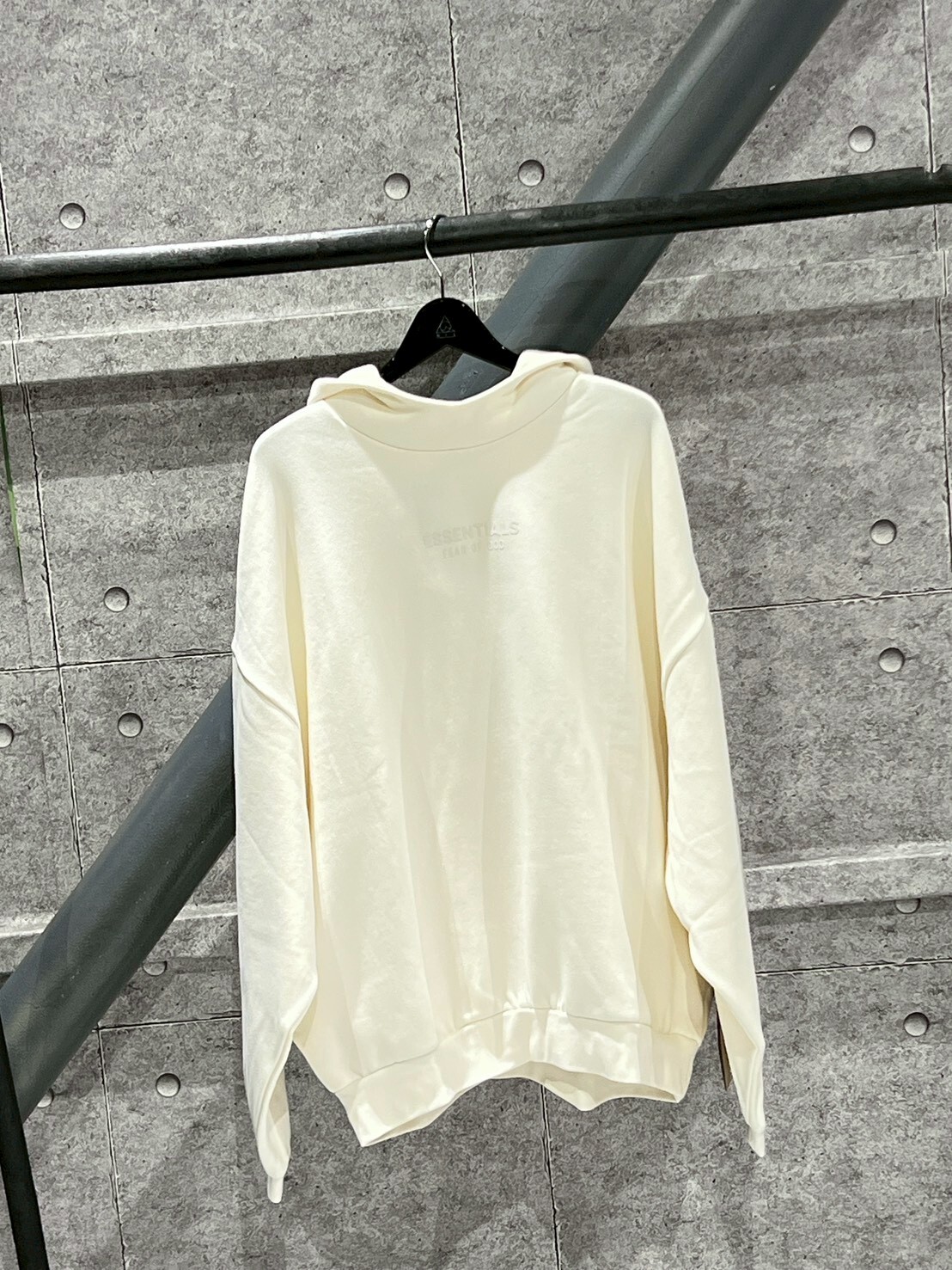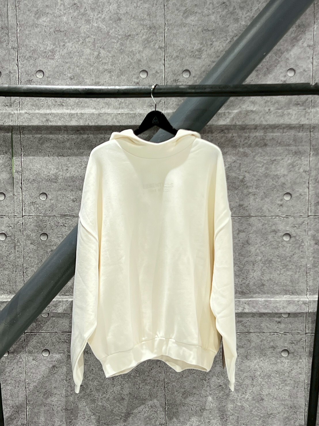 FOG ESSENTIALS 正面膠印Logo 連帽黑小標 米白帽T