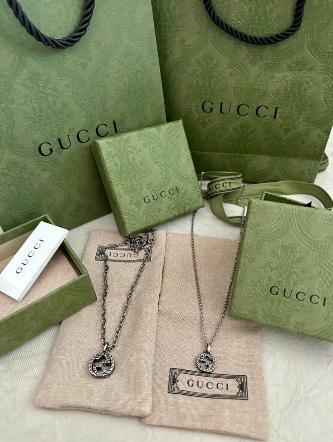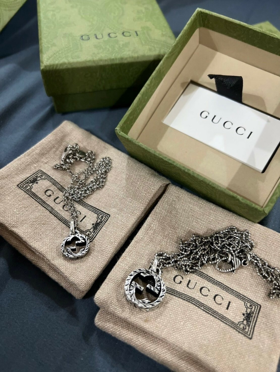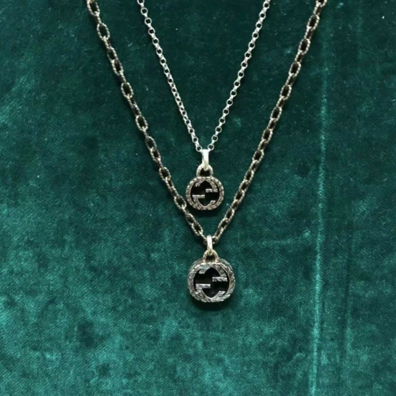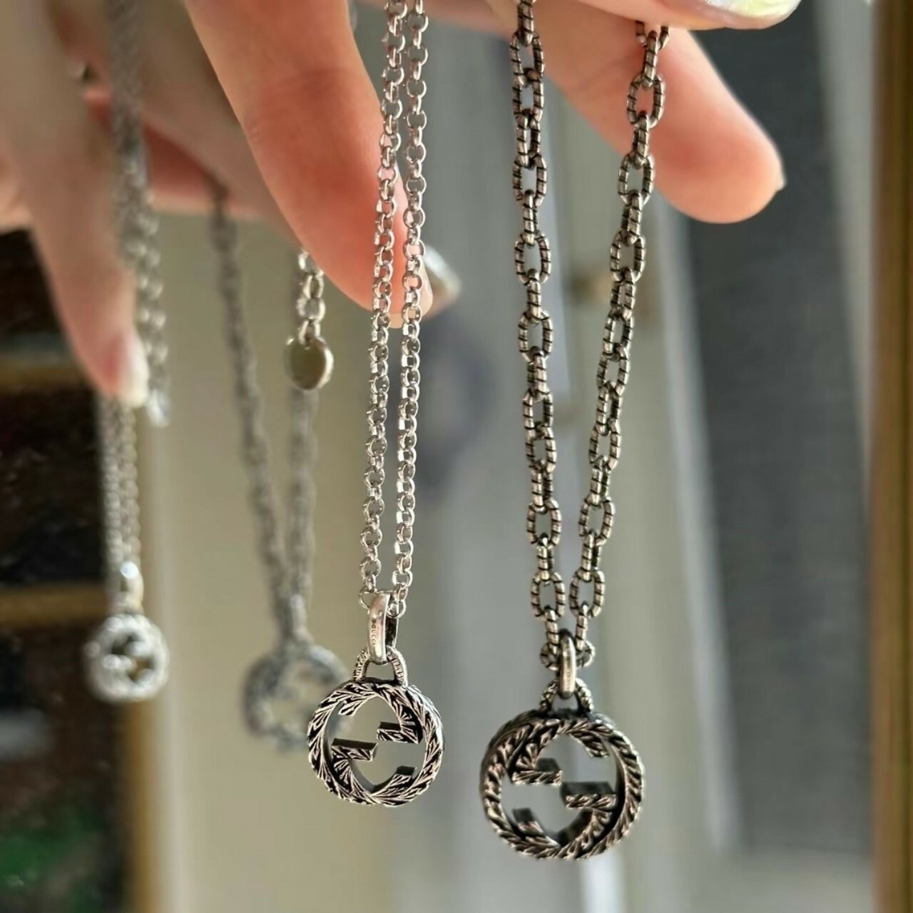 GUCCI 經典雙G 做舊復古銀項鍊組 大+小 一次下單兩條