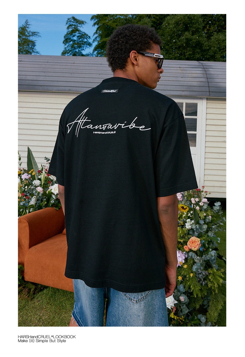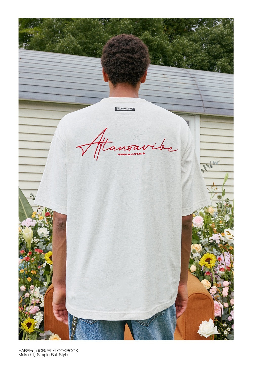 Harsh and Cruel 24SS 美式街頭刺繡手寫字體短袖 T HL242020207