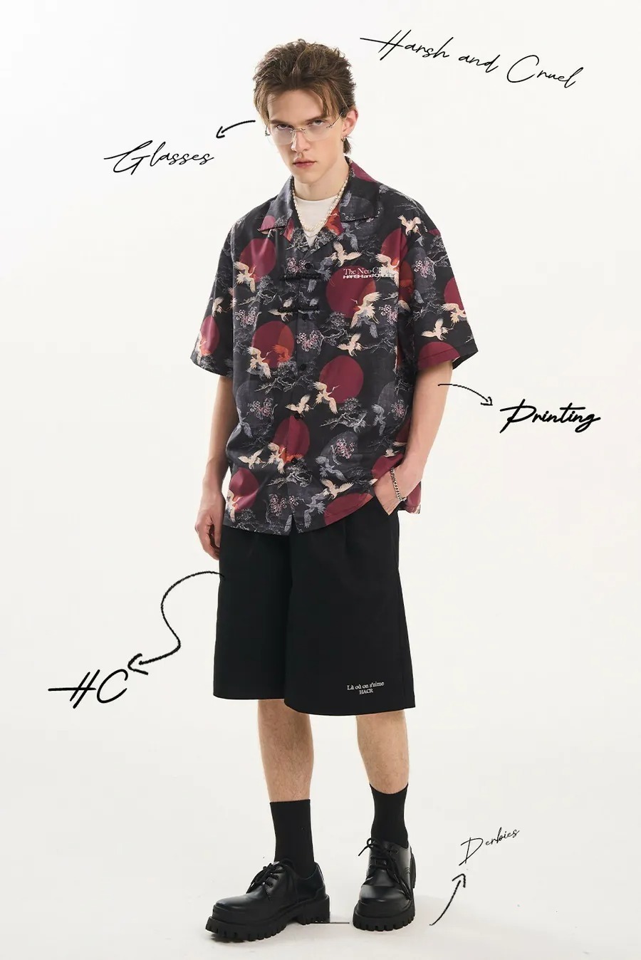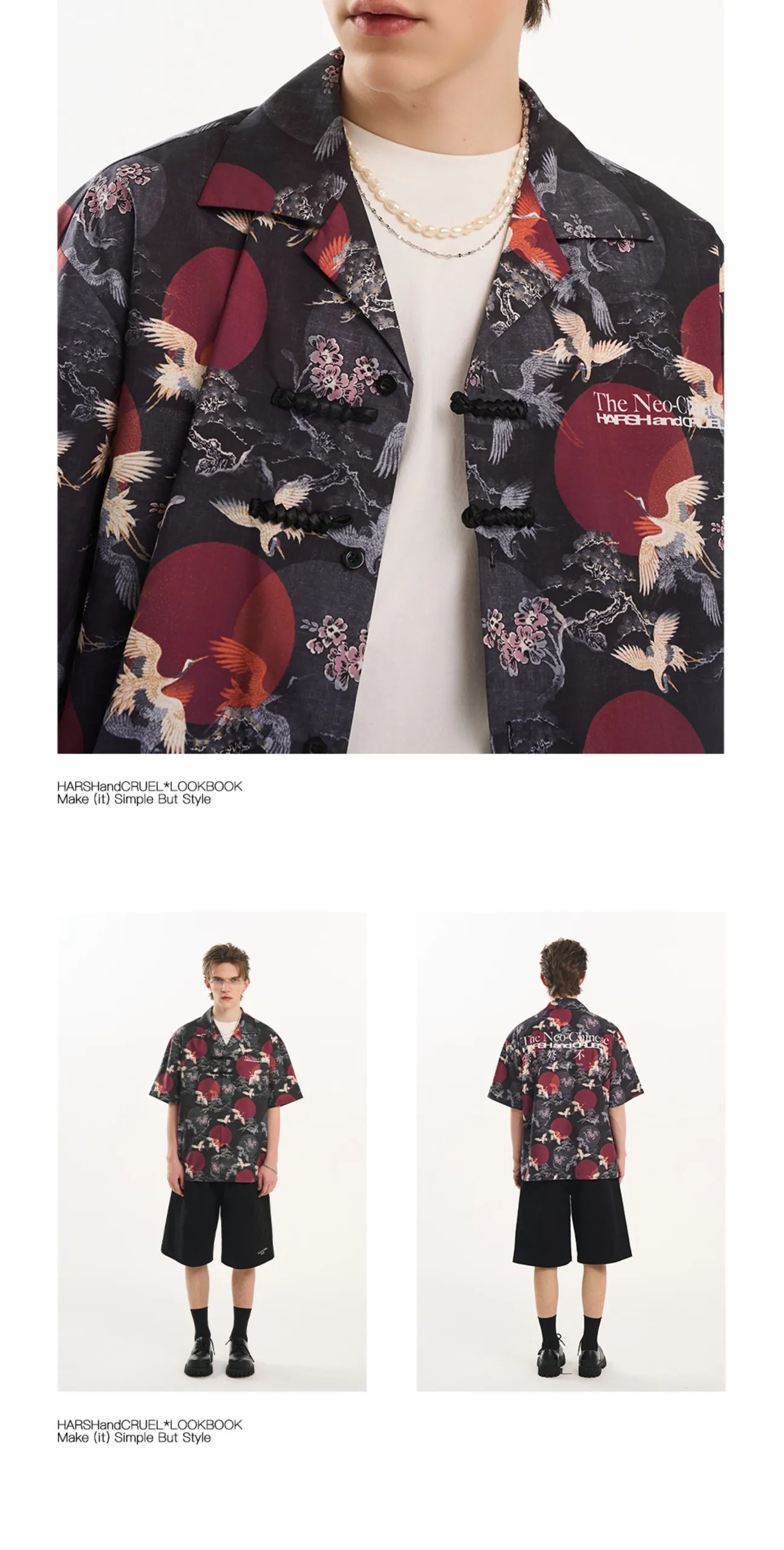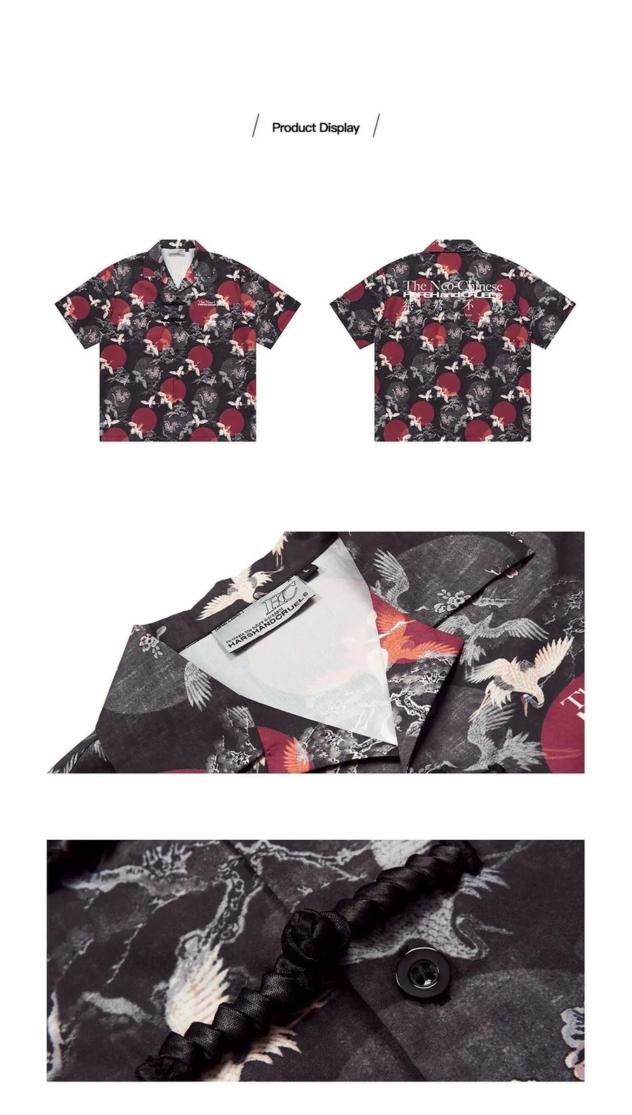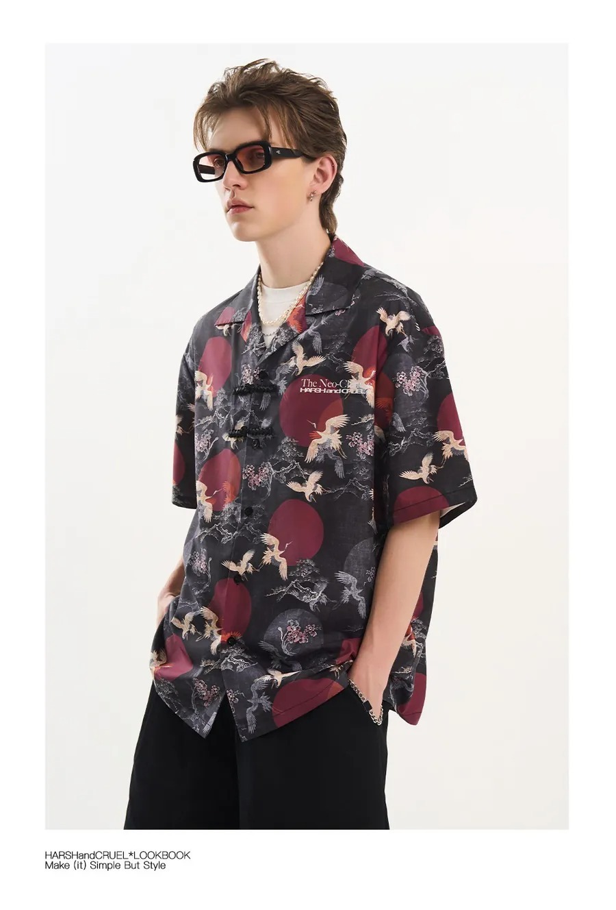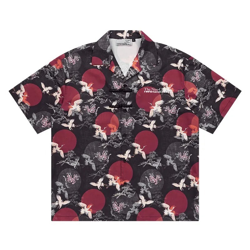 Harsh and Cruel 24SS 中國風滿版紅日仙鶴古巴領短袖襯衫 HL242070188