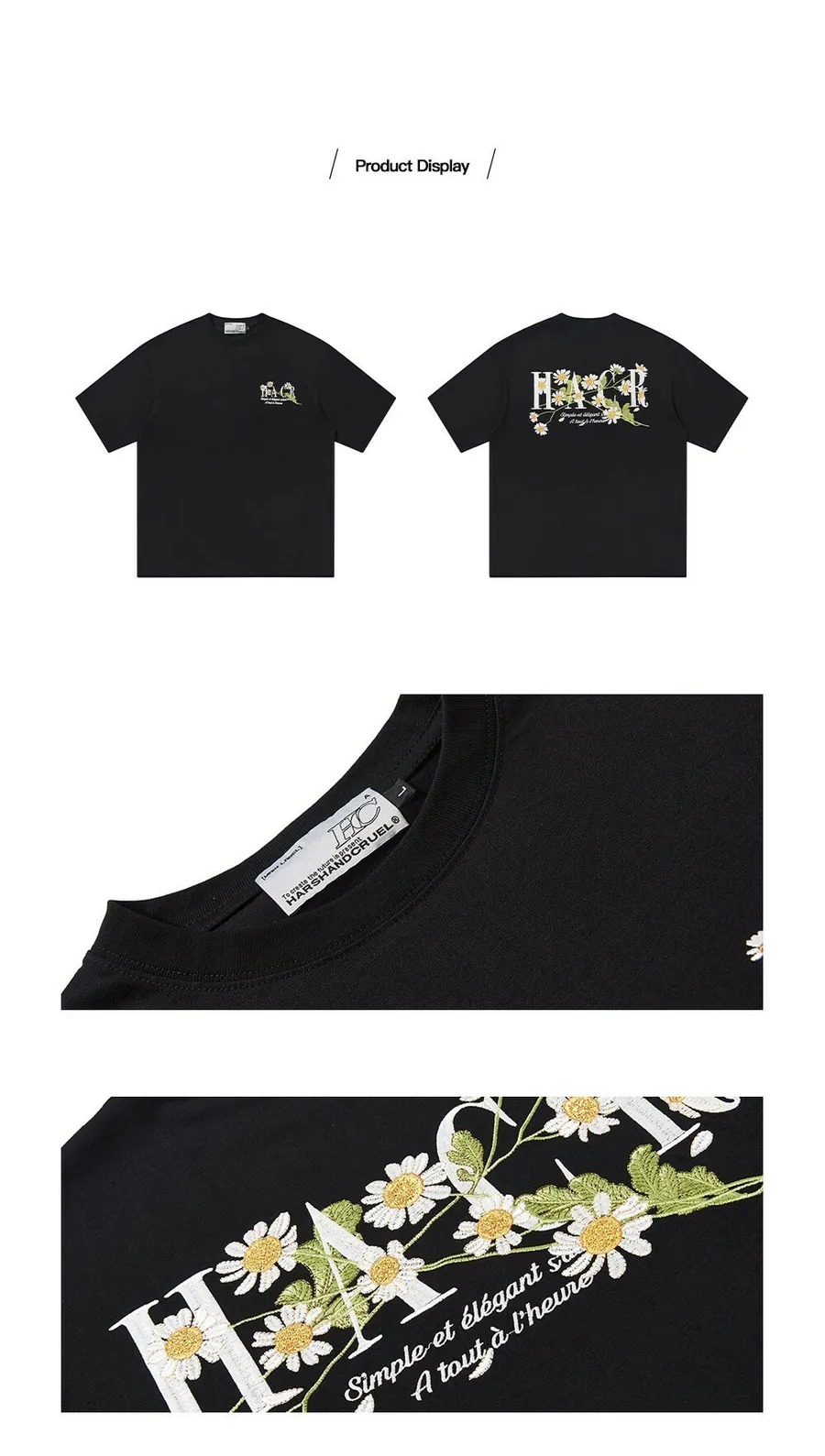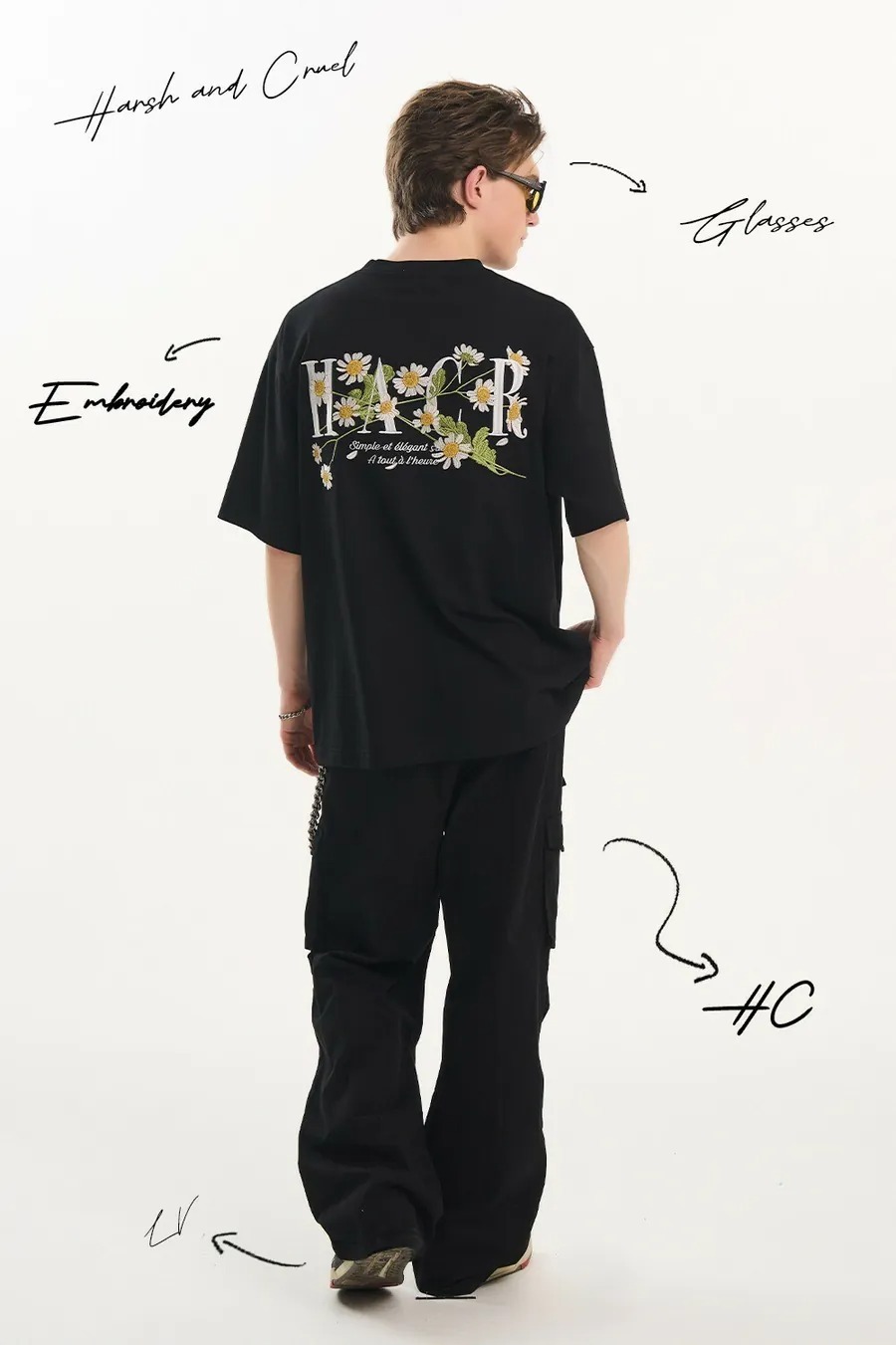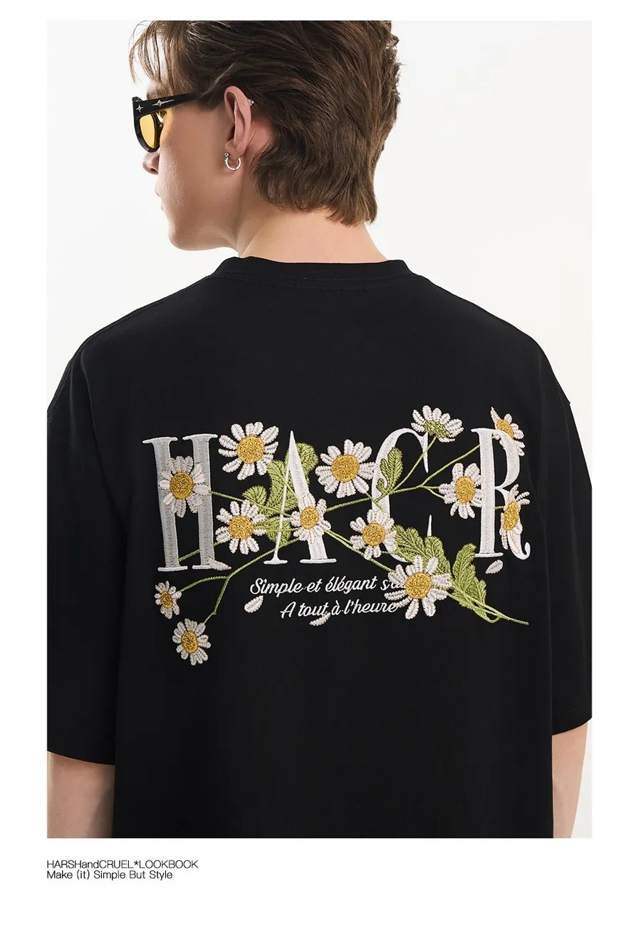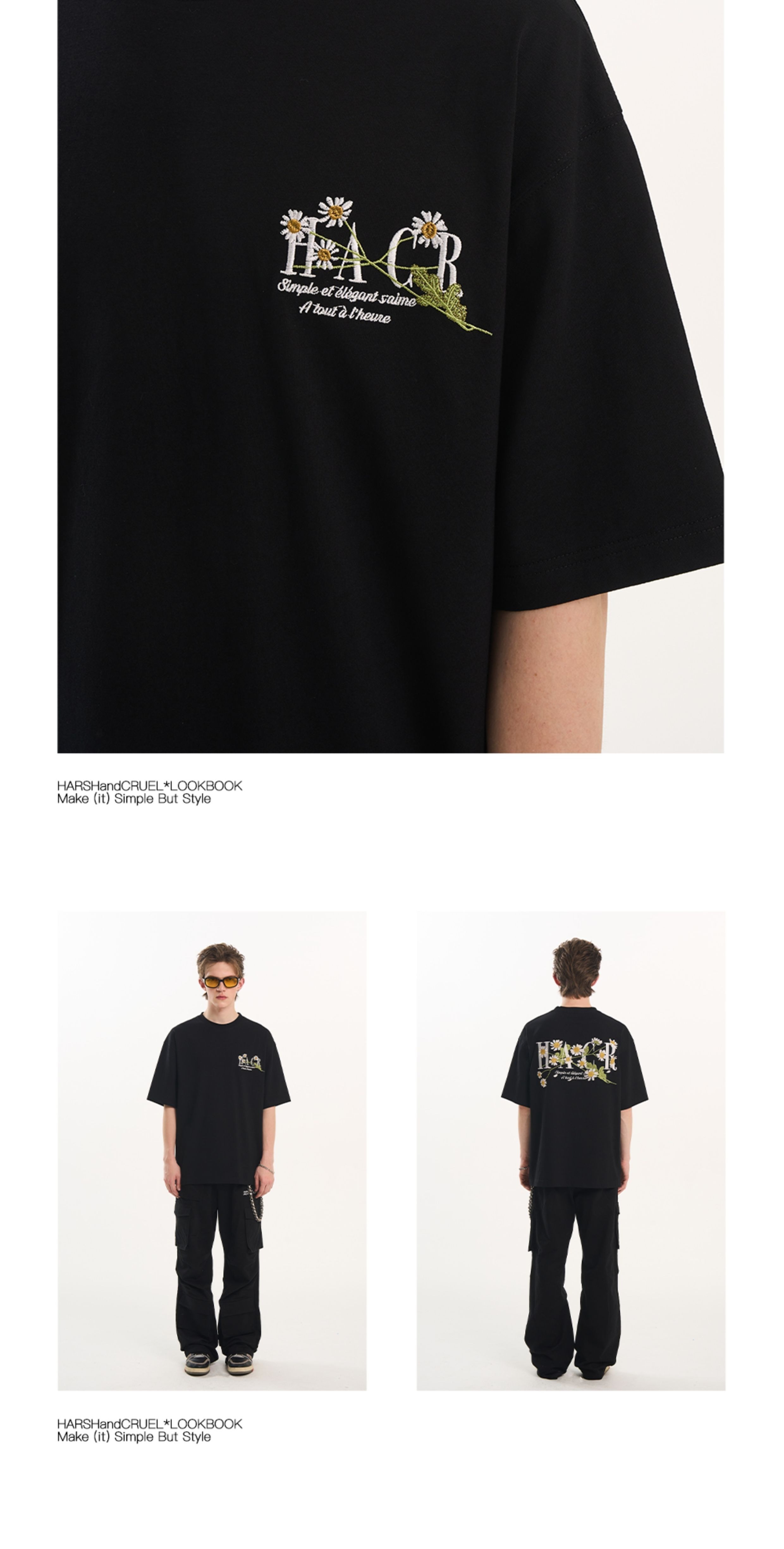 Harsh and Cruel 24SS 美式街頭刺繡花卉字體重磅短袖 HL242020167