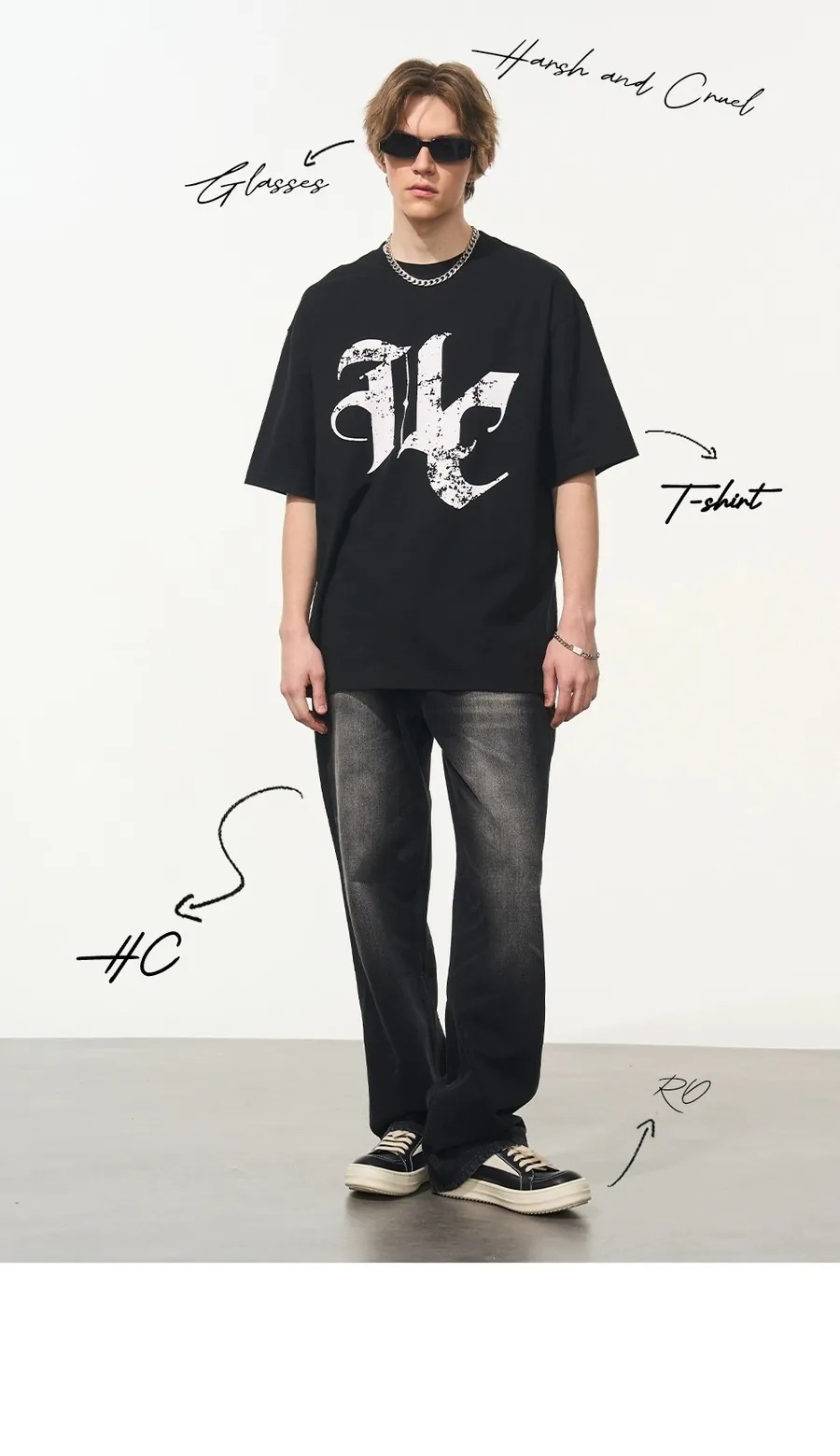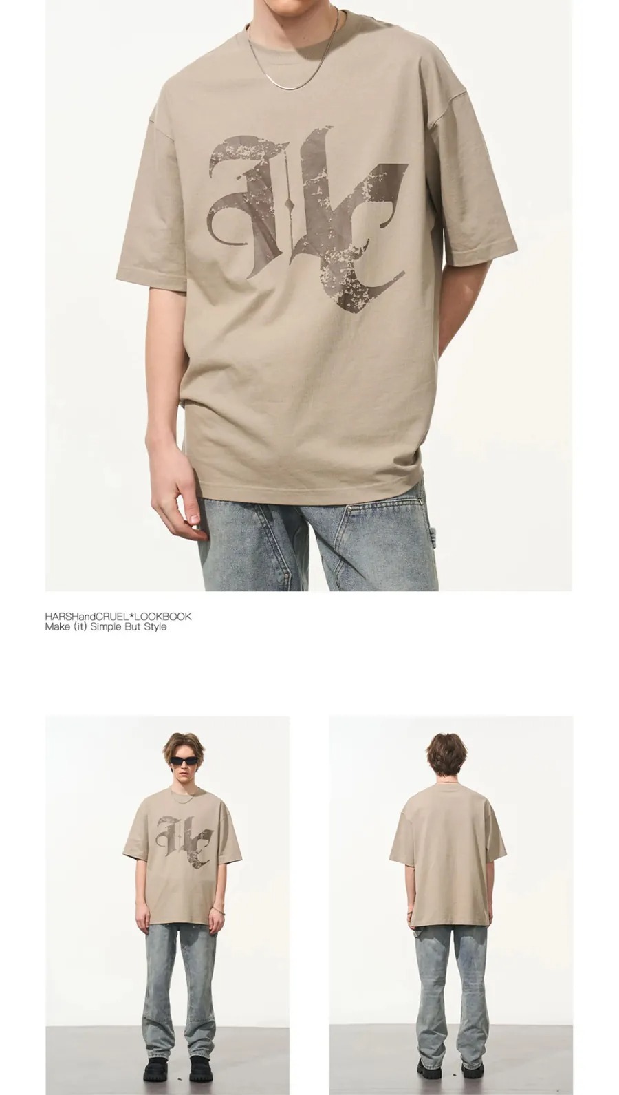 Harsh and Cruel 24SS 斑駁歌德字體logo短袖 HL240102002