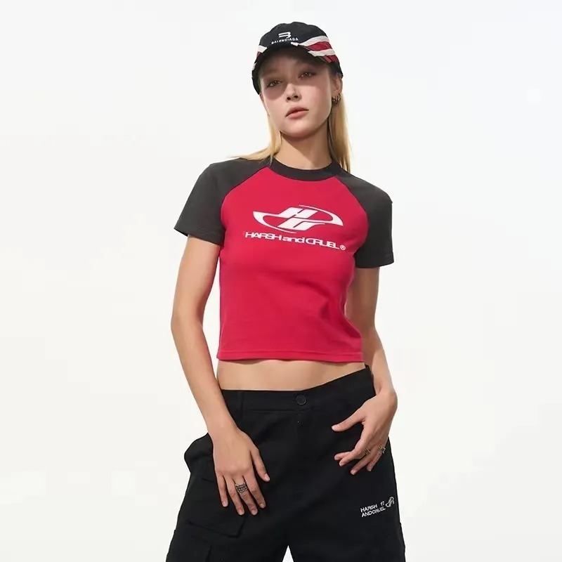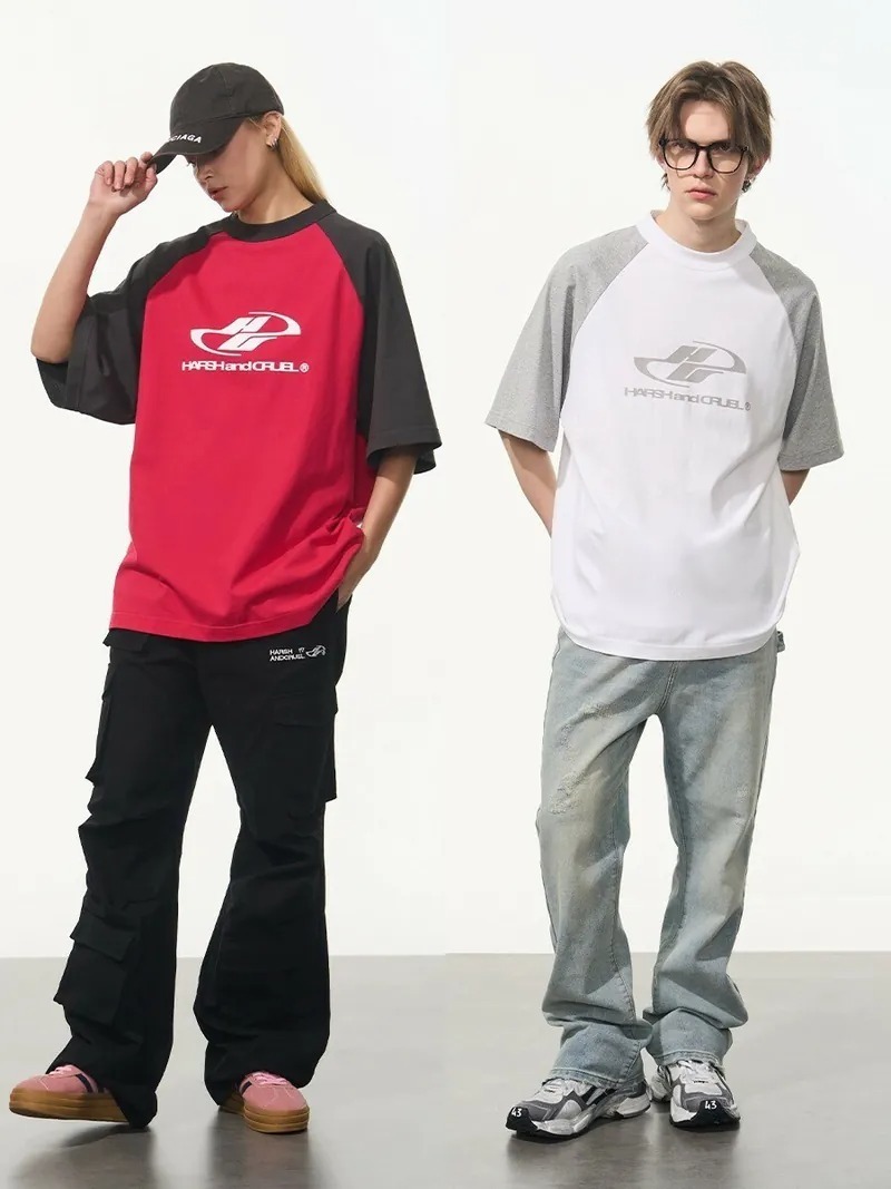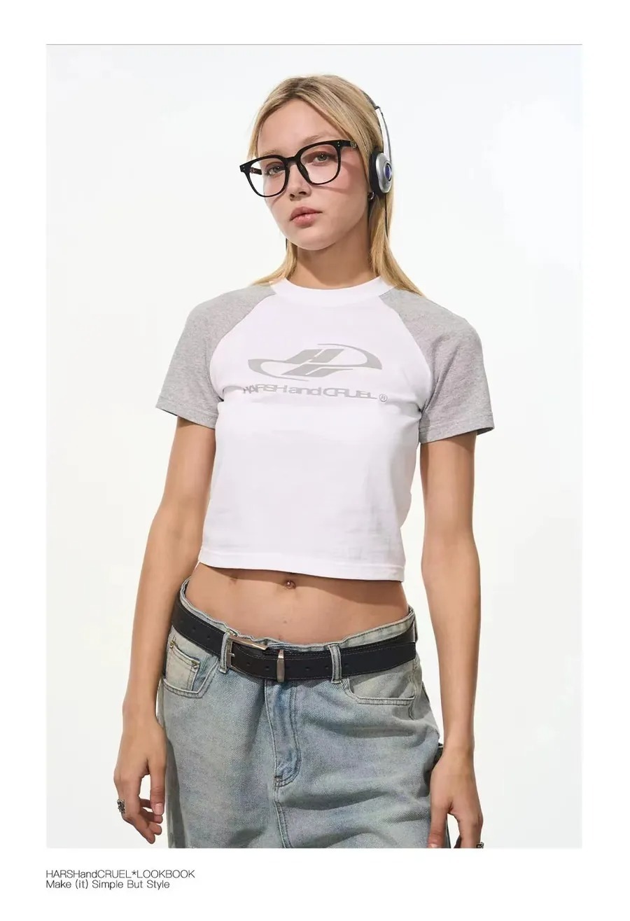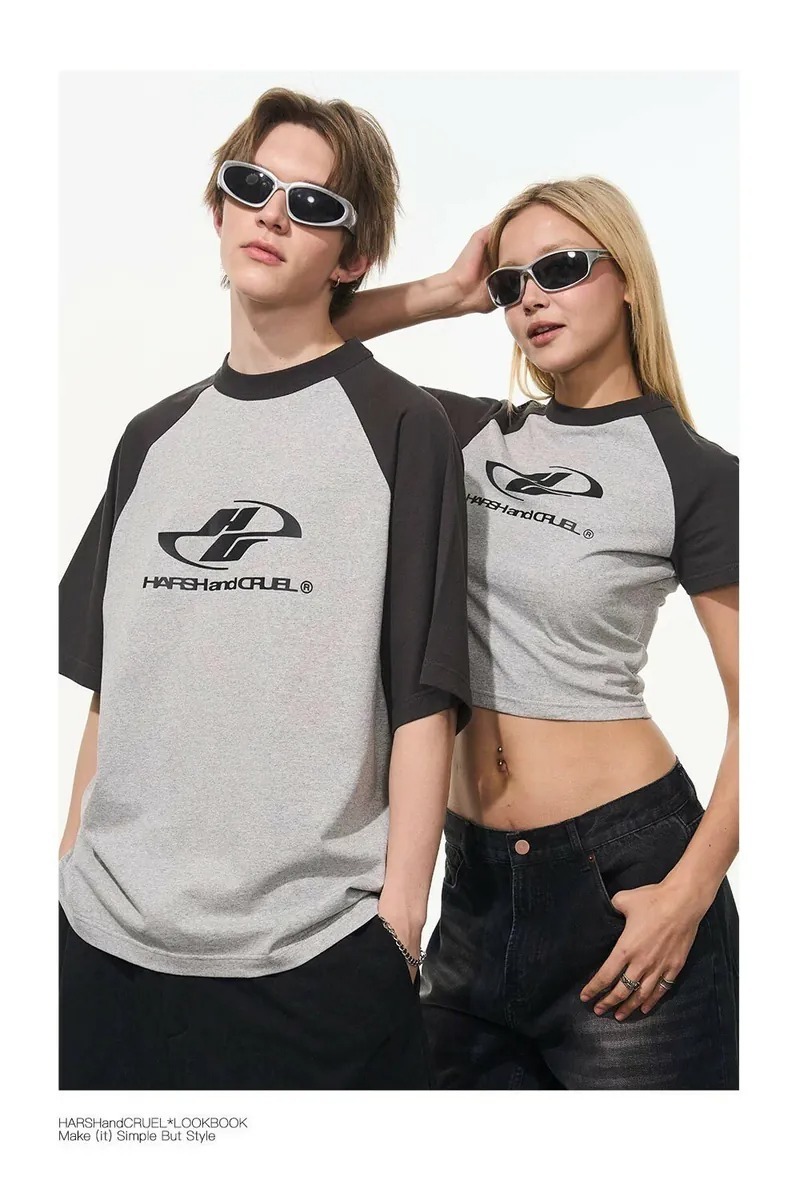 Harsh and Cruel 24SS 格雷系拼色Logo插肩短版短袖 男女款