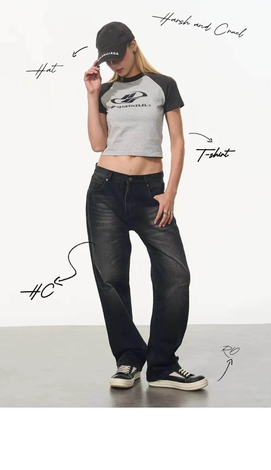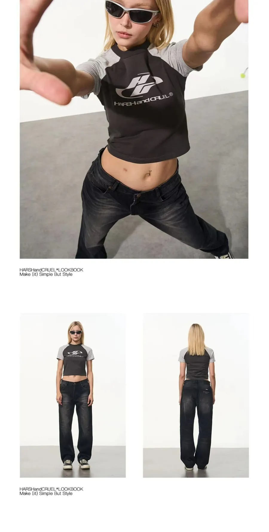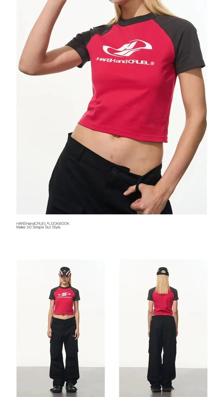 Harsh and Cruel 24SS 格雷系拼色Logo插肩短版短袖 男女款
