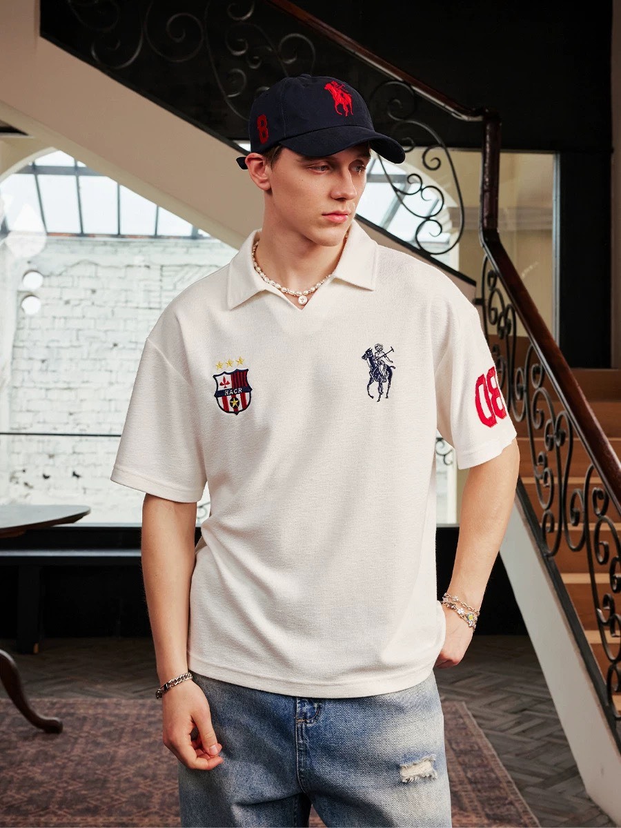 Harsh and Cruel 學院風刺繡 復古POLO 短袖 T恤 HL251170082