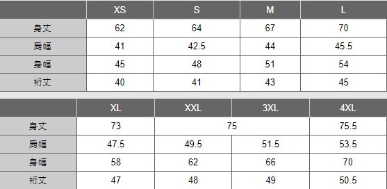肩寬 42.5 / 44 / 45.5 / 47.5 / 49.5
