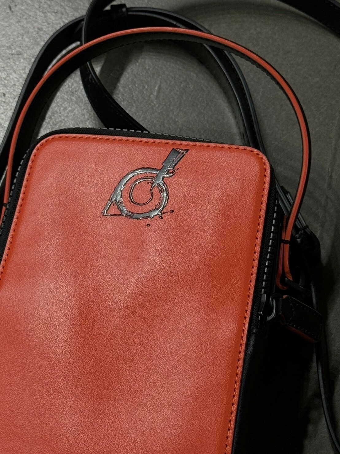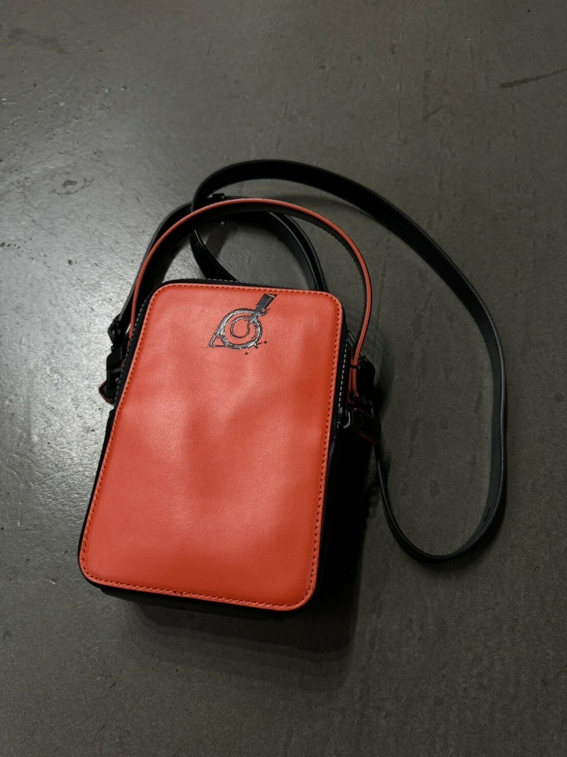 這款迷你斜背袋設計大膽、充滿趣味且易於攜帶,是伴隨都會人生活的多功能單品。這款斜背袋的剪裁小巧實用,設有寬敞空間以存放手機、錢包、鑰匙和其他日常必備物品,並配備 2 個拉鏈隔層和 1 個前置開放式口袋。正面採用萬寶龍大師(大班)系列的黑色設計,飾有火影忍者的數碼印花圖案,而背面則採用鮮明矚目的火影忍者橙色。黑色拉鏈環和掛帶也設有橙色切邊。