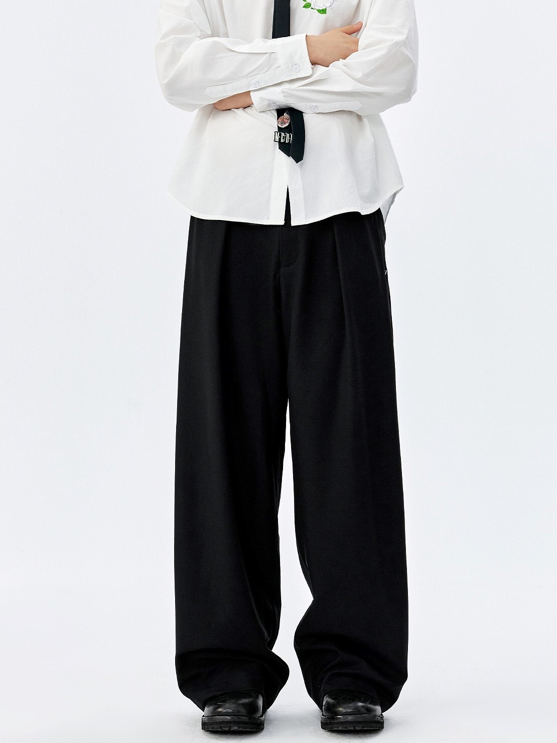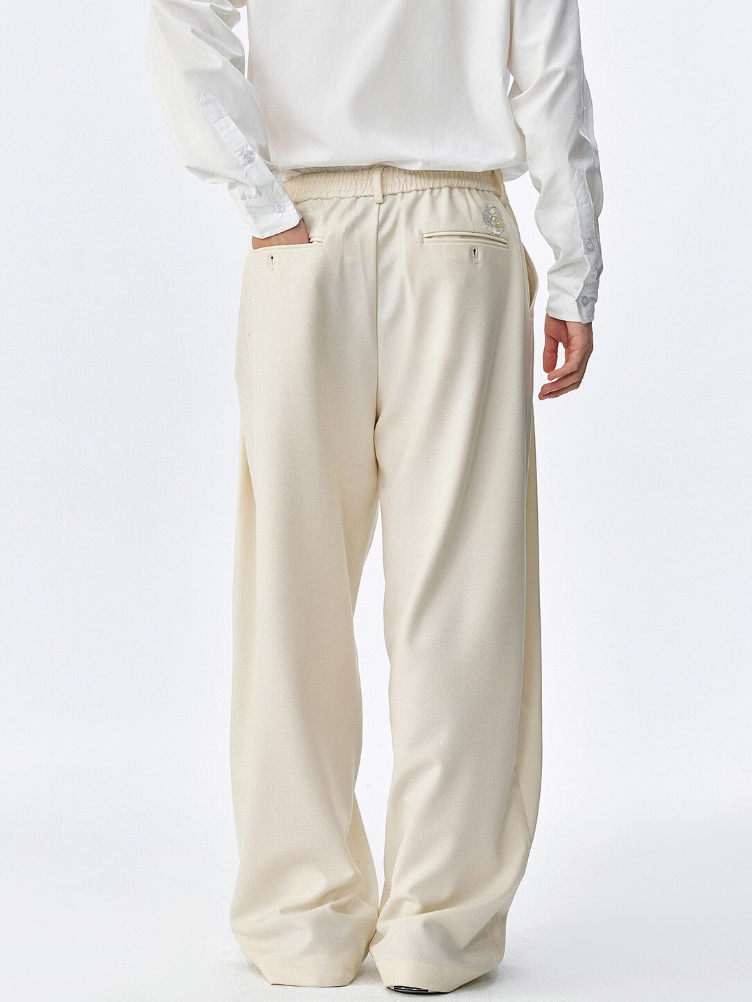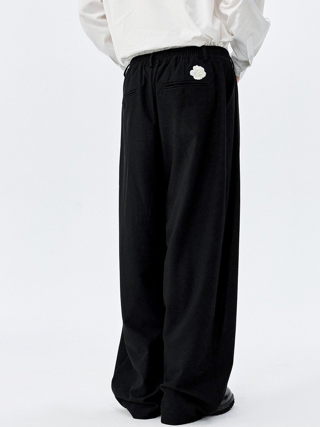 MEDM 後刺繡花朵 寬鬆打褶 西裝長褲