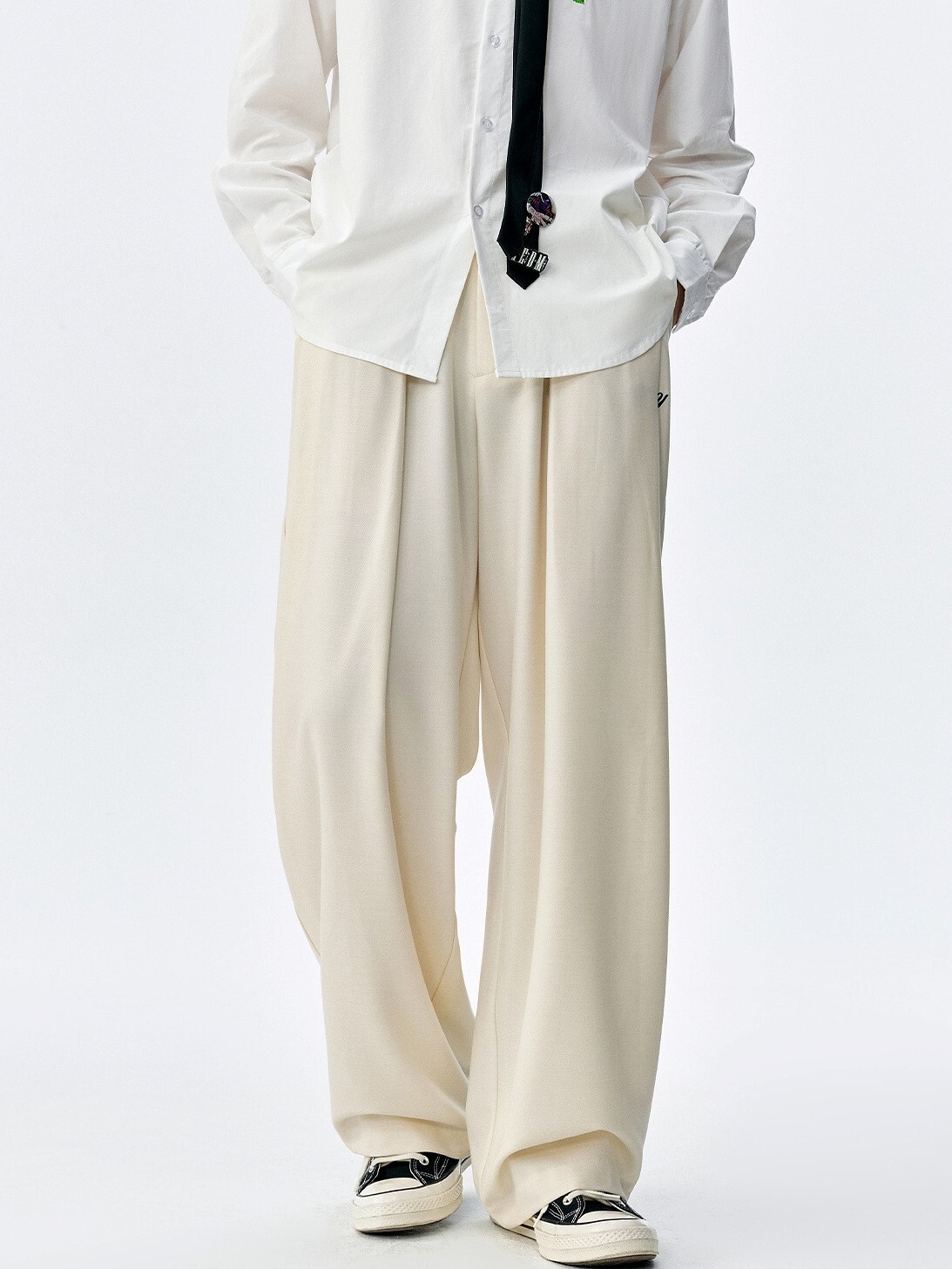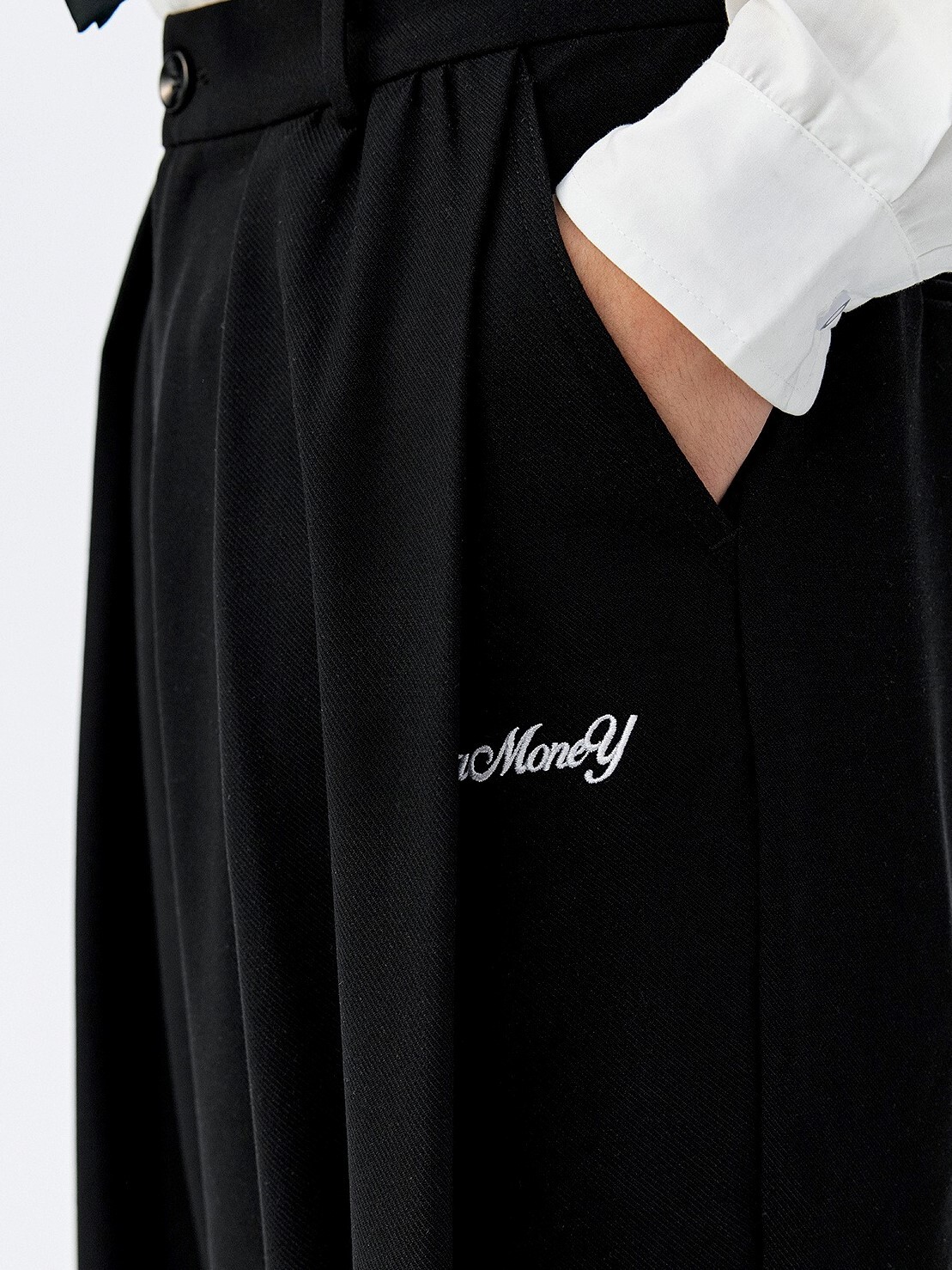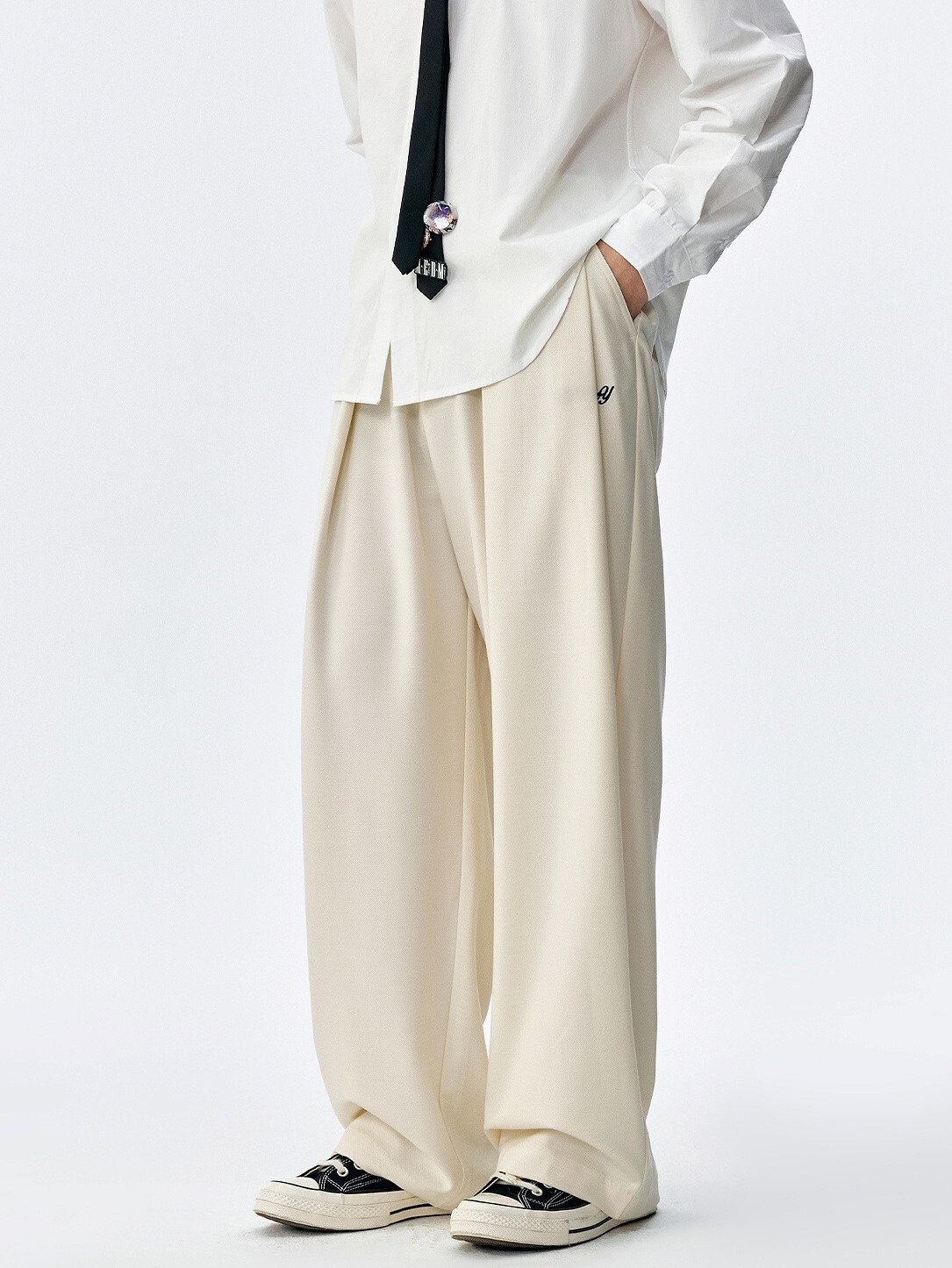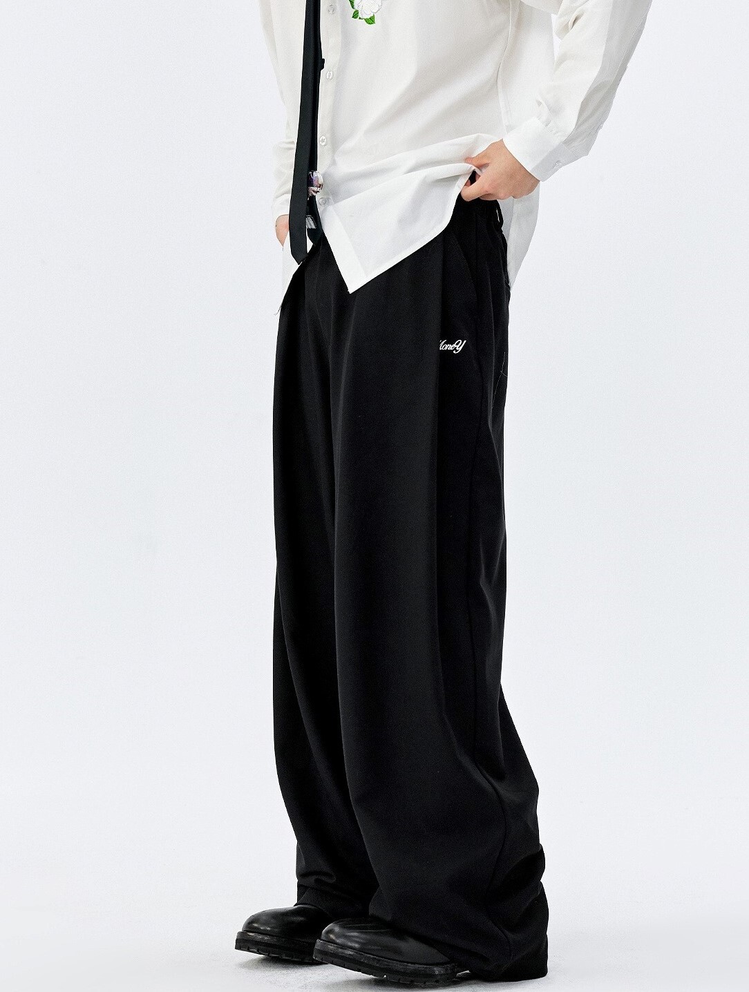 MEDM 後刺繡花朵 寬鬆打褶 西裝長褲