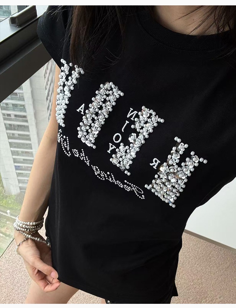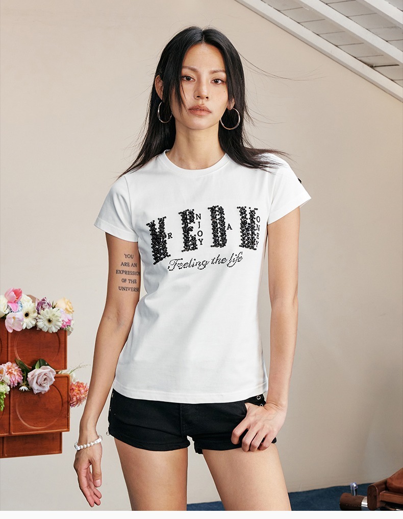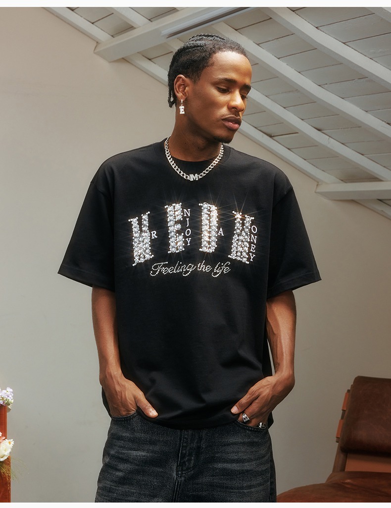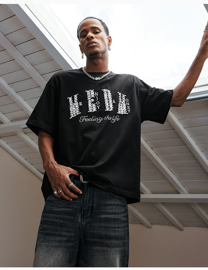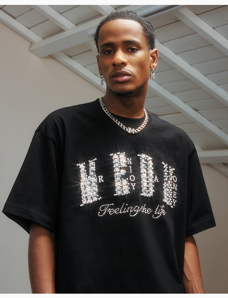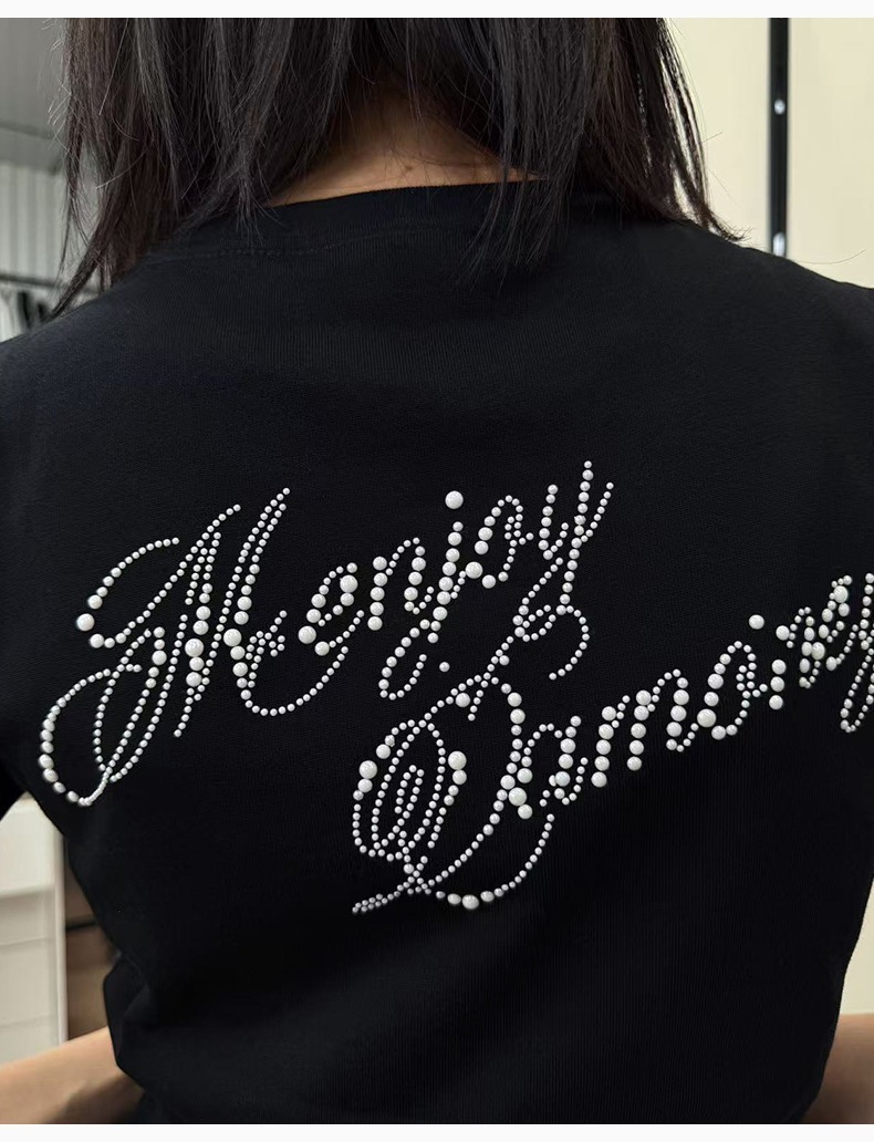 MEDM 小香風 立體亮片珍珠 前後Logo 情侶衣 短袖 T