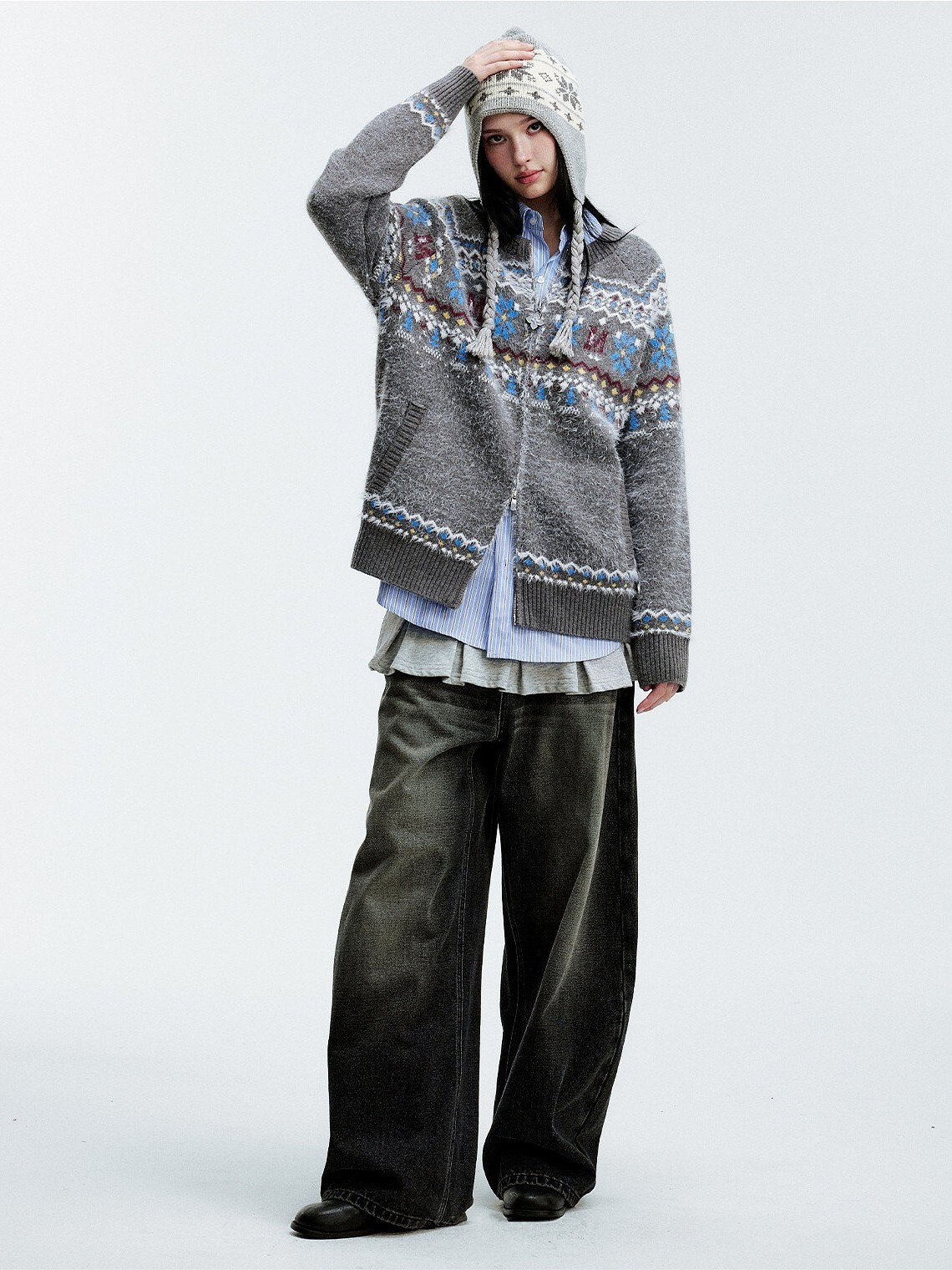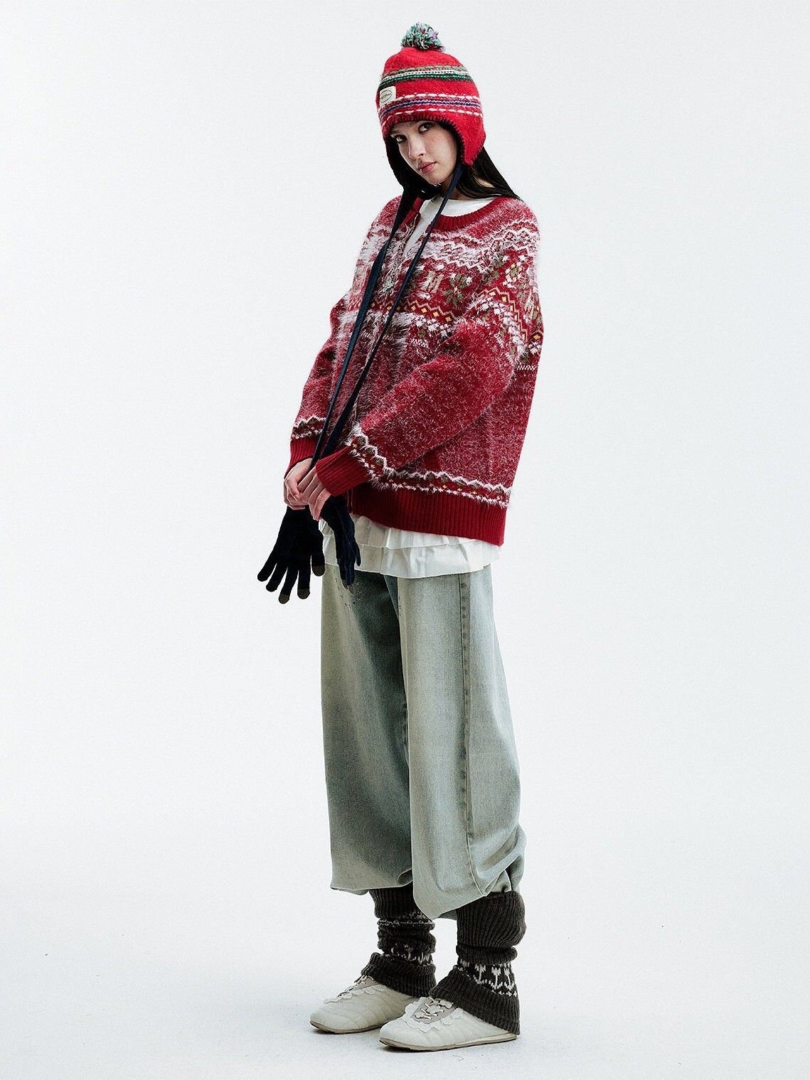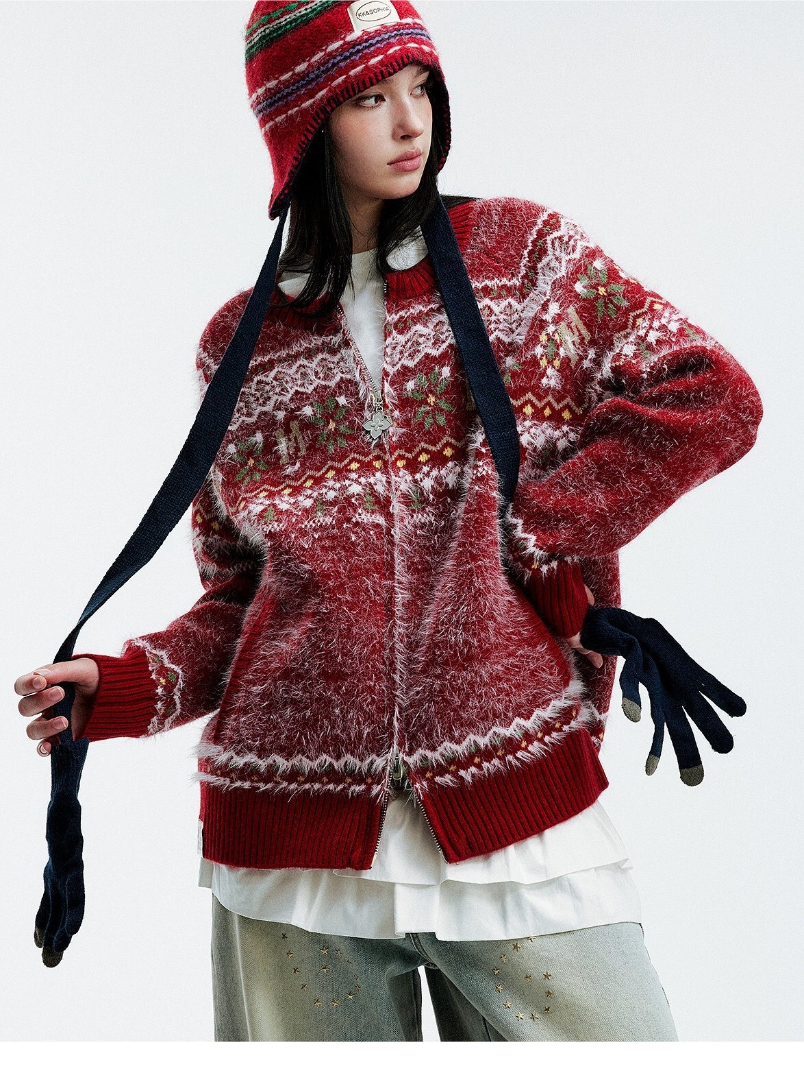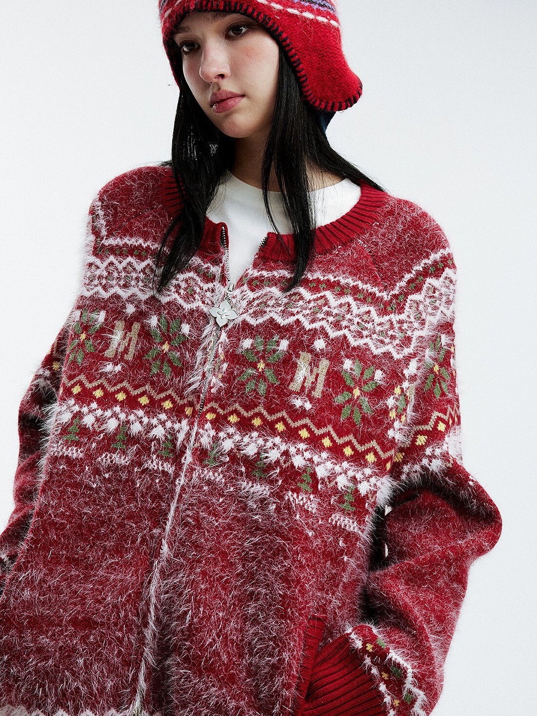 MEDM 聖誕節緹花Logo 休閒保暖 拉鍊針織毛衣