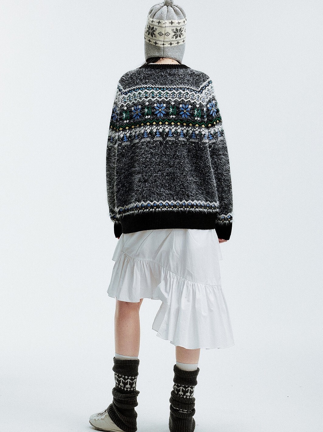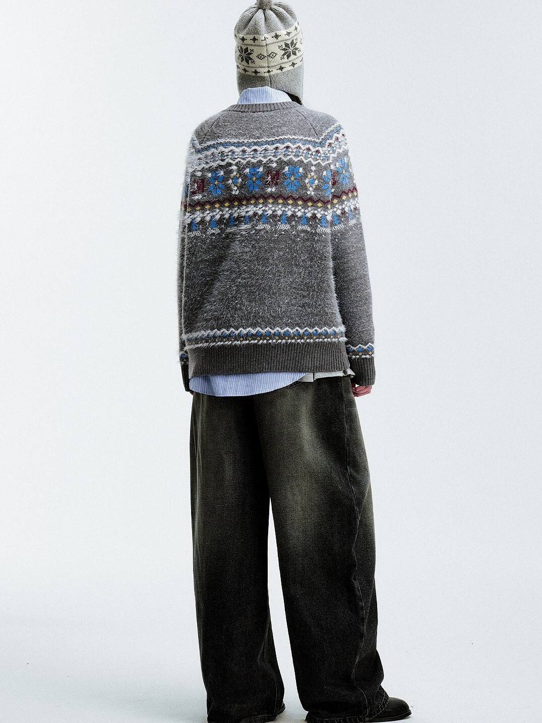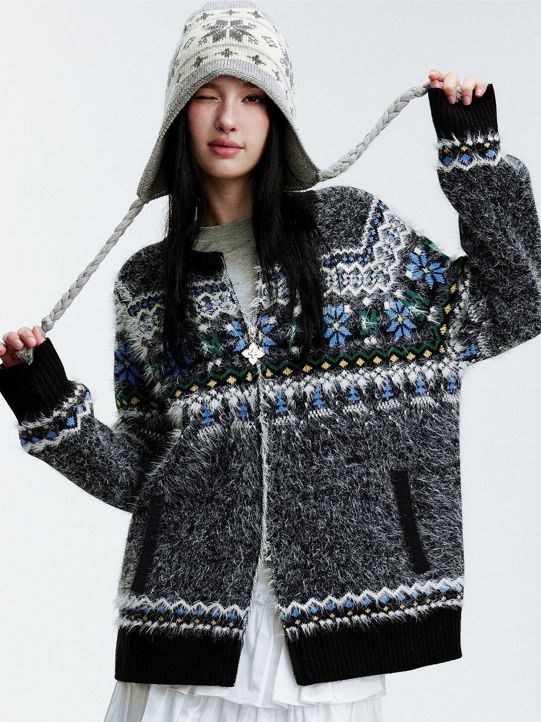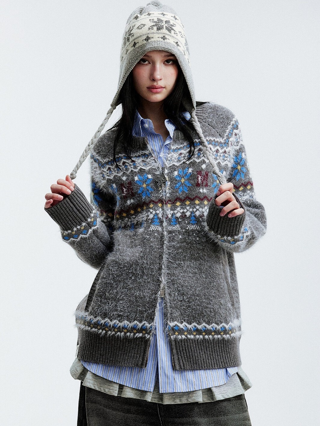 MEDM 聖誕節緹花Logo 休閒保暖 拉鍊針織毛衣
